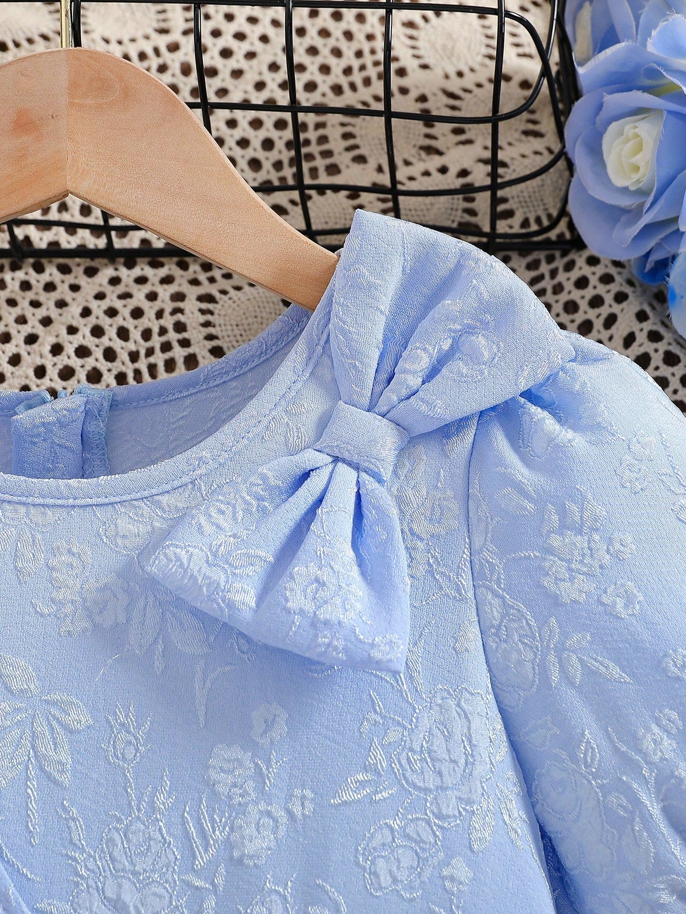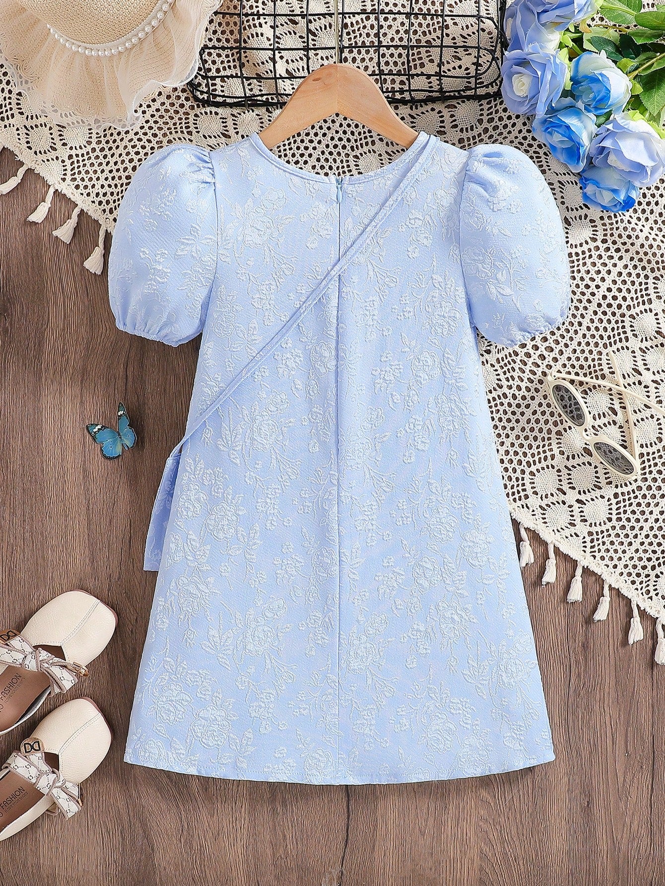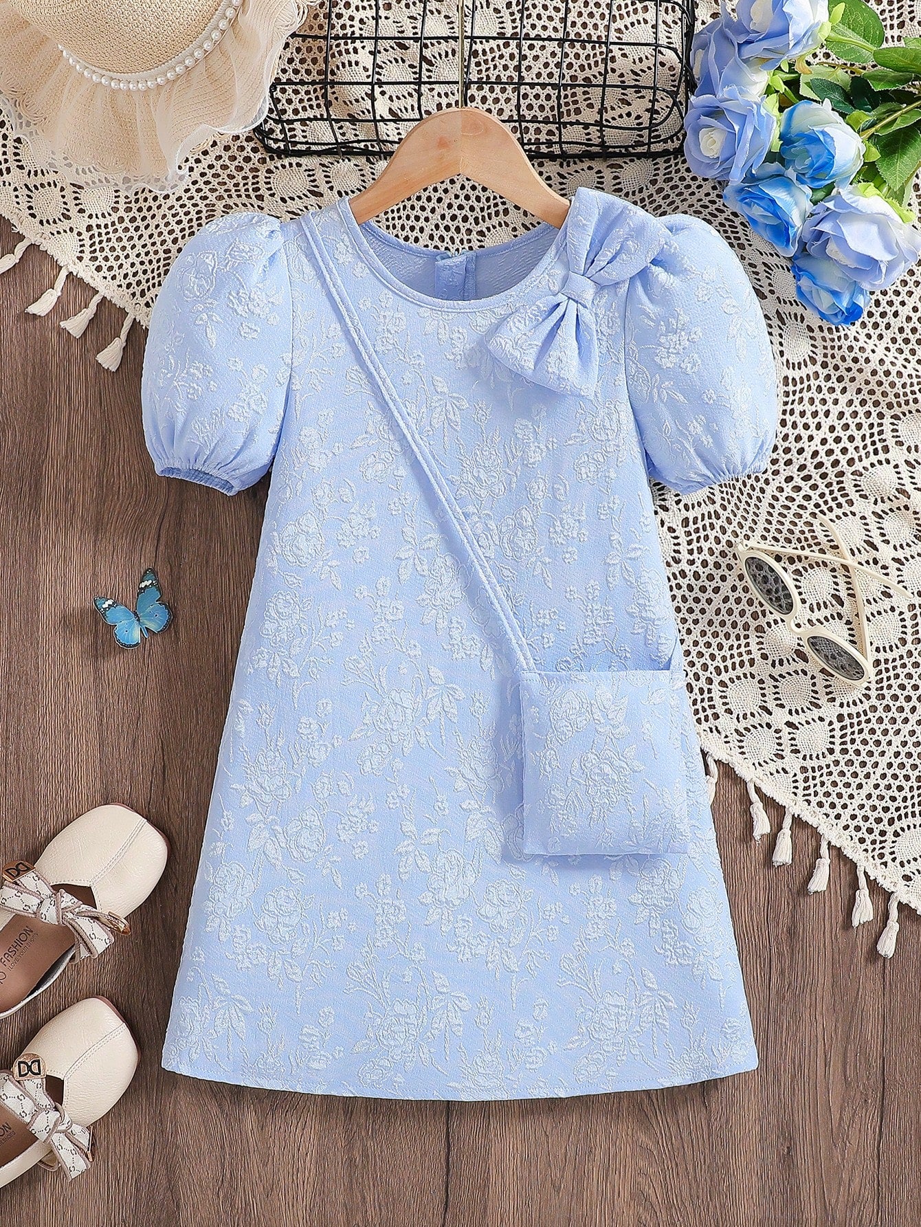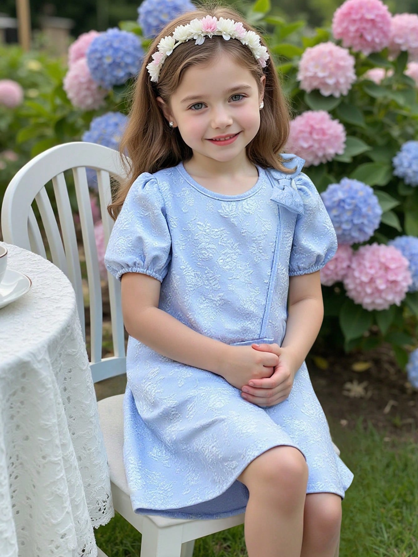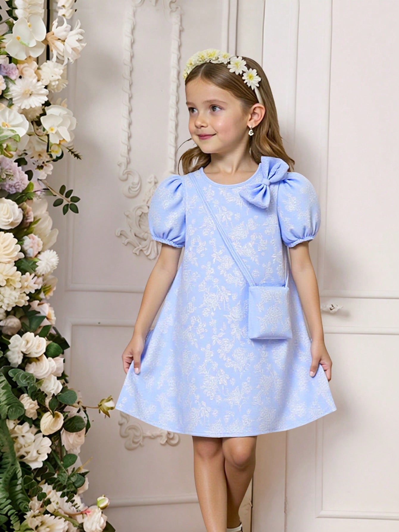 Young Girl' Elegant Solid Color 3D Bow Floral A-Line Dress