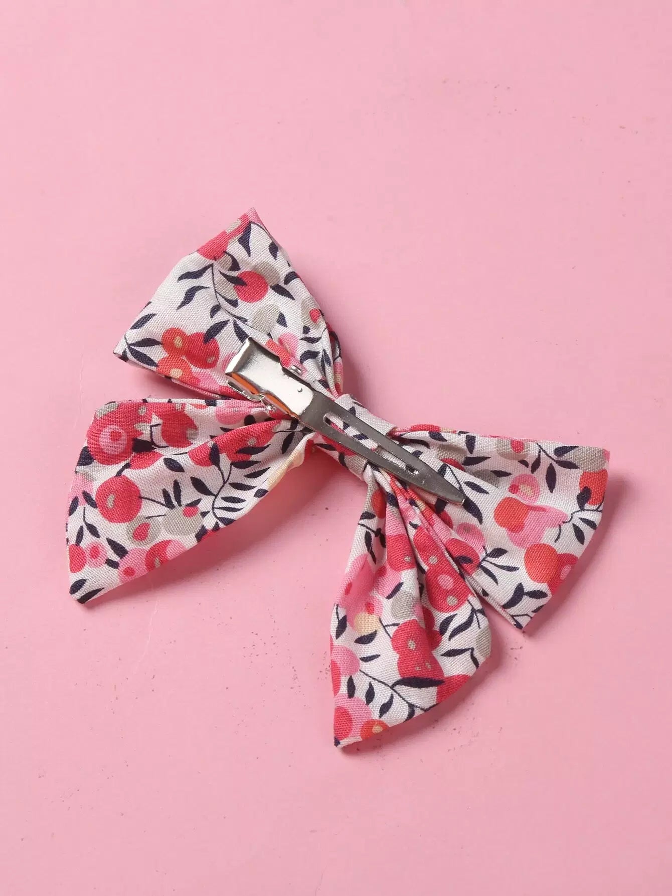 Kids - 3pcs Toddler Girls Flower Print Bow Decor Hair Clip