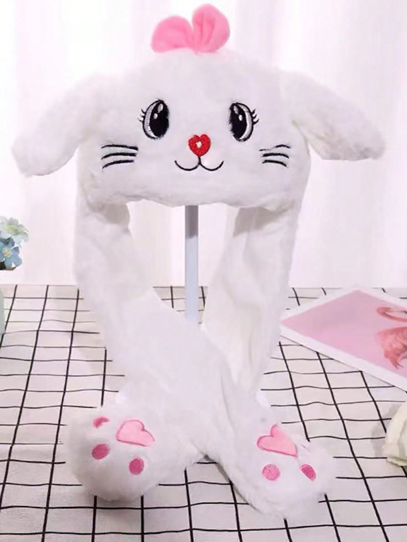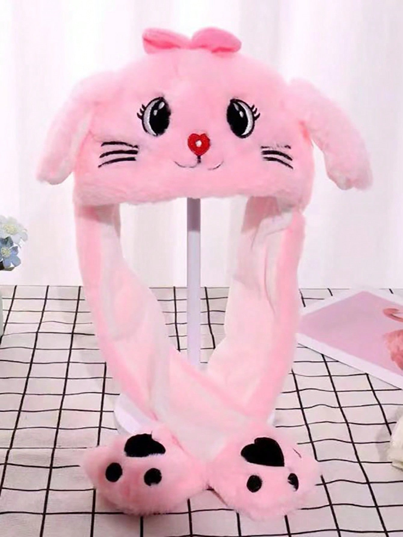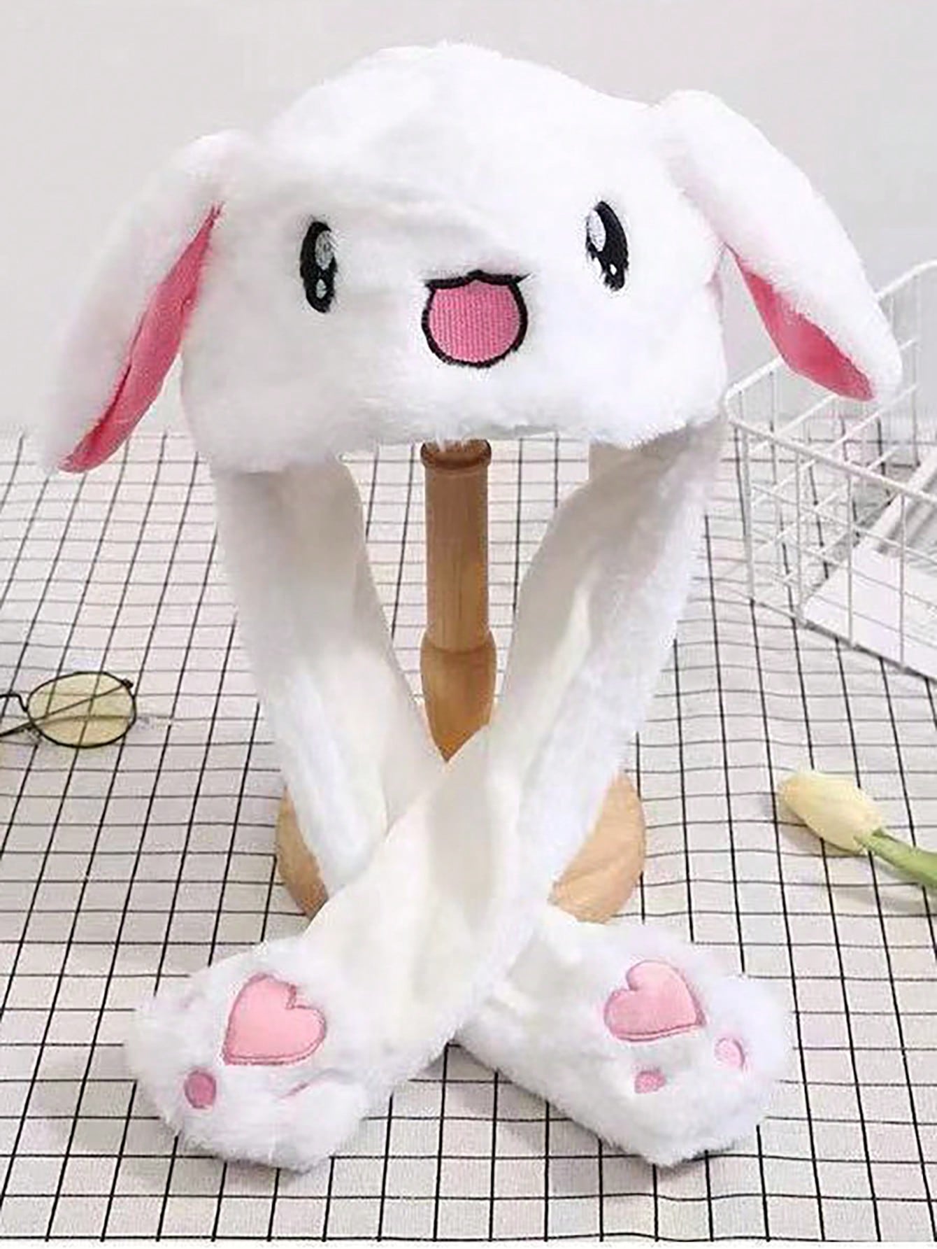 Cute Cartoon Ear Embroidery Airbag Fluffy Hat With Moving Ears Autumn/Winter