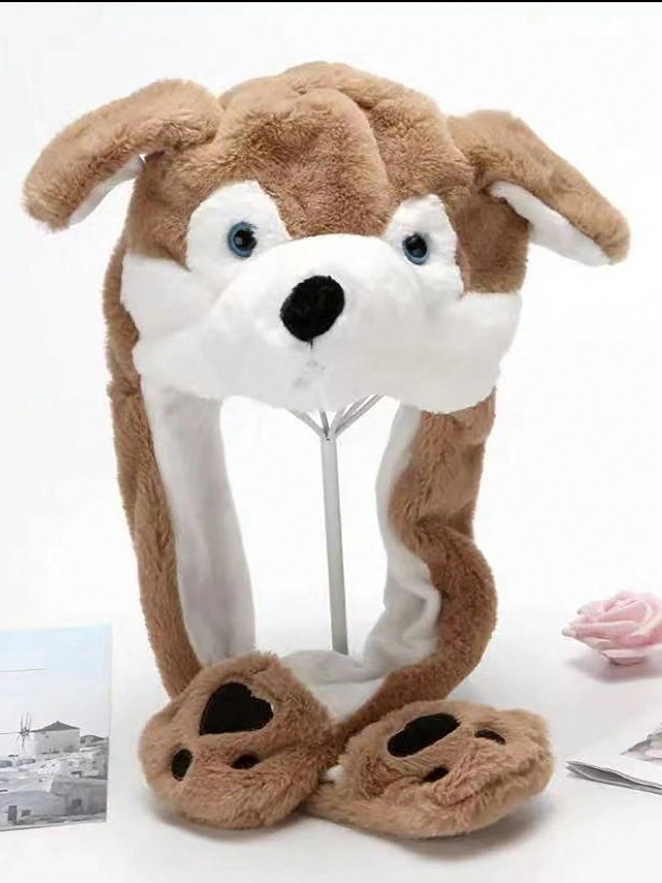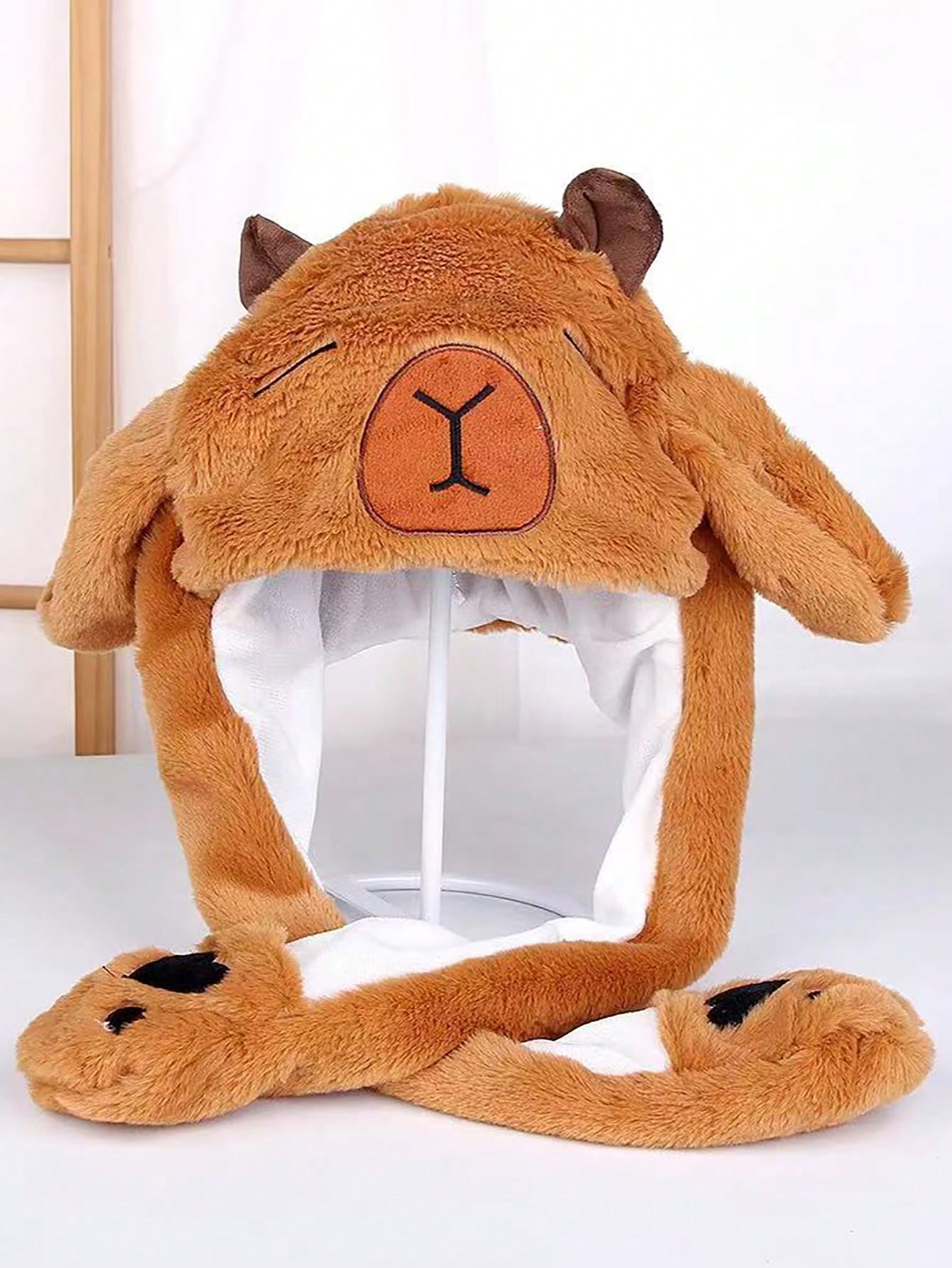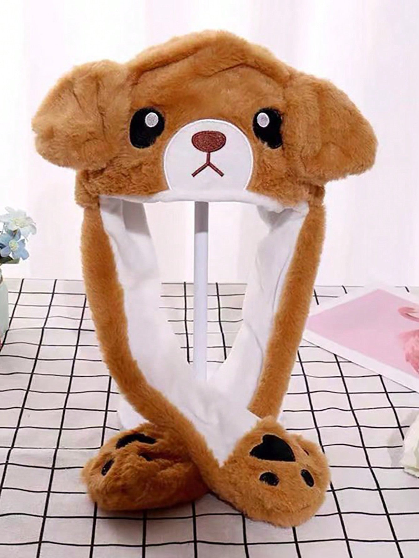 Cute Cartoon Ear Embroidery Airbag Fluffy Hat With Moving Ears Autumn/Winter