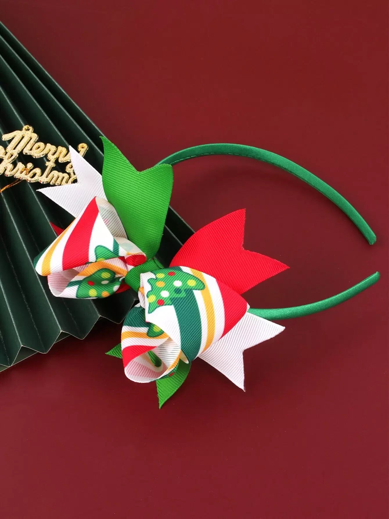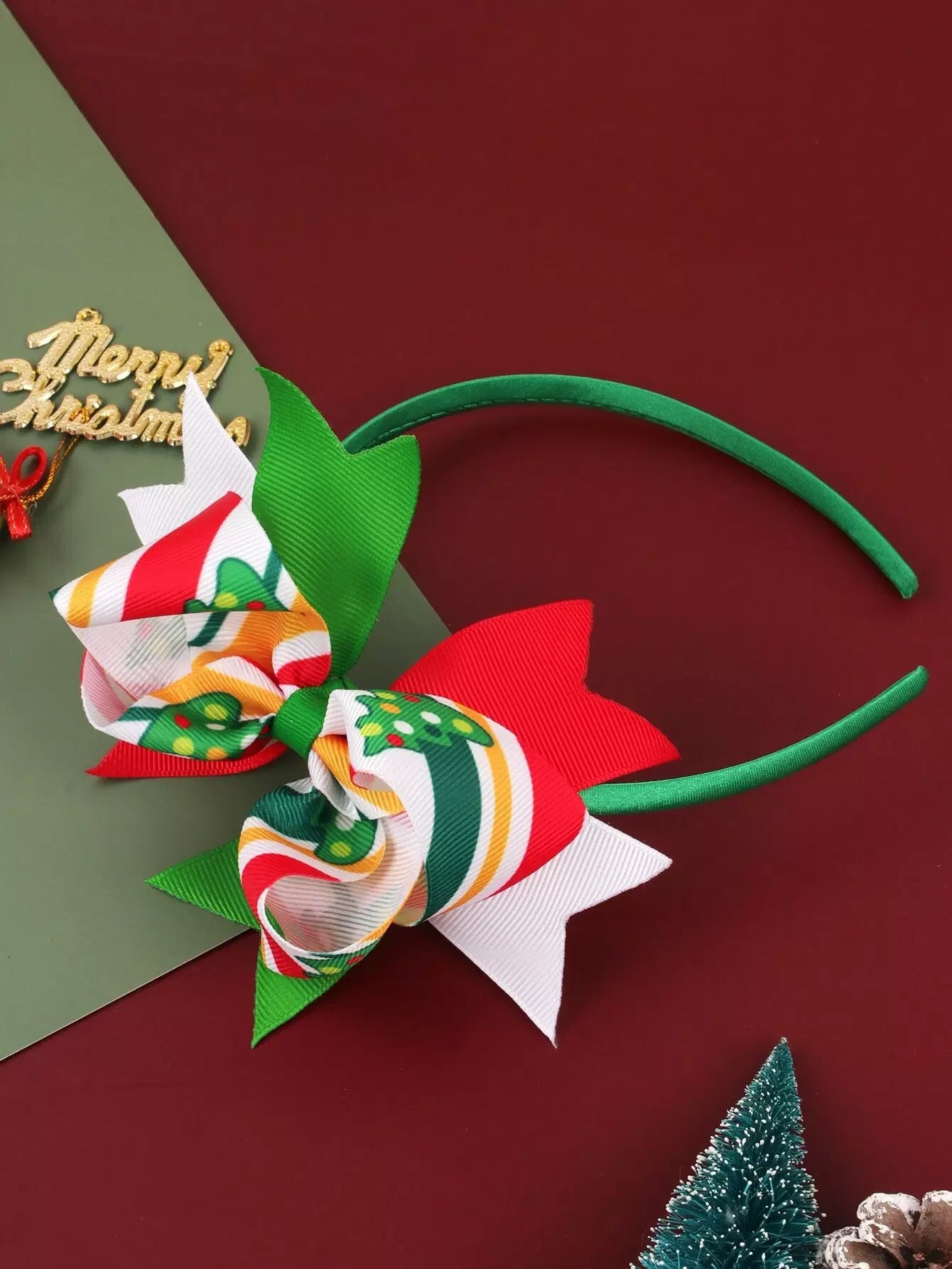 Girls Christmas Pattern Bow Decor Headband
