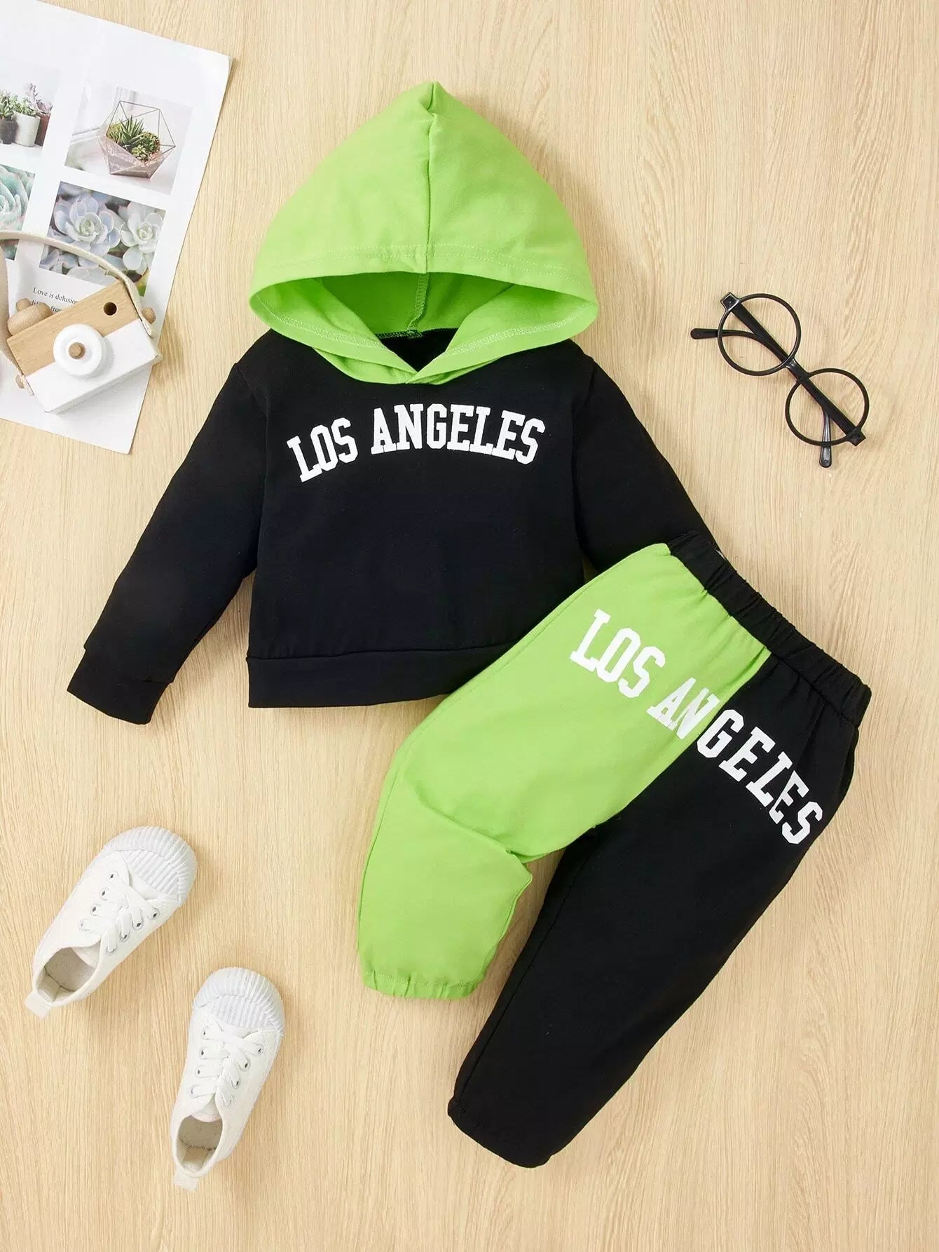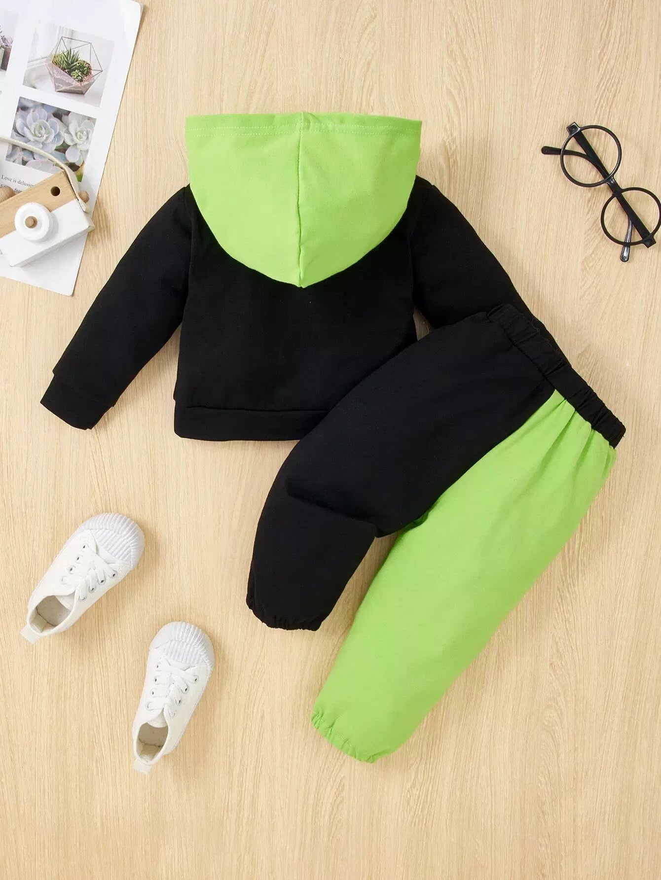 Baby Letter Graphic Colorblock Hoodie & Sweatpants