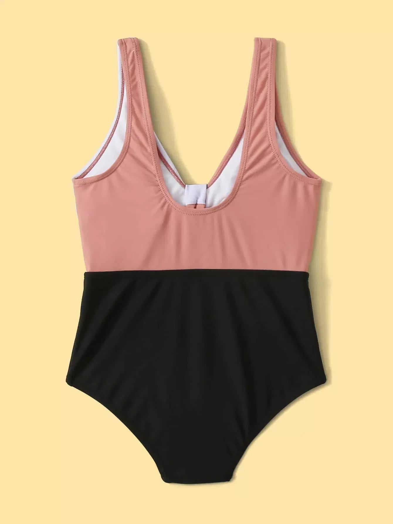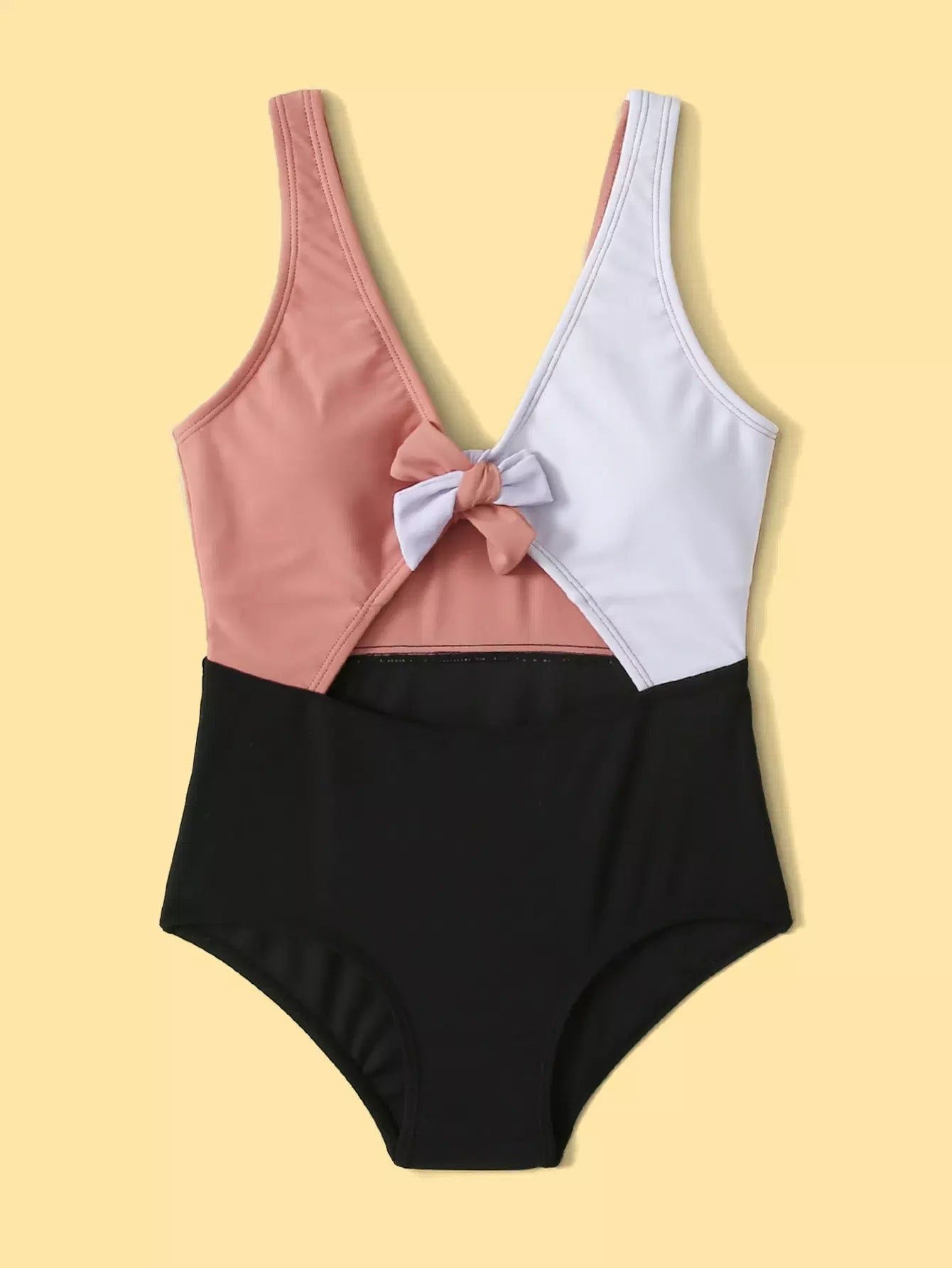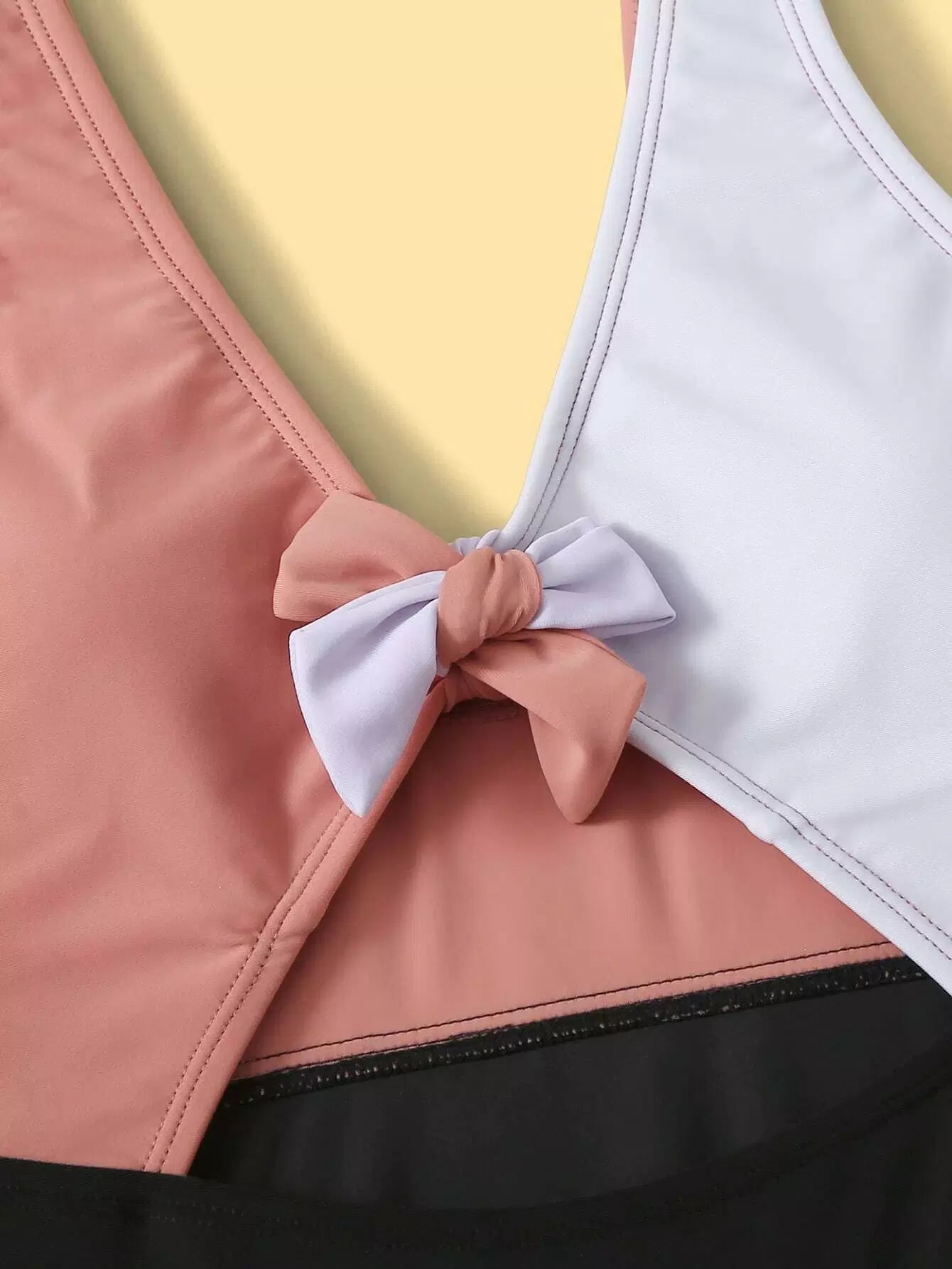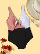 Girls Color Block Cut-out Knot One Piece Swimsuit