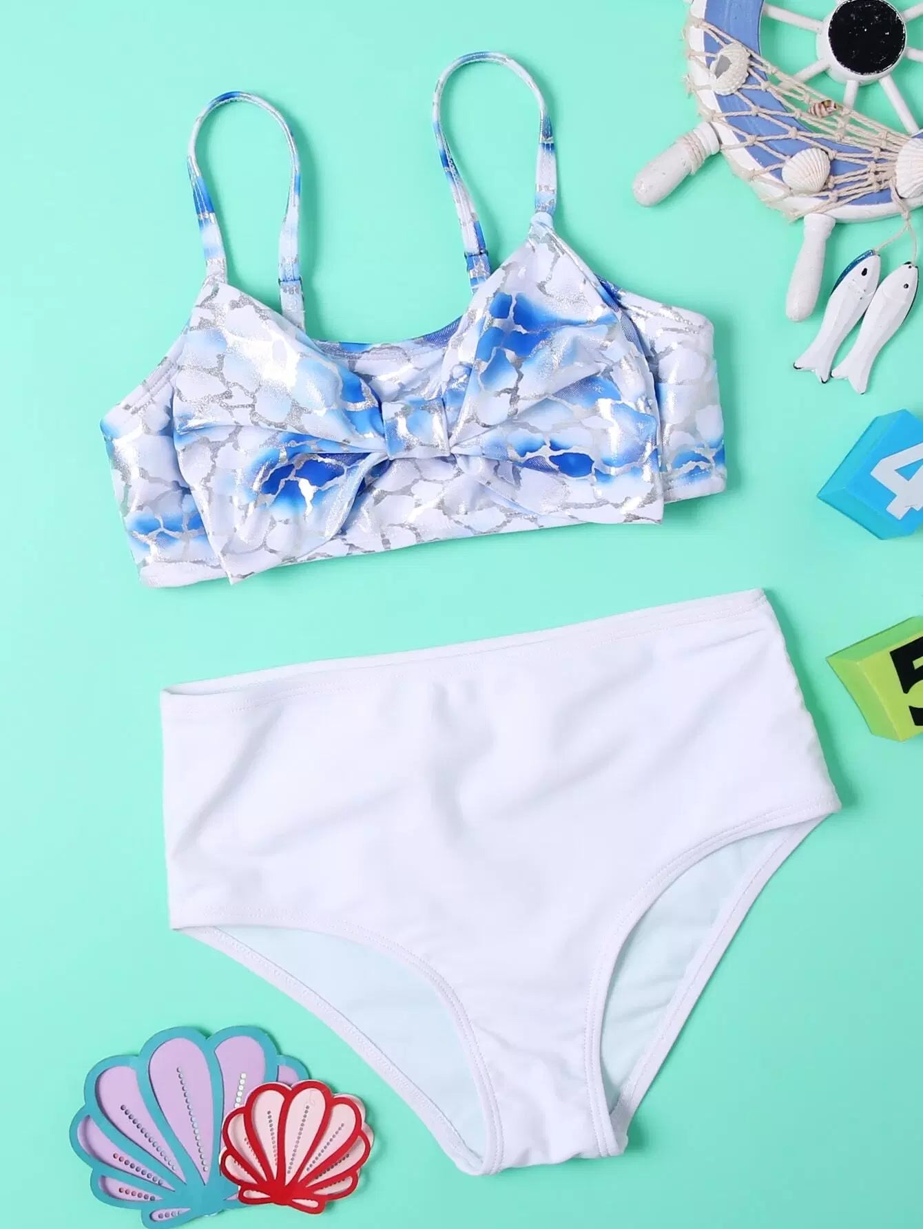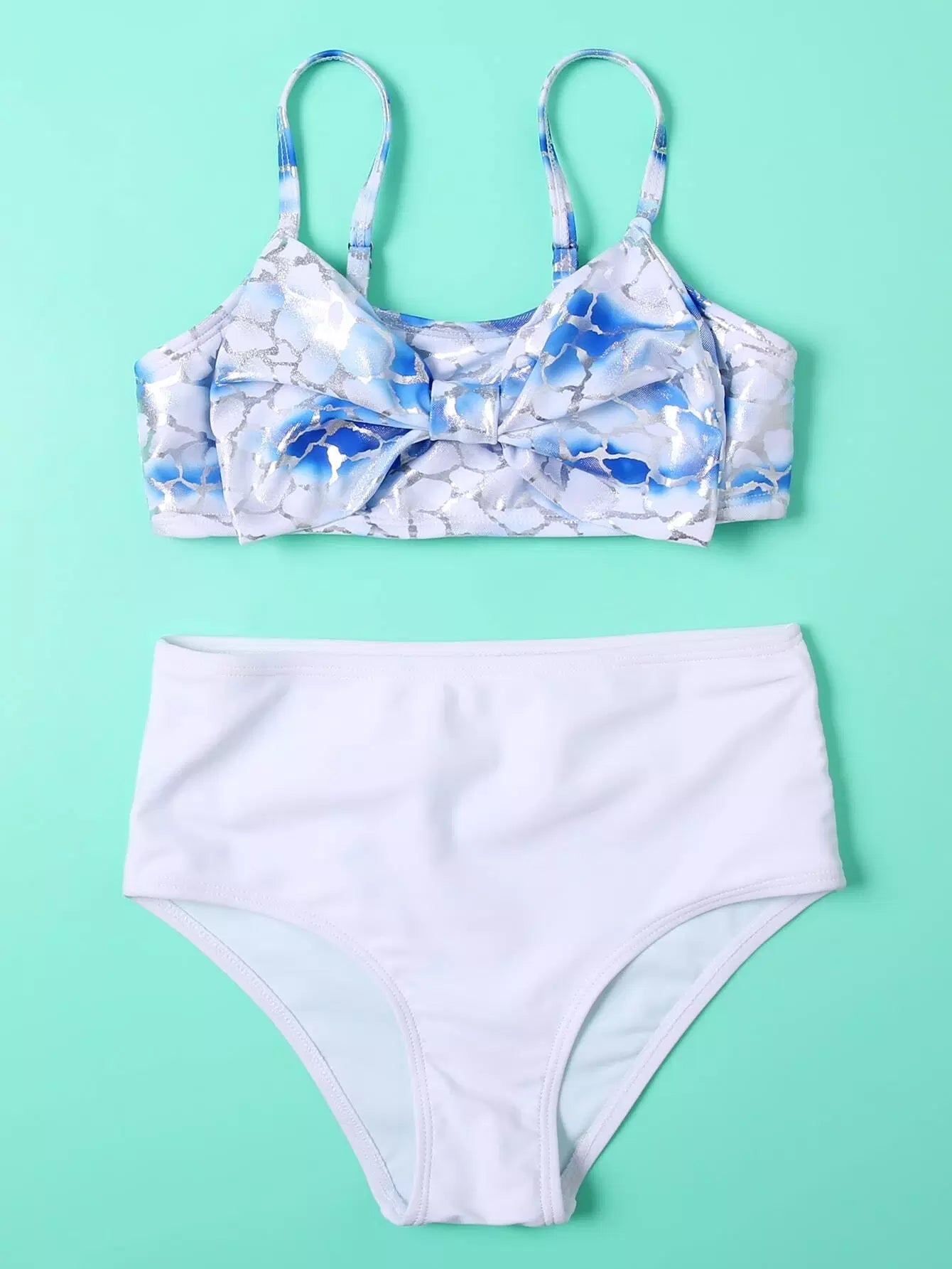 Girls Graphic Bow Decor Bikini Swimsuit
