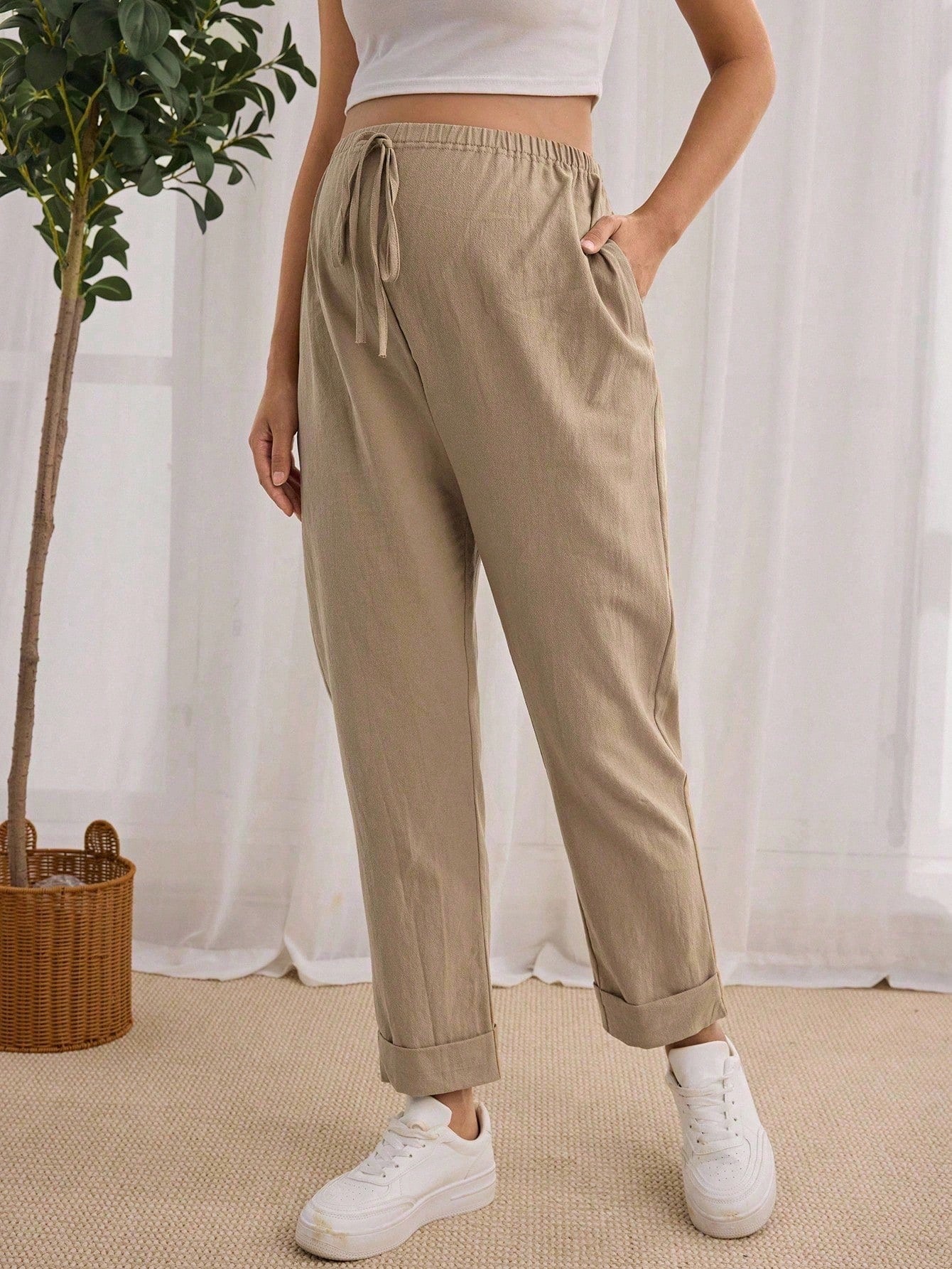Maternity Solid Color Simple Daily Wear Drawstring Pants