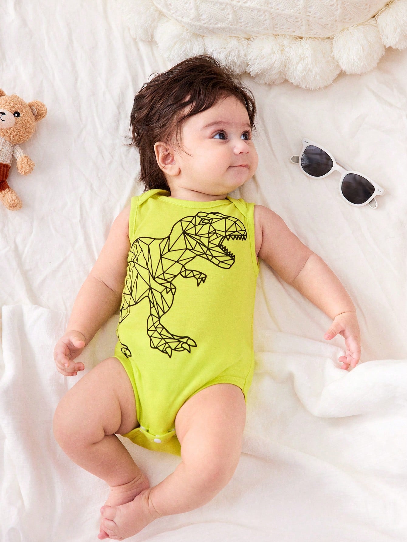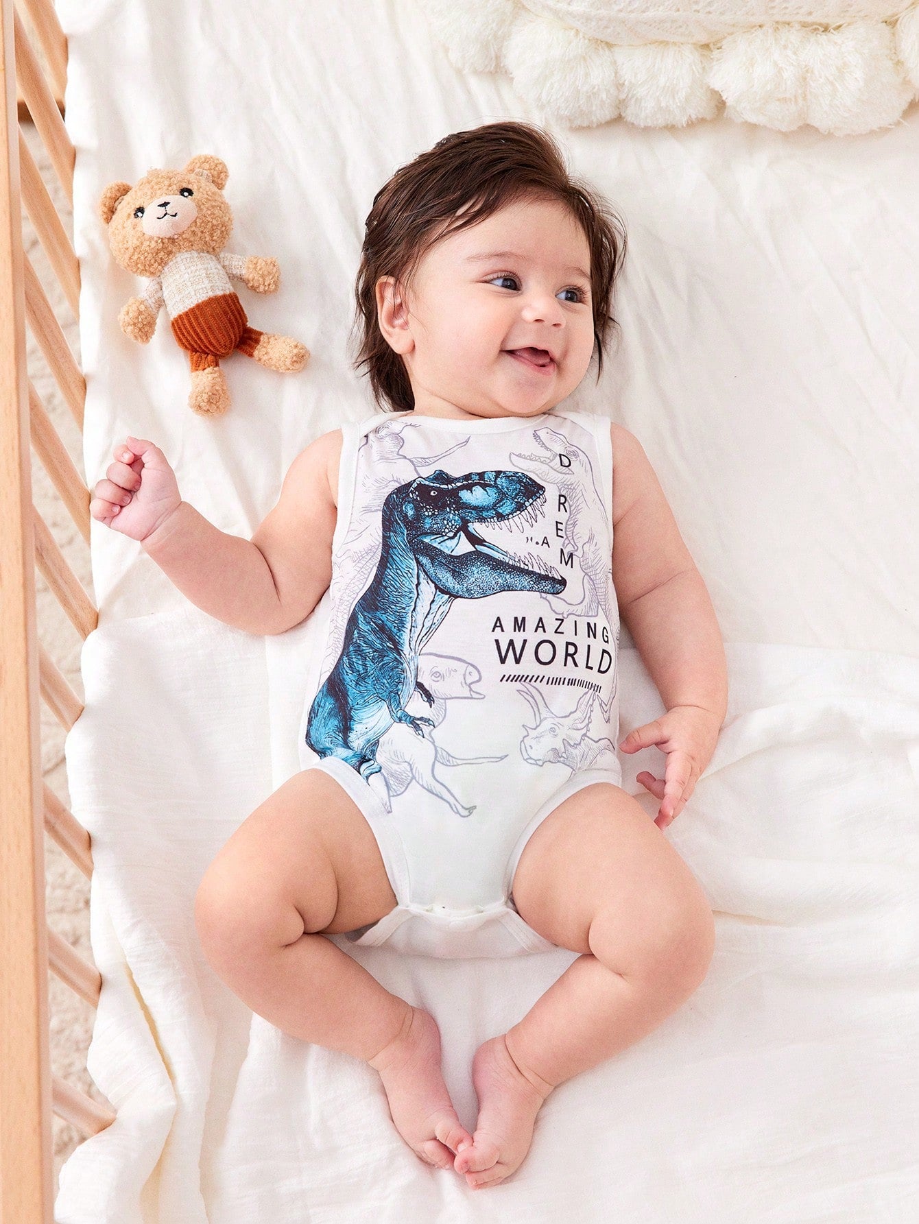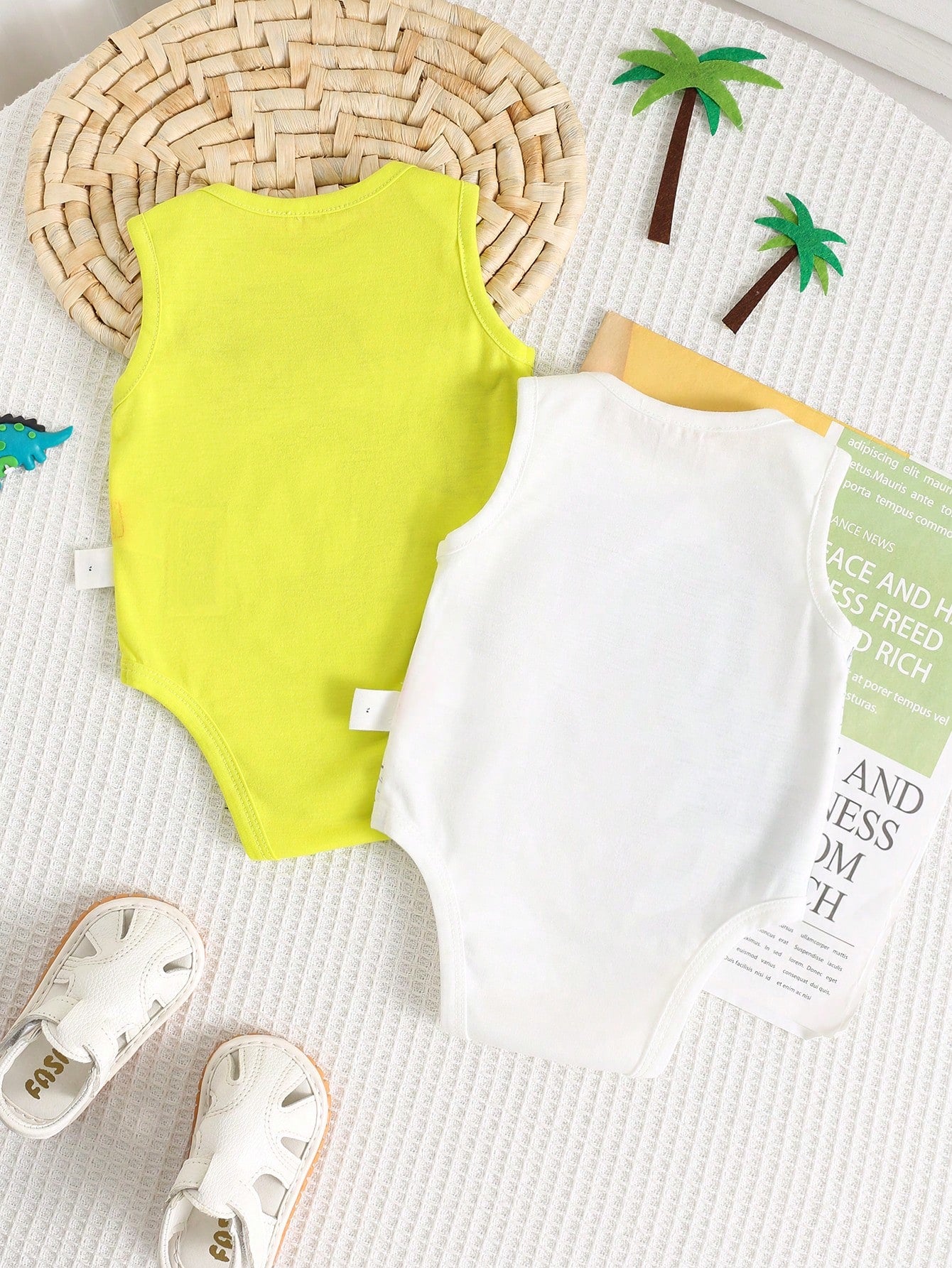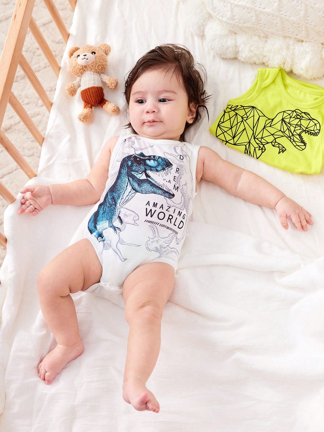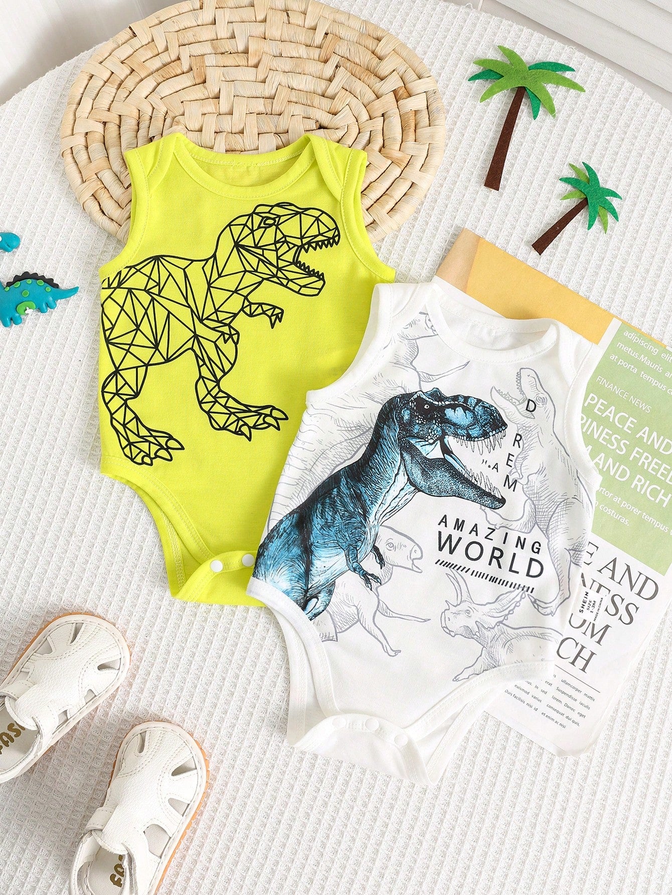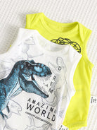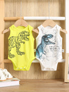 2pcs/Set Newborn Baby Dinosaur Print Casual Short Sleeve Romper Jumpsuit, Suitable For Spring And Summer