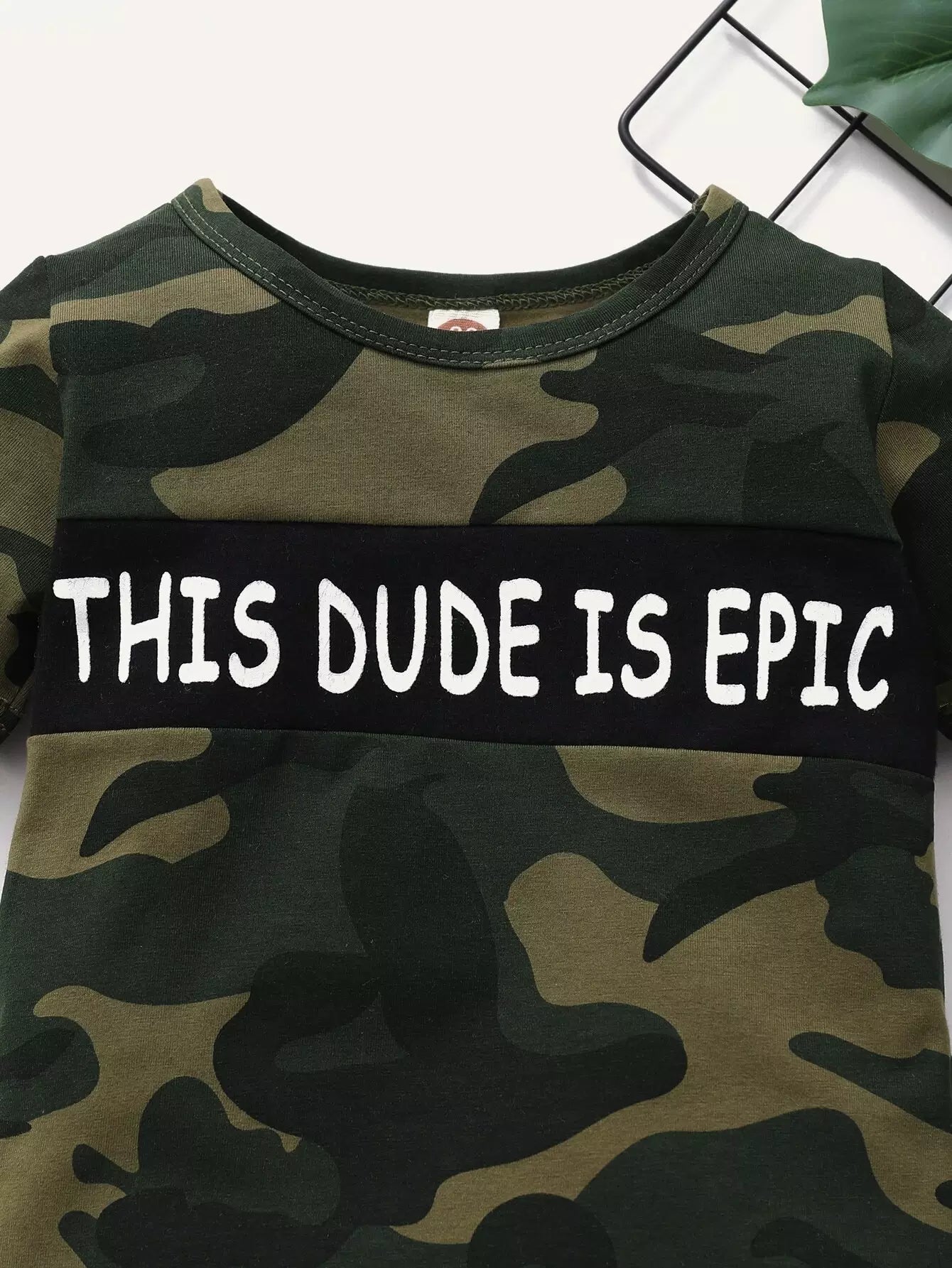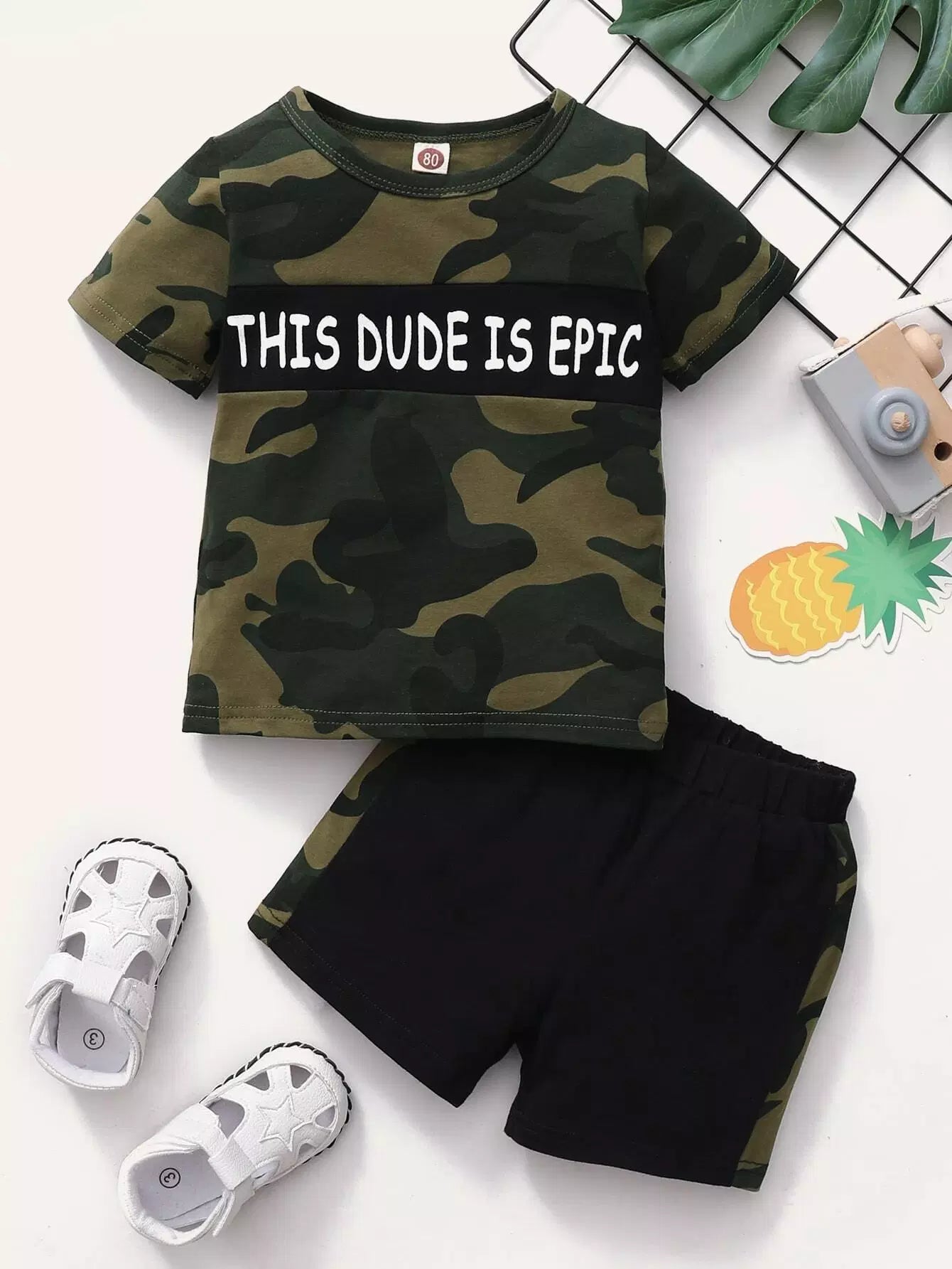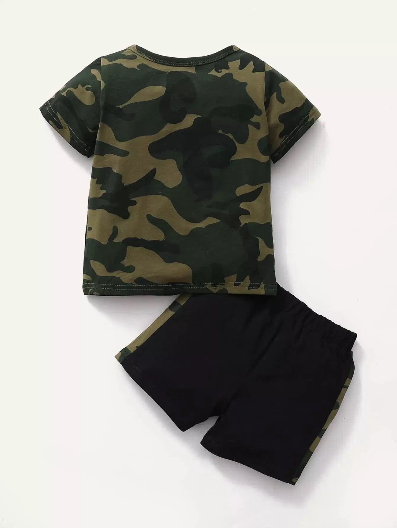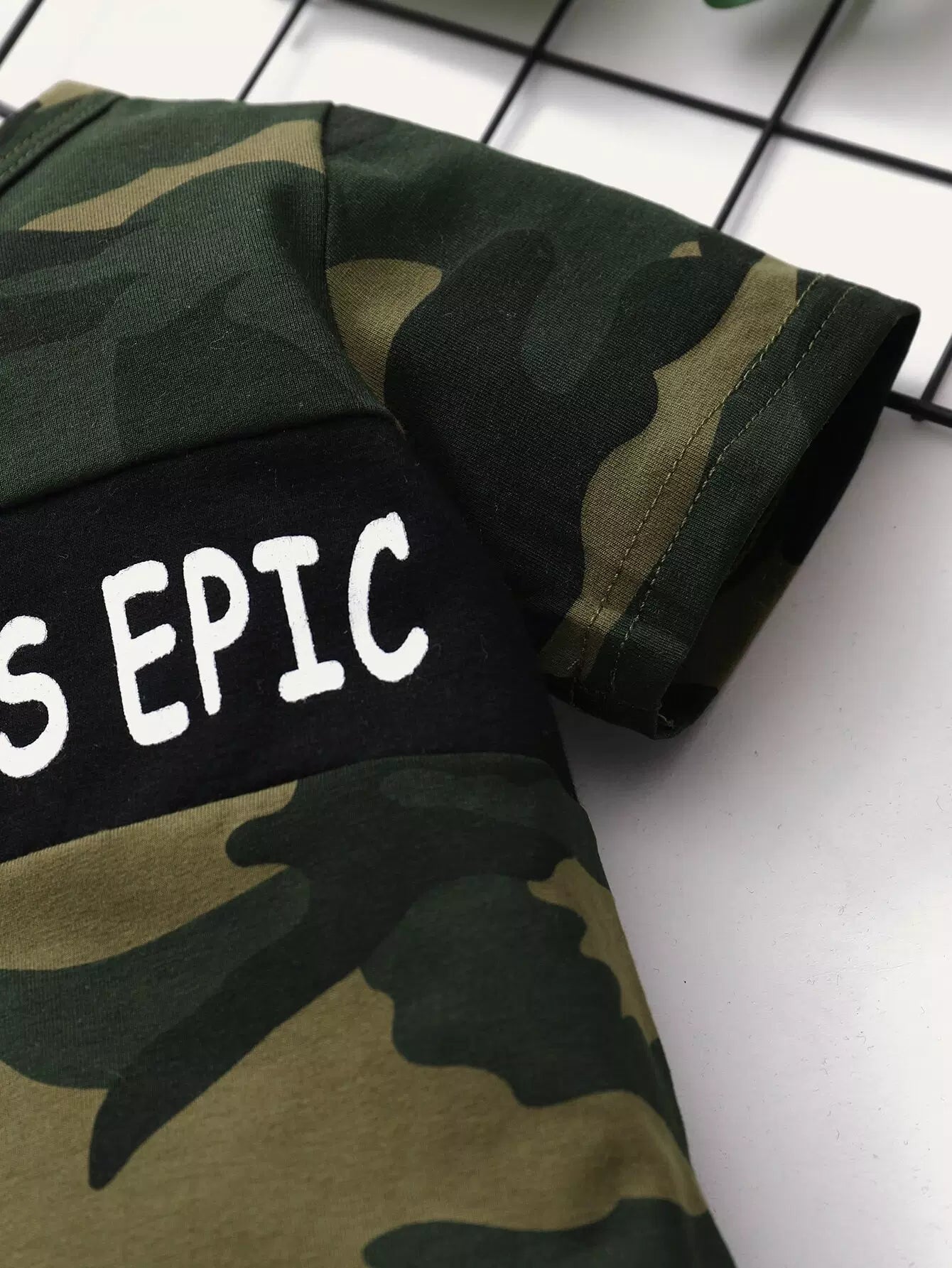 Baby Boy Camo Slogan Graphic Tee With Shorts