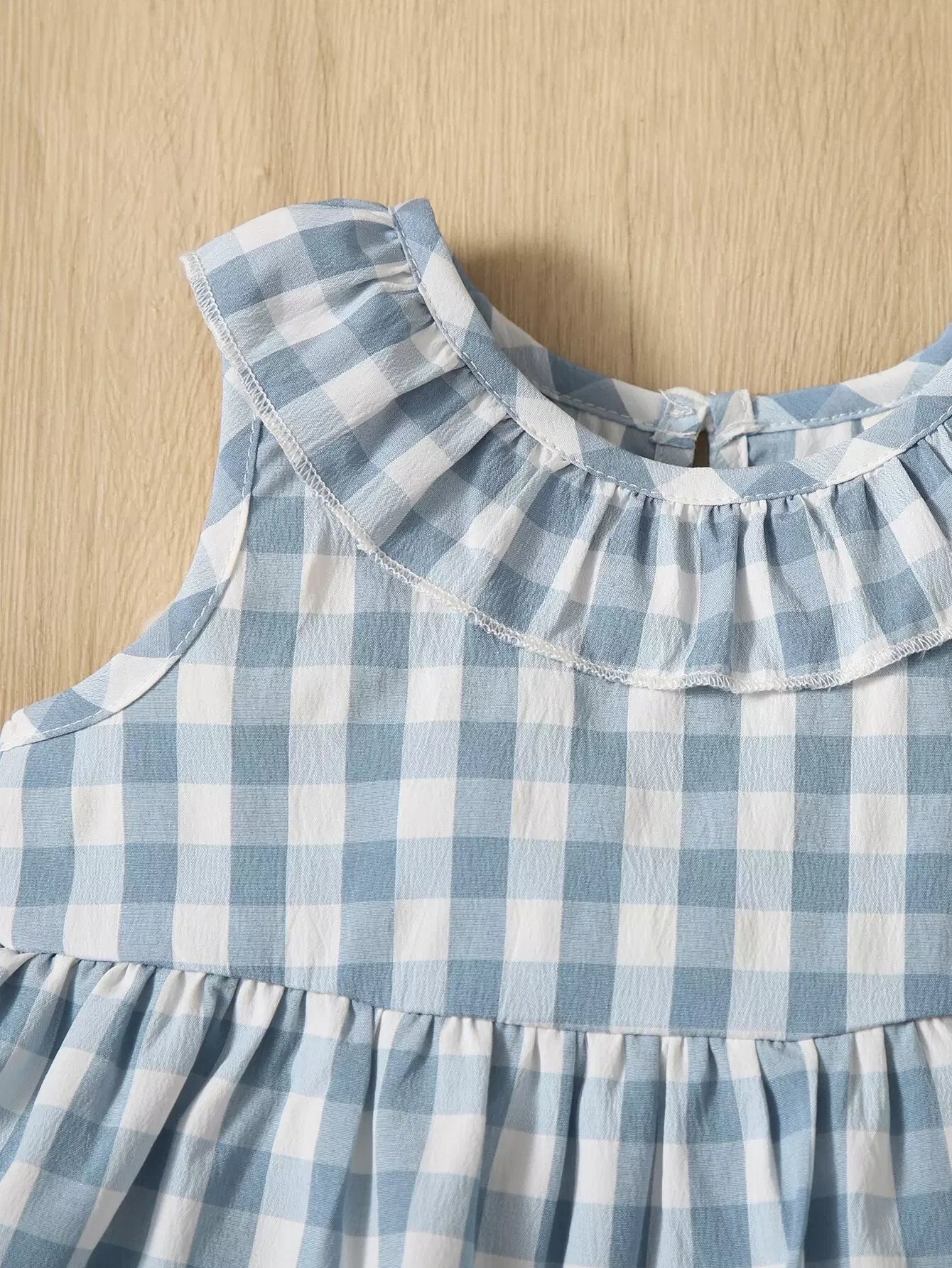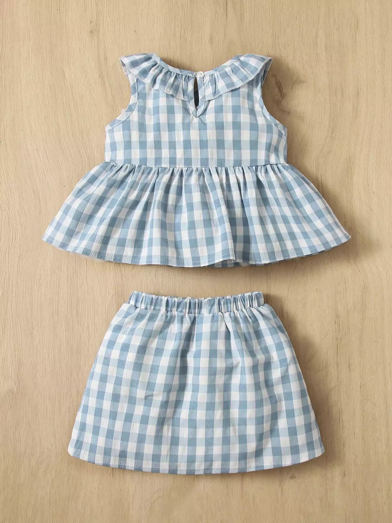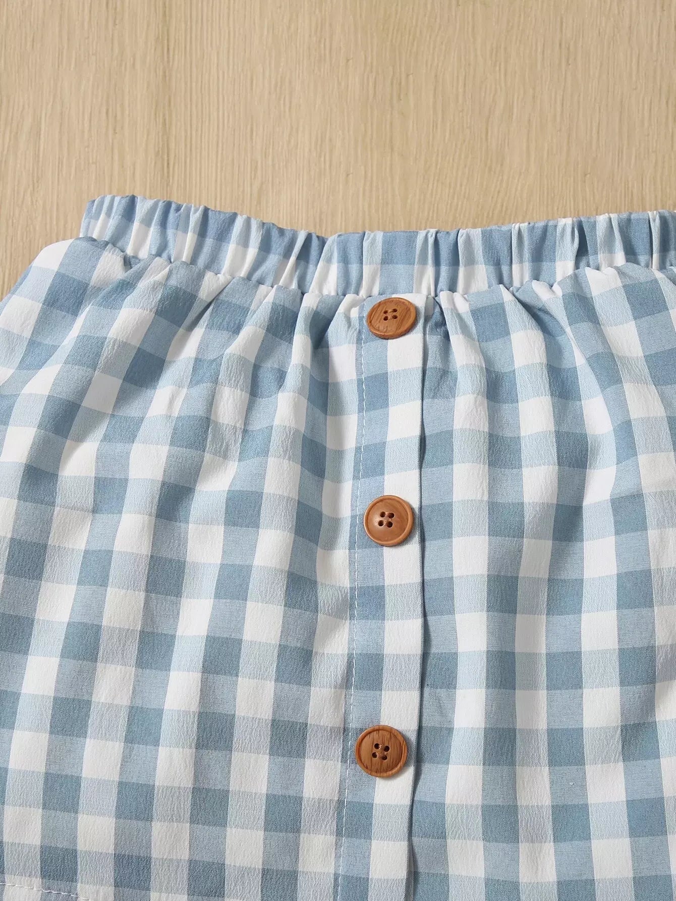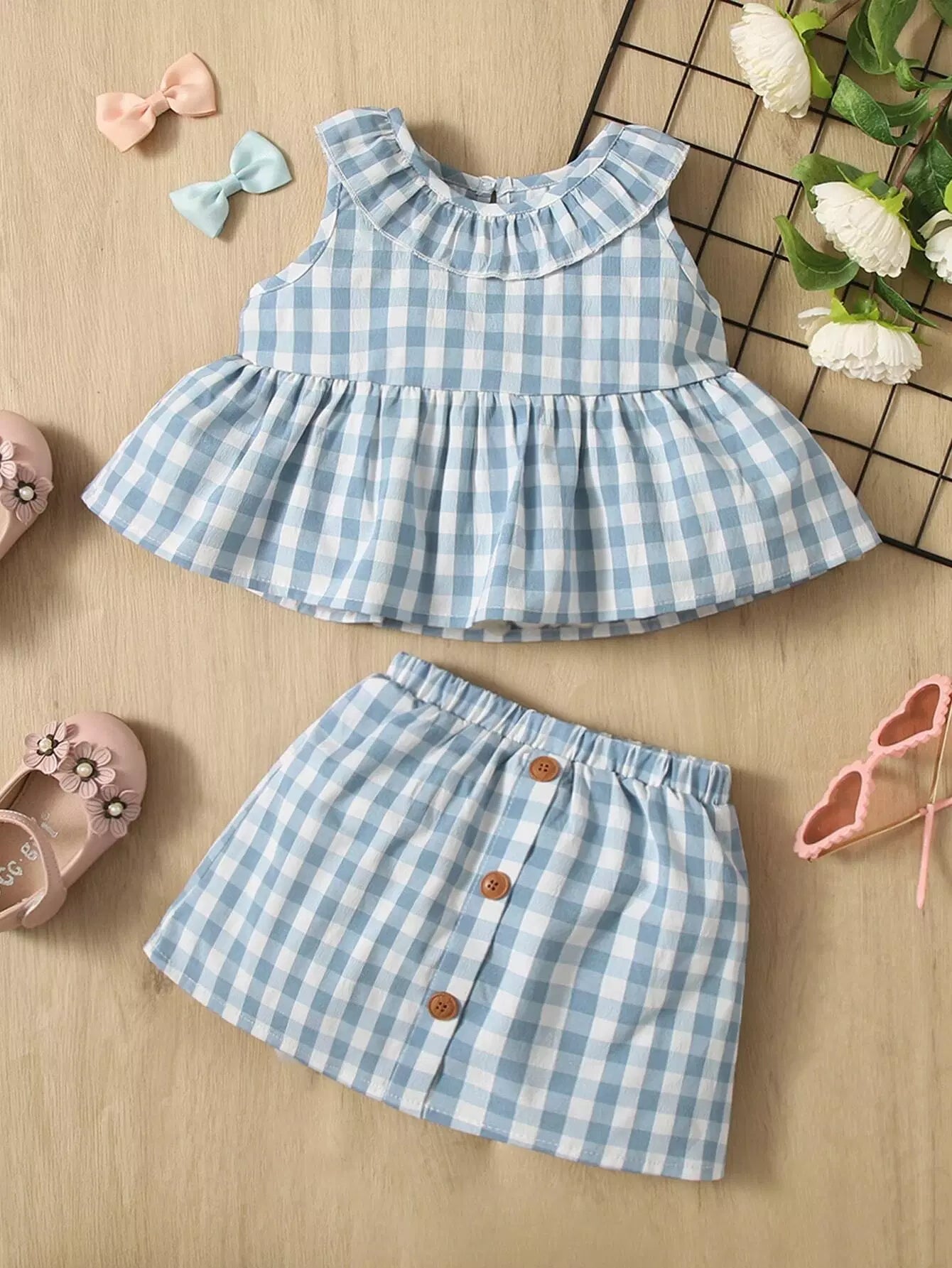 Baby Gingham Peplum Hem Top & Fake Button Skirt