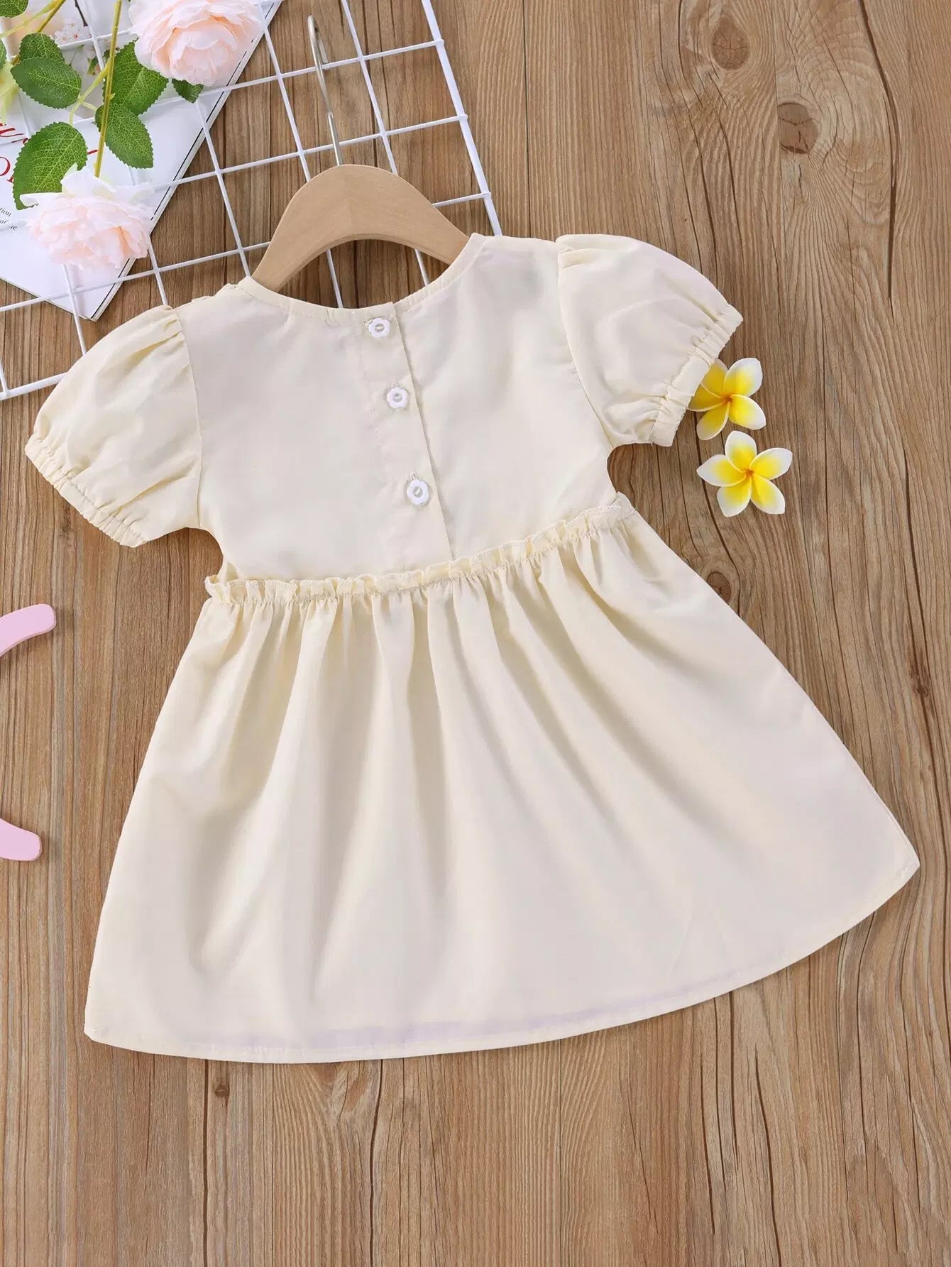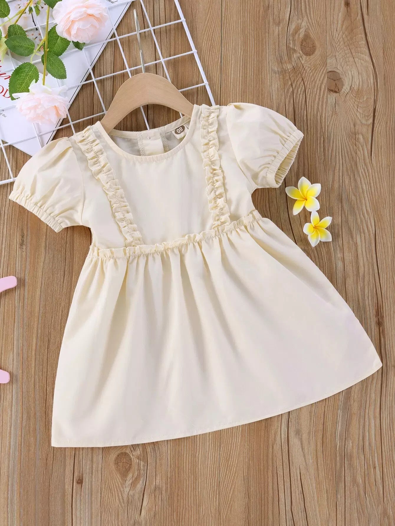 Baby Girl Frill Trim Puff Sleeve Babydoll Dress
