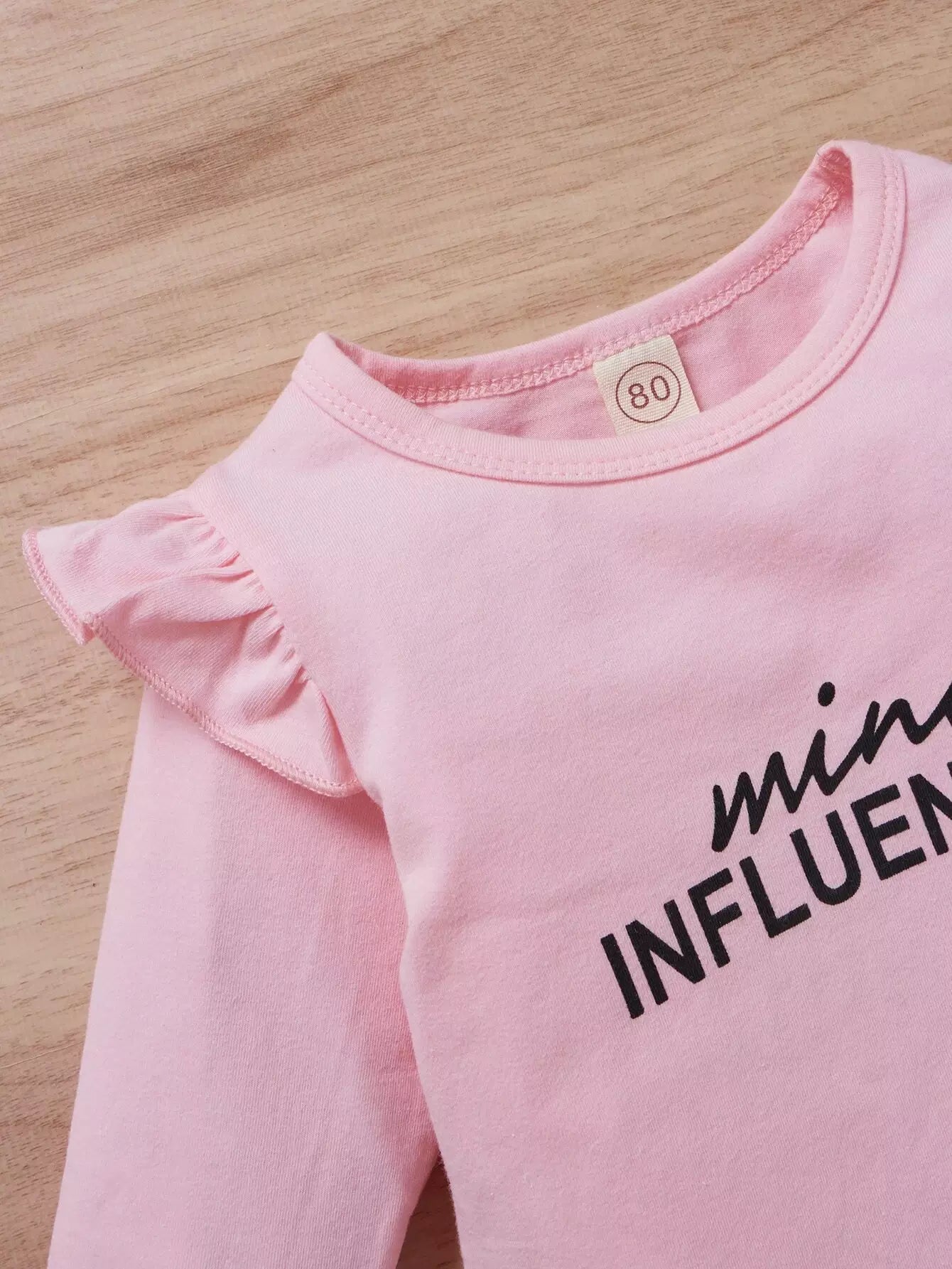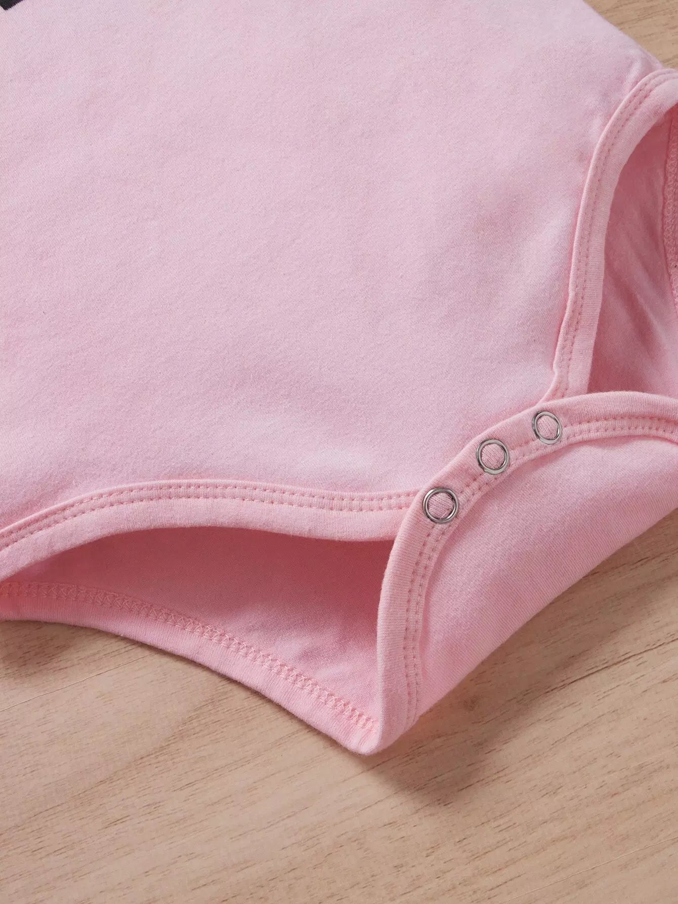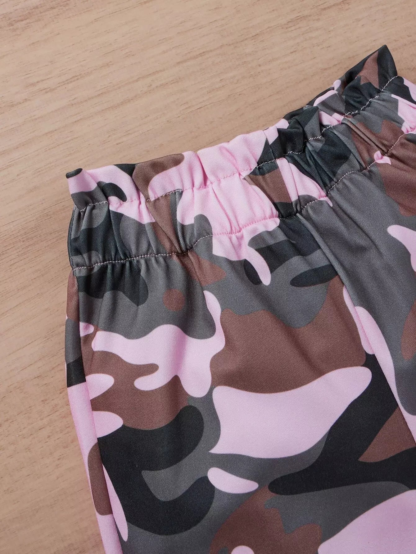 Baby Girl Letter Graphic Bodysuit & Camo Sweatpants & Headband
