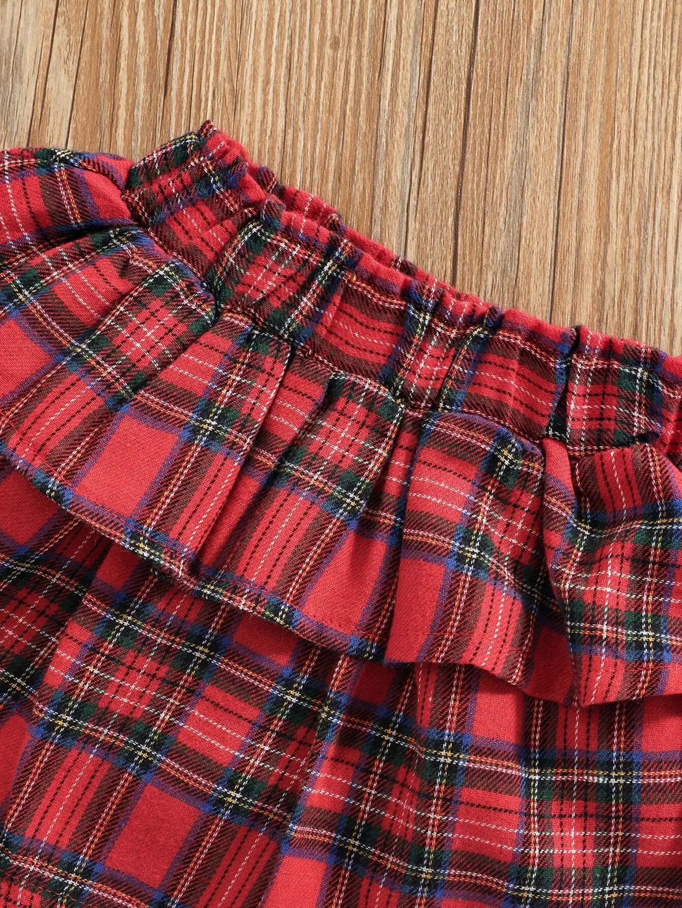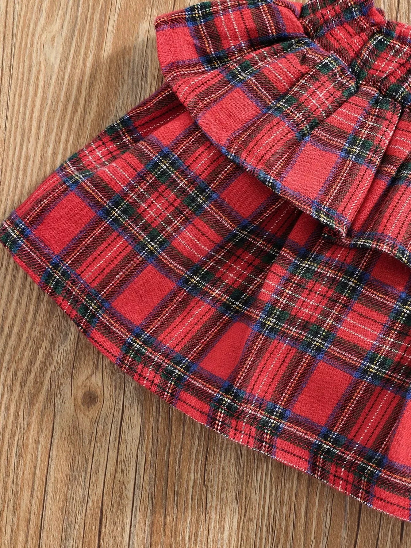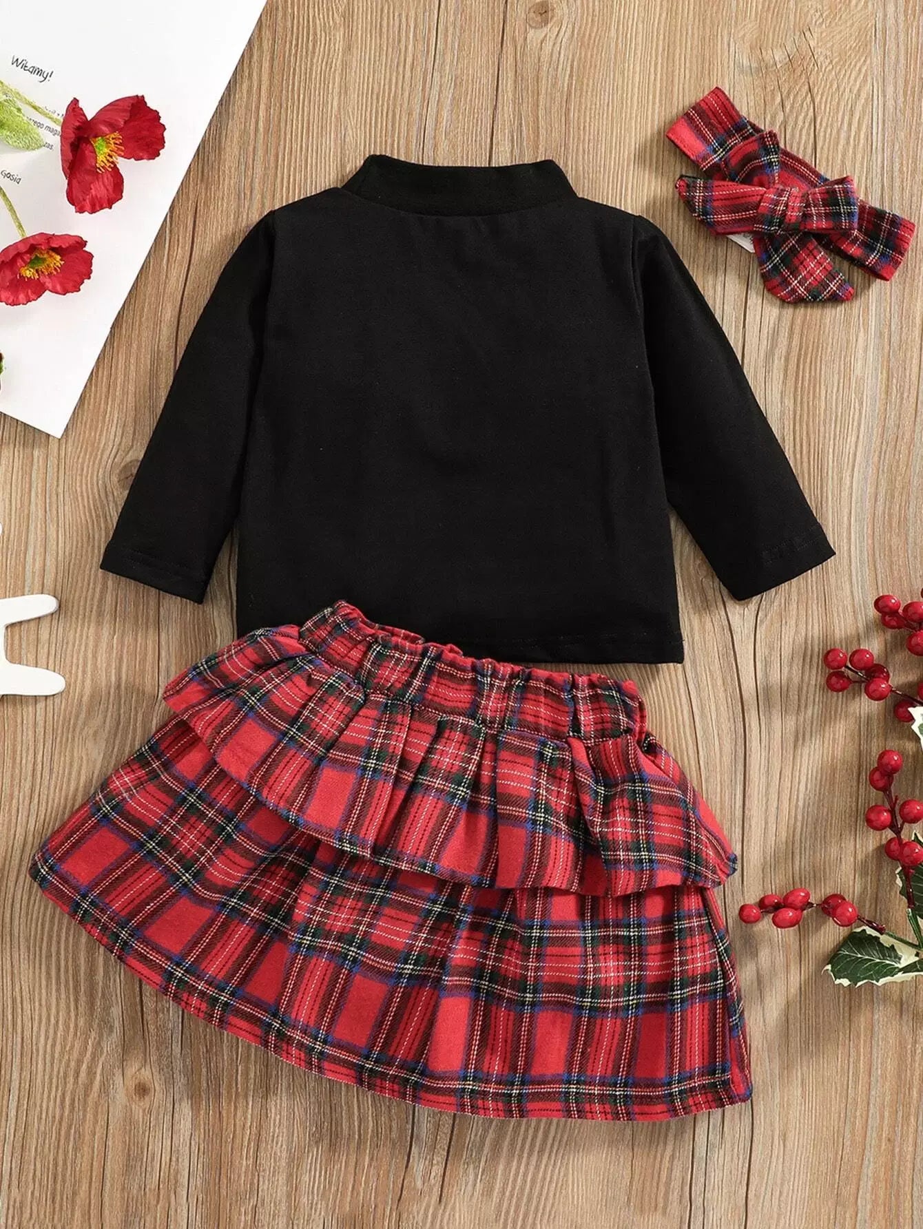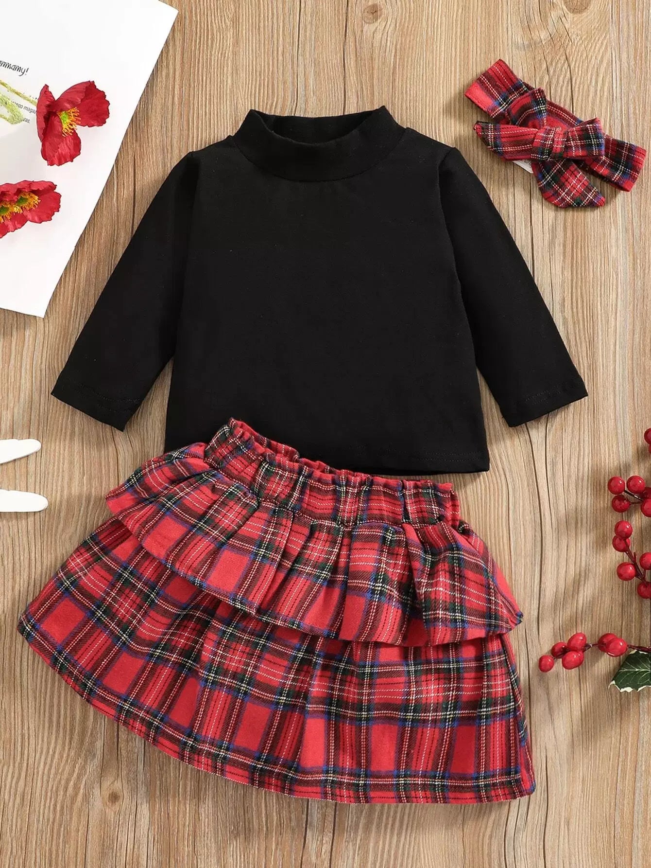 Baby Mock Neck Tee & Tartan Layer Hem Skirt & Headband