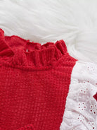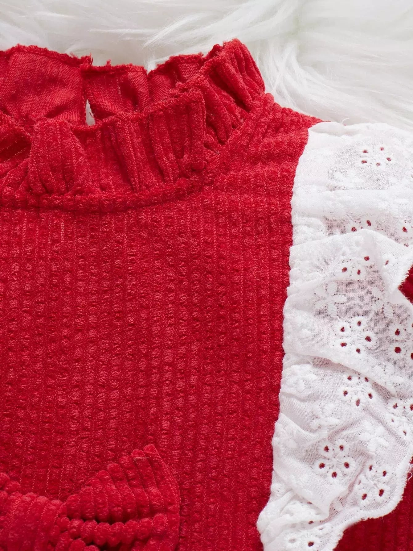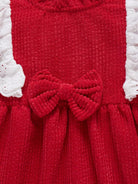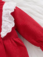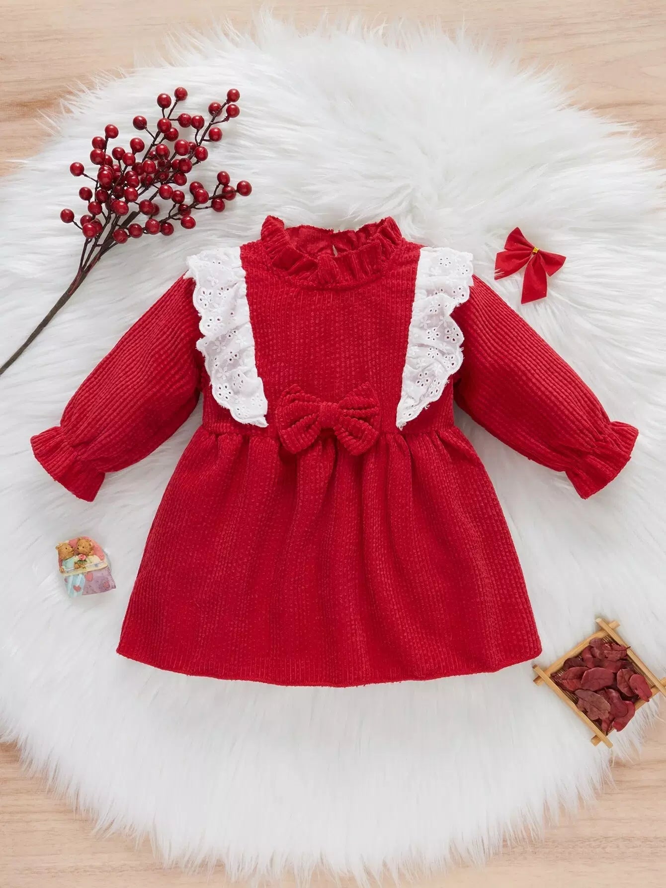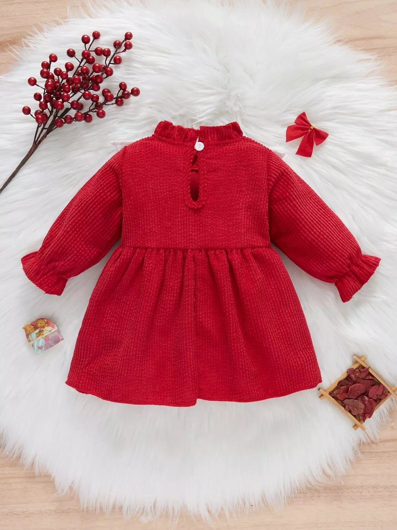 Baby Ruffle Trim Flounce Sleeve Bow Front Corduroy Dress