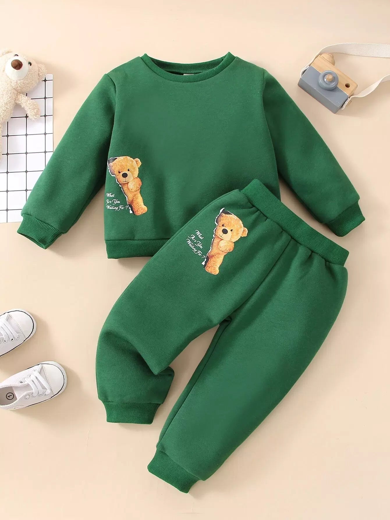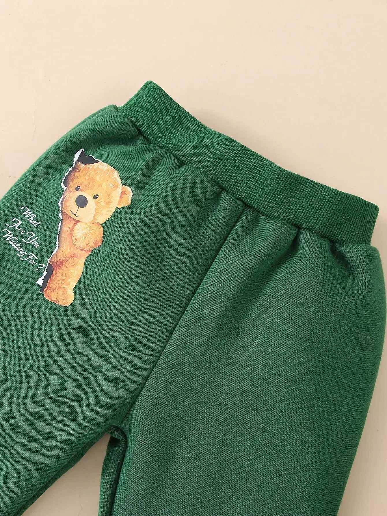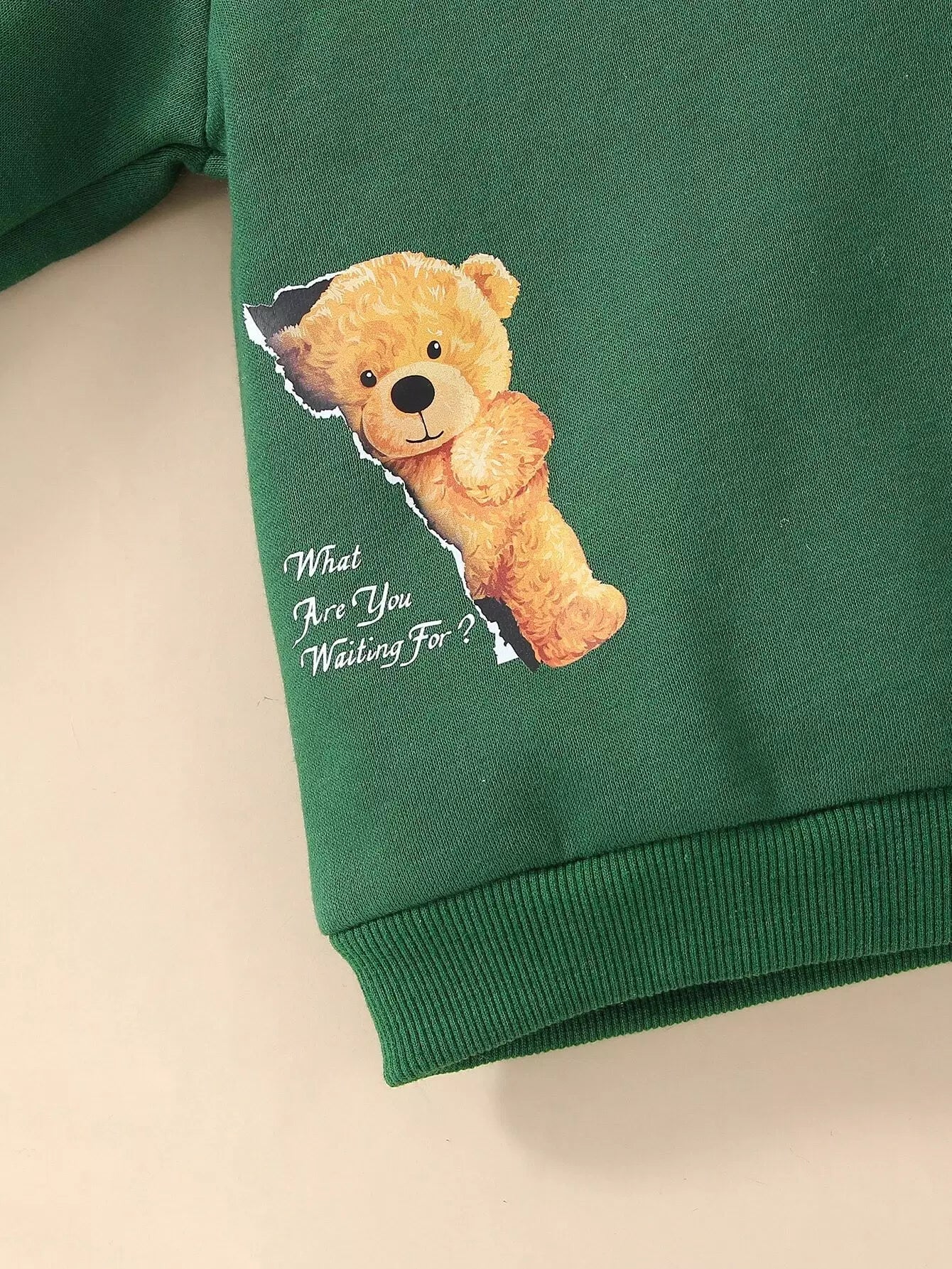 Baby Slogan And Cartoon Bear Print Sweatshirt And Sweatpants