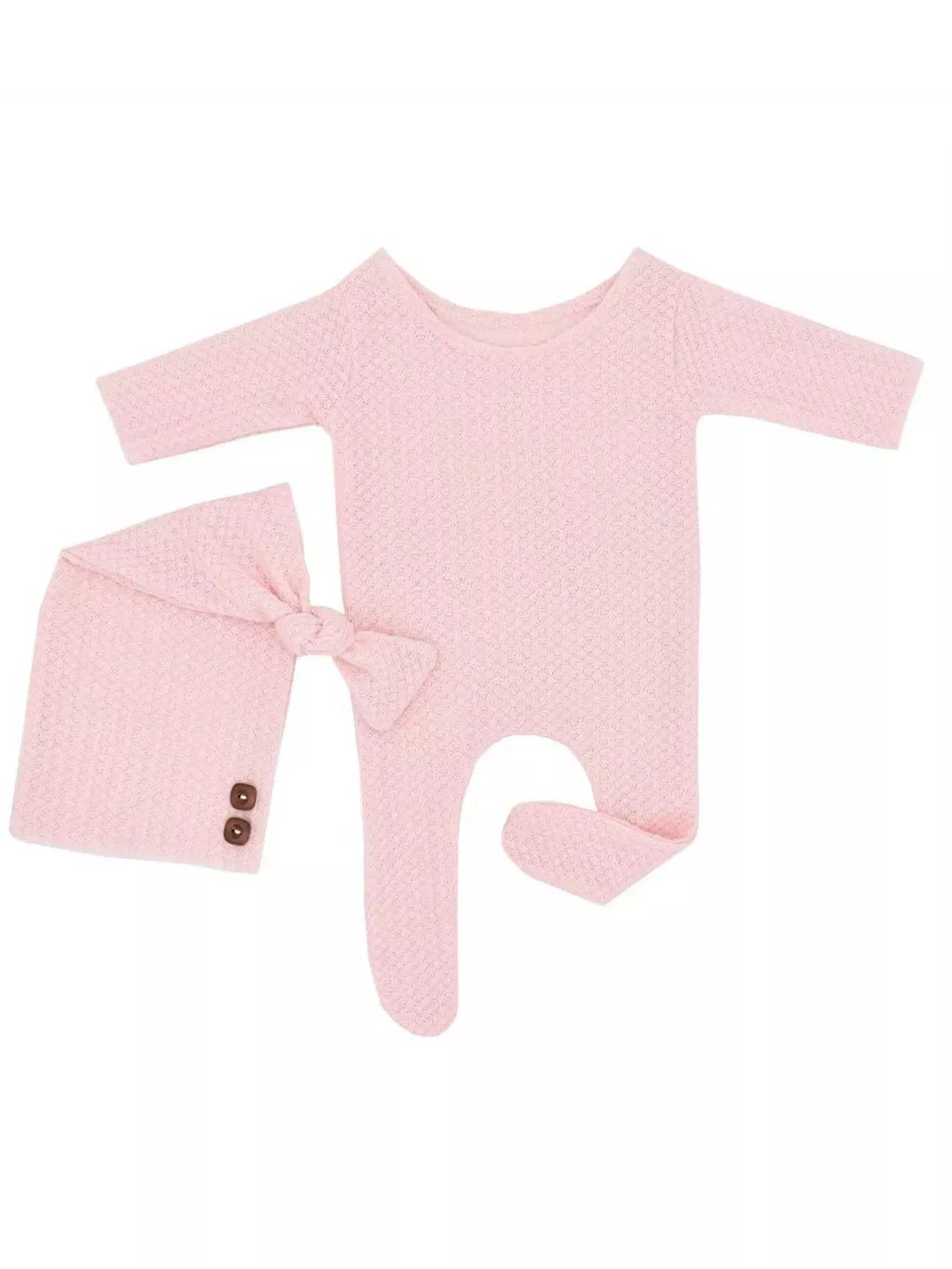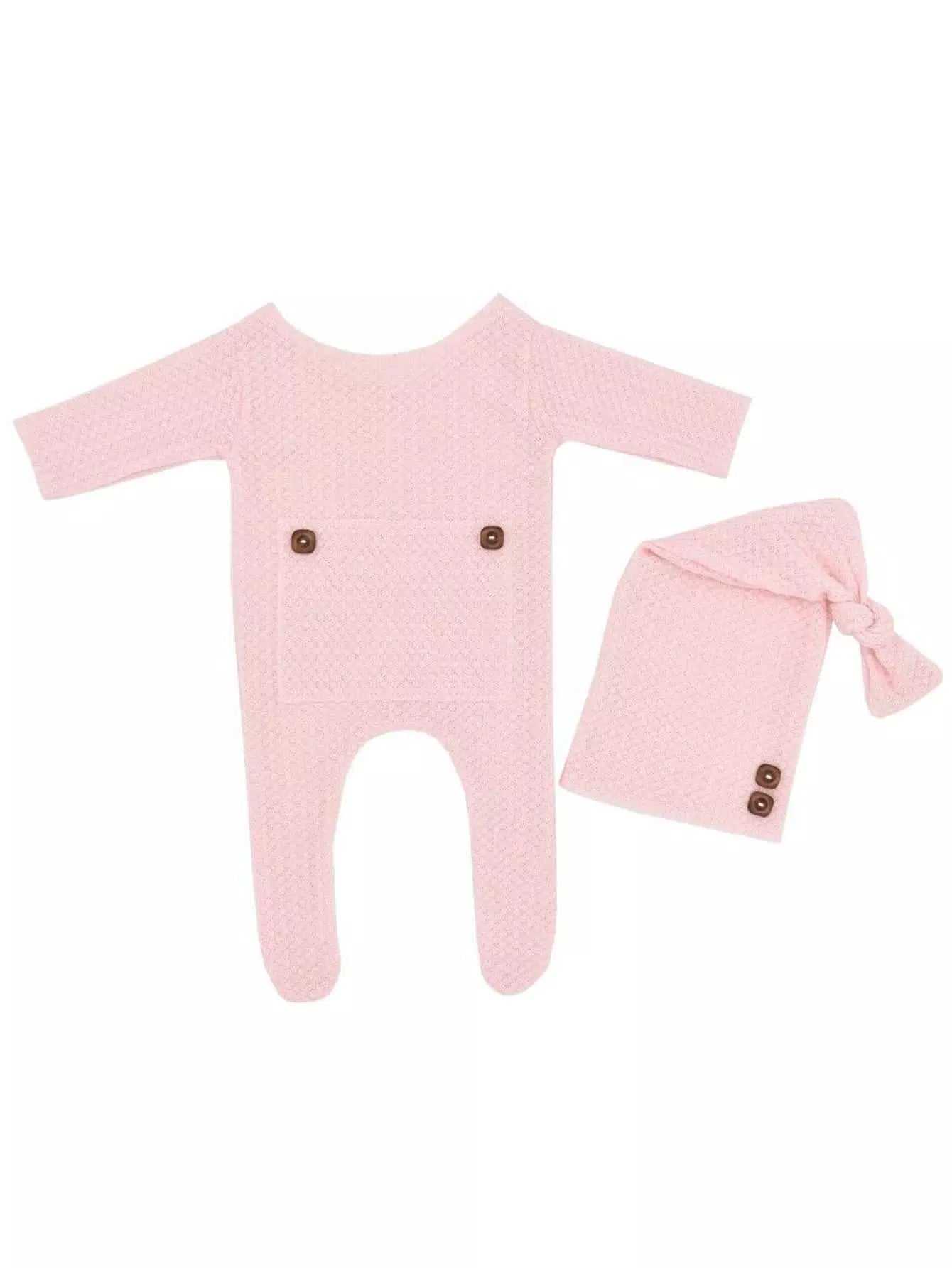 Newborn Girl Solid Pocket Jumpsuit & Hat Photo Outfit