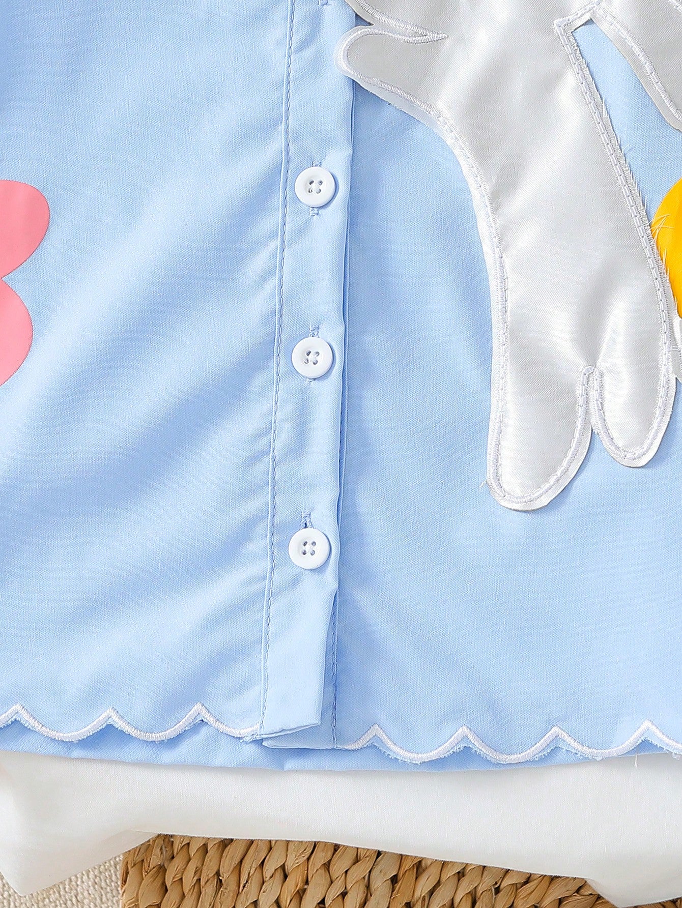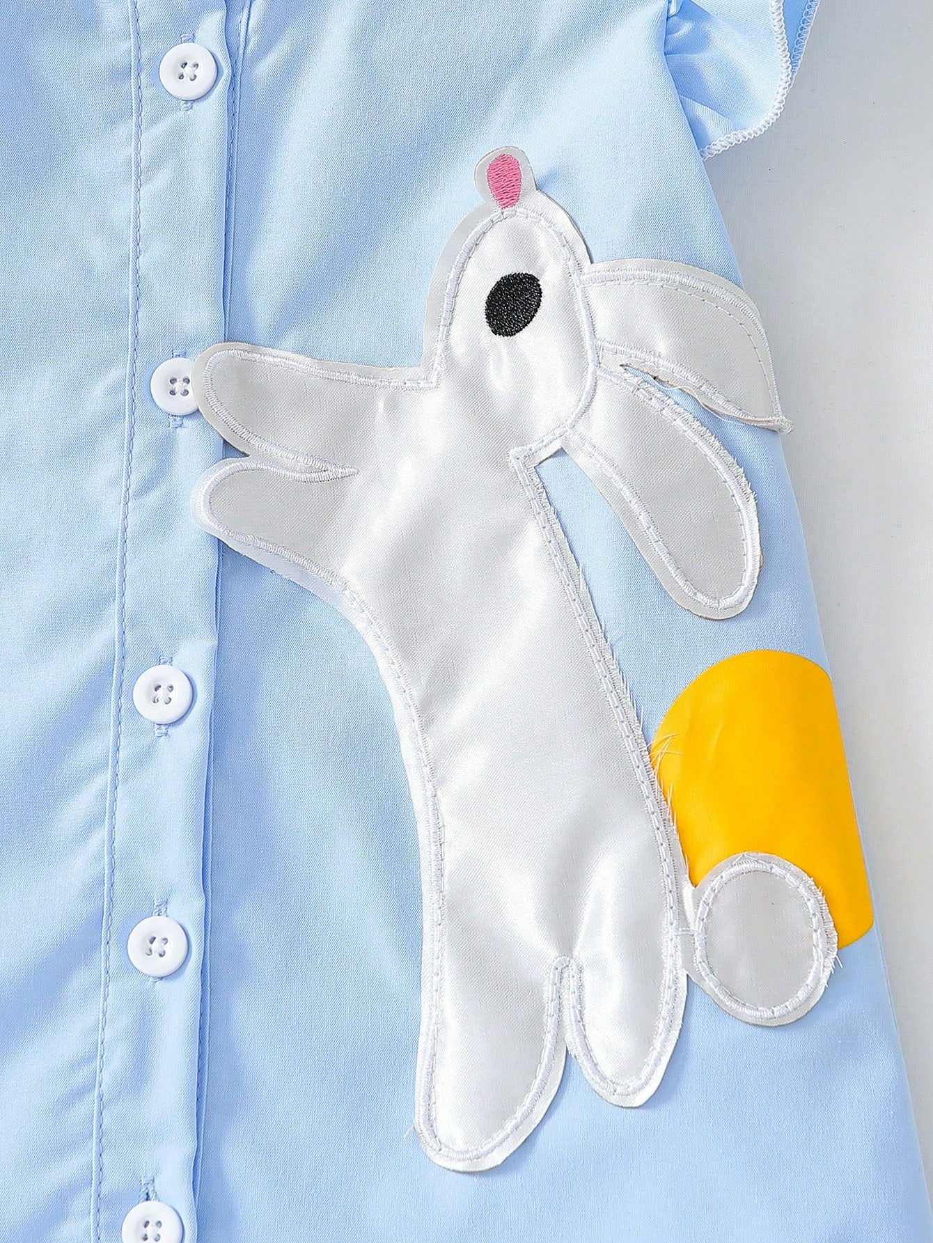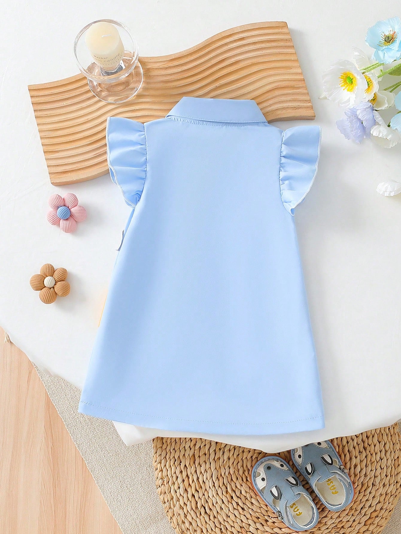 SHEIN Baby Girl Cute Rabbit Decor Flounce Hem Sleeveless Dress