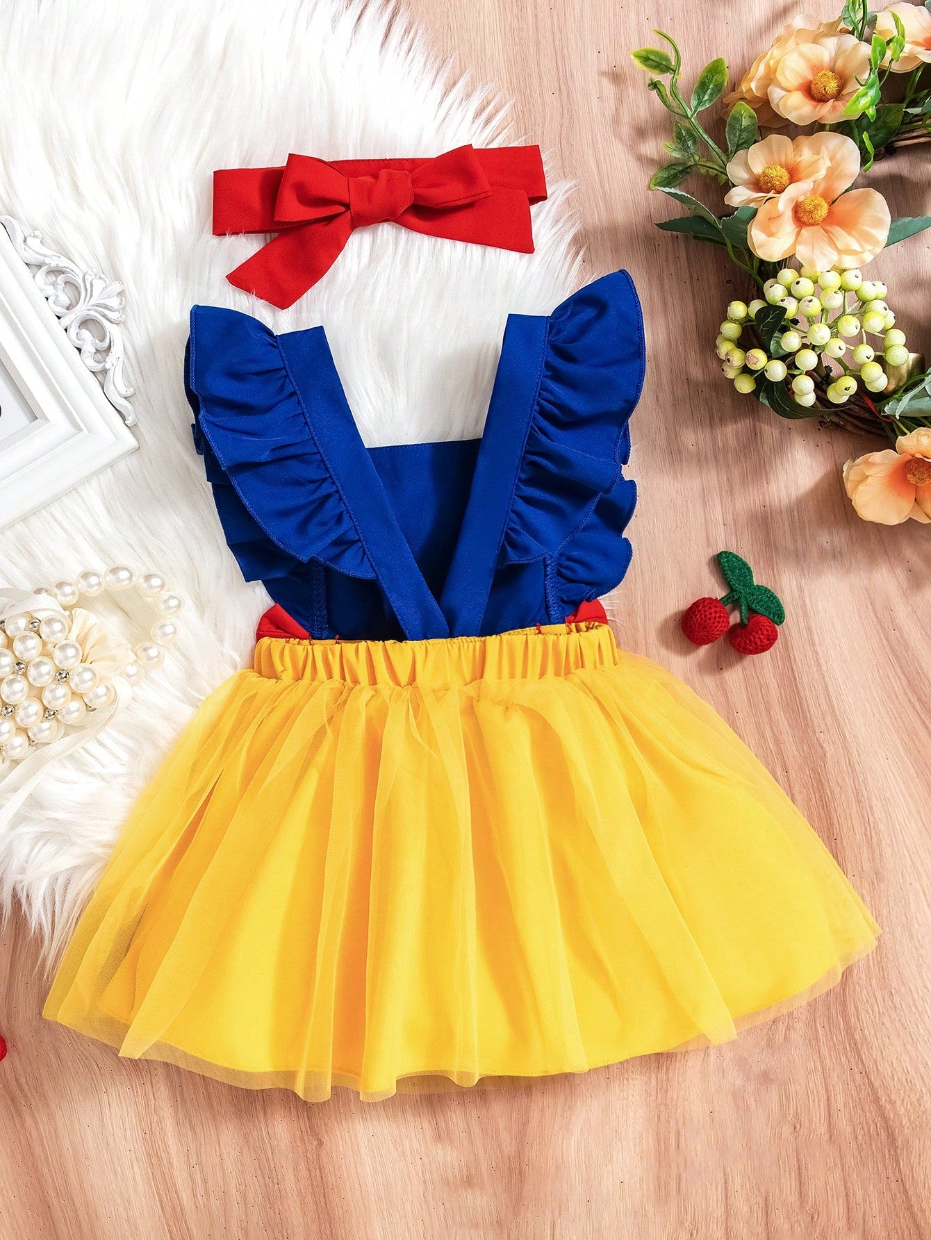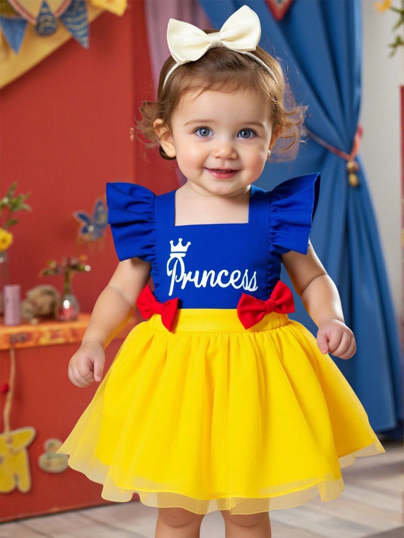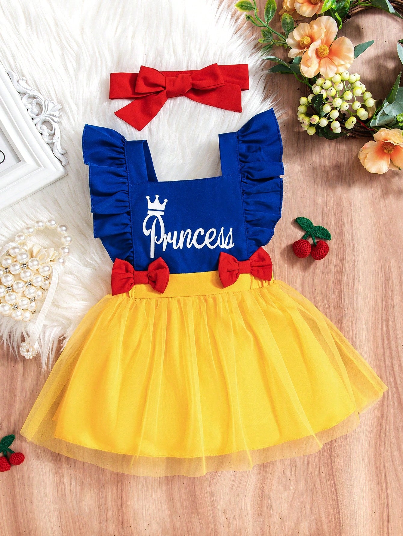 SHEIN Persoplay Kids Baby Girls Cute Elegant Princess Style Bow Decor Mesh Dress & Headband