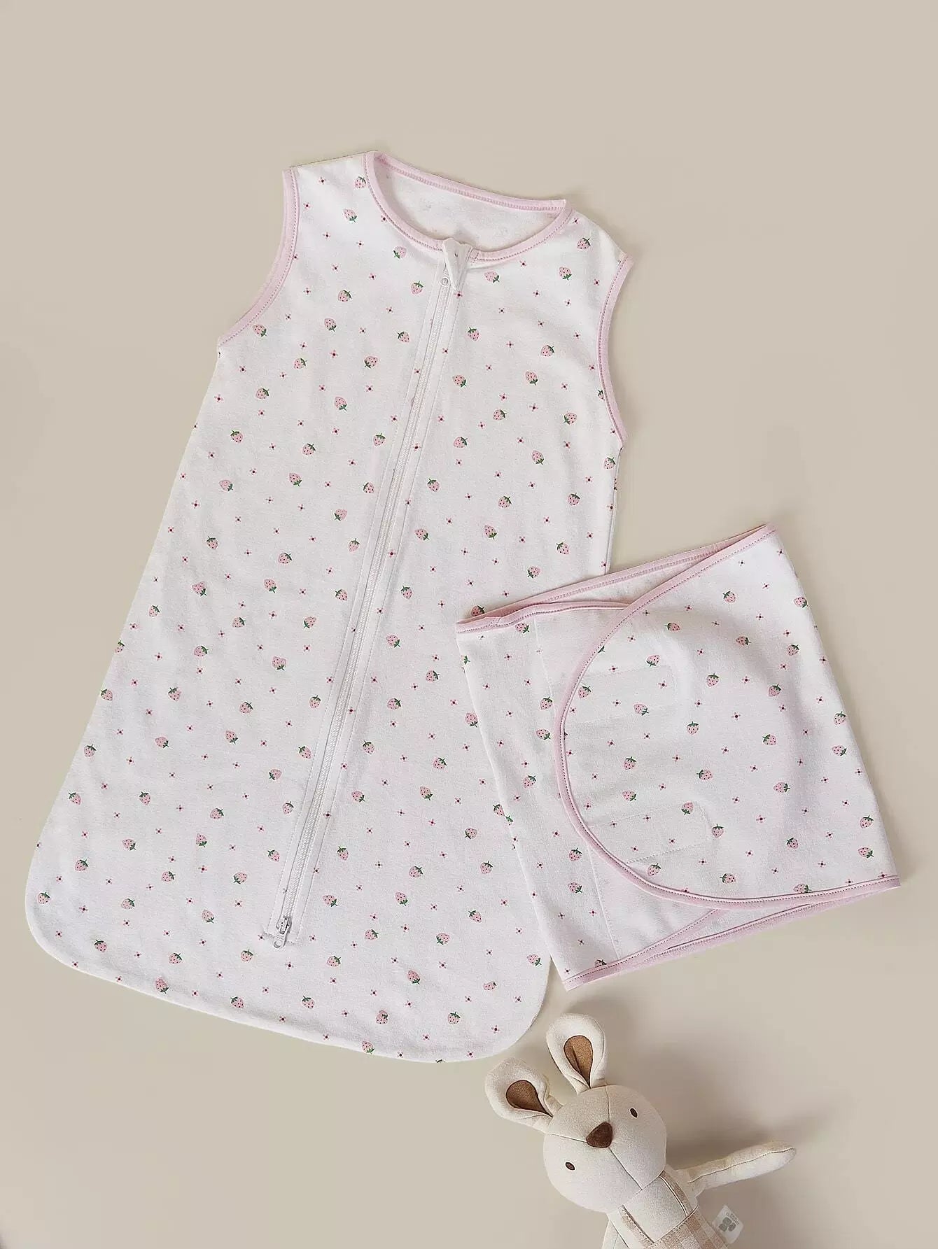 Strawberry Print Baby Receiving Blanket Strapping Accessory