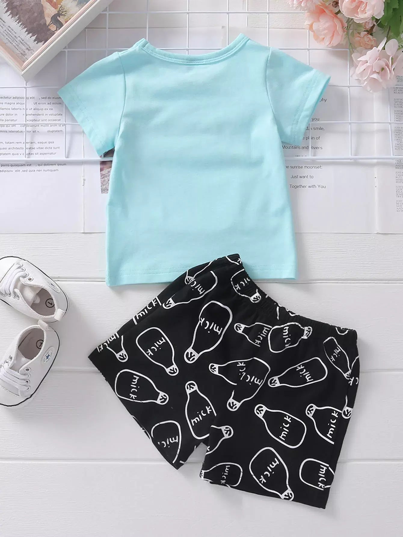 Baby Boy Letter And Graphic Print Tee & Shorts