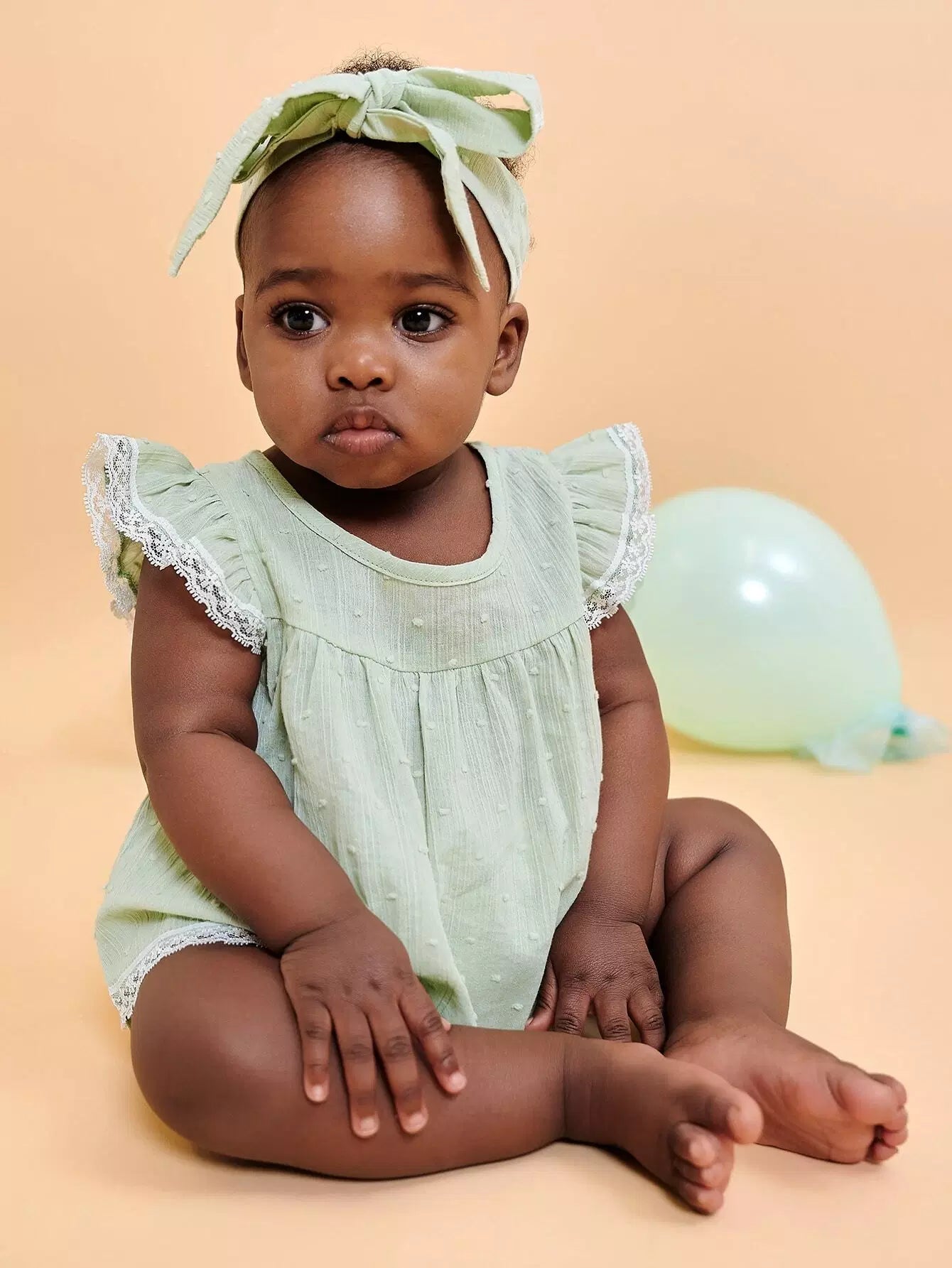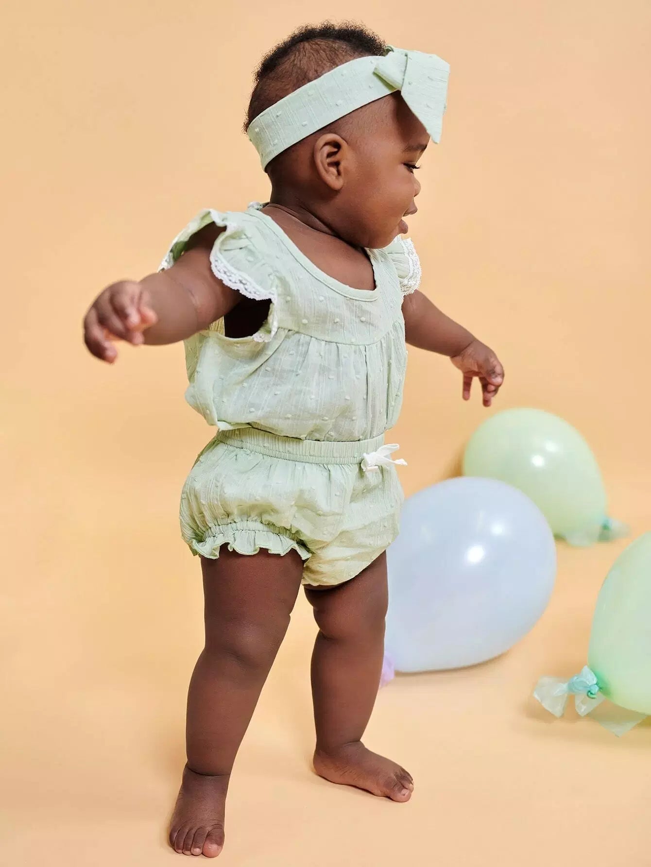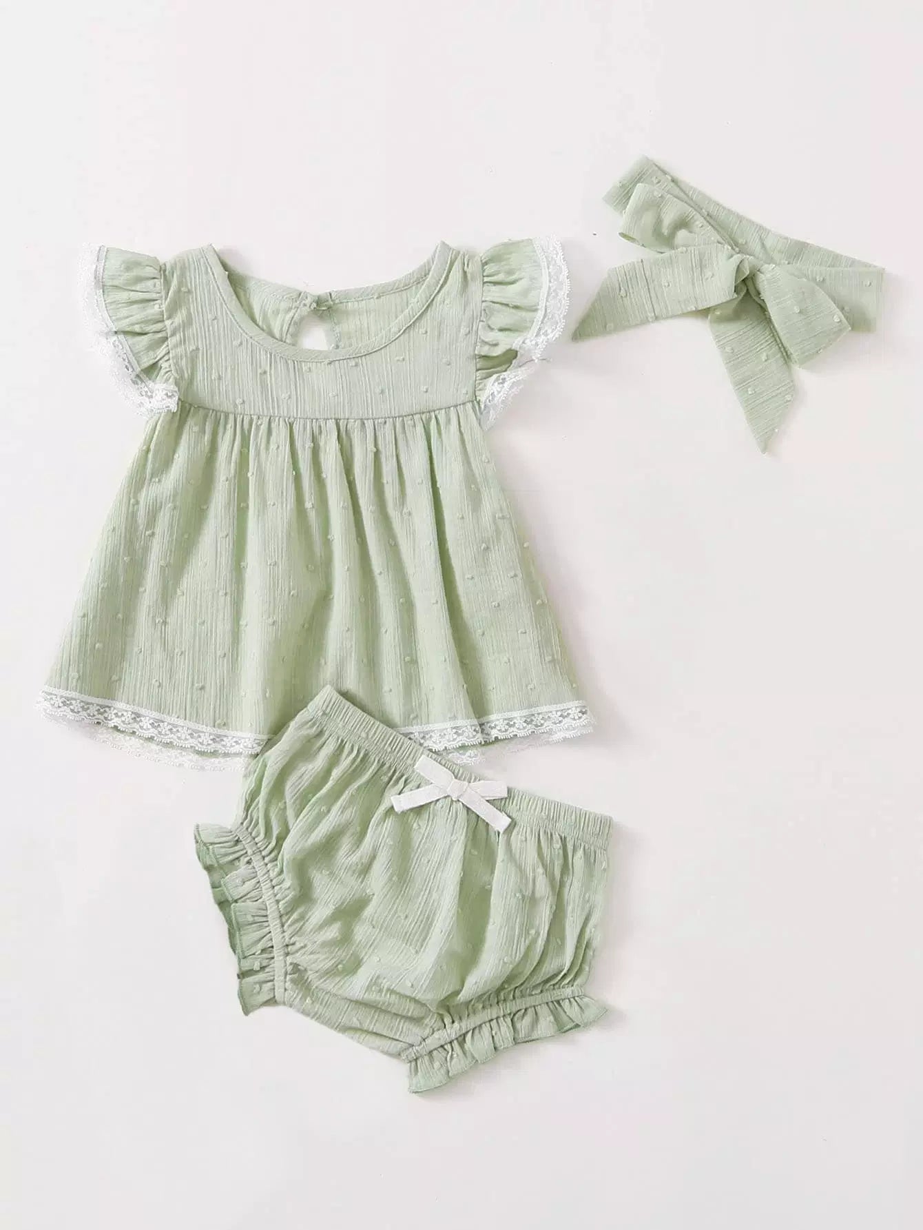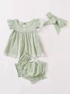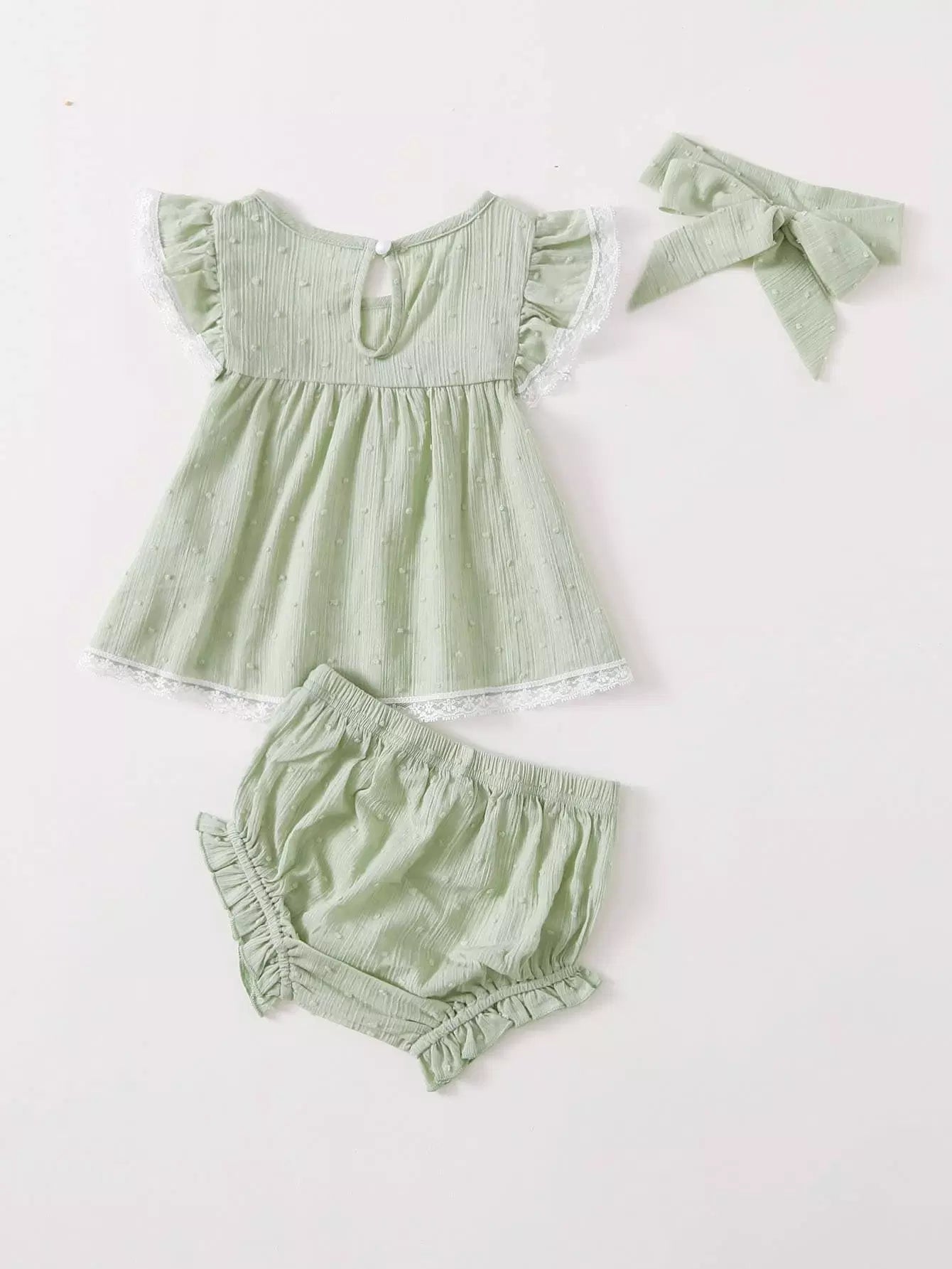 Baby Girl Lace Insert Blouse & Shorts & Headband