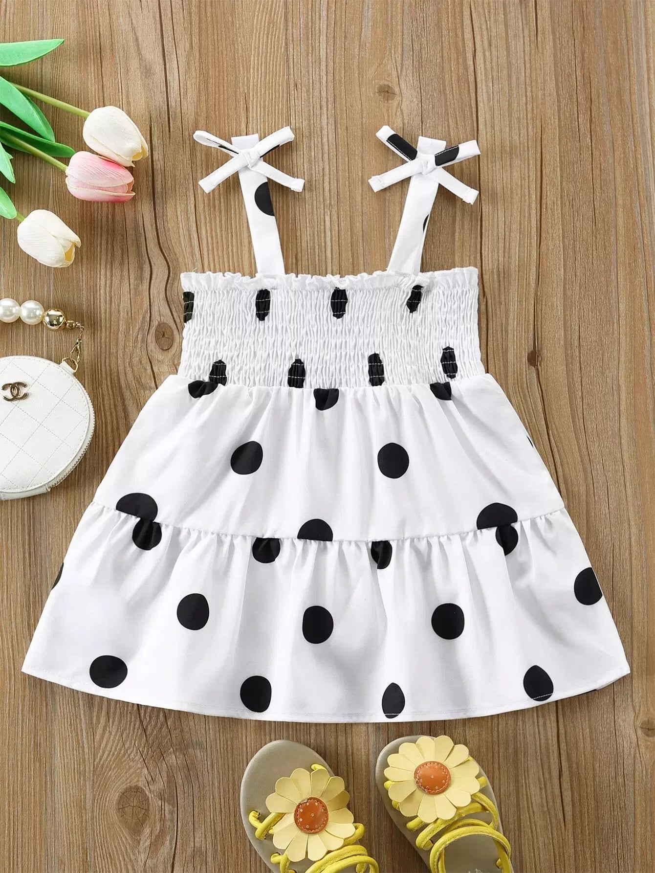 Baby Girl Polka Dot Shirred Bow Cami Dress