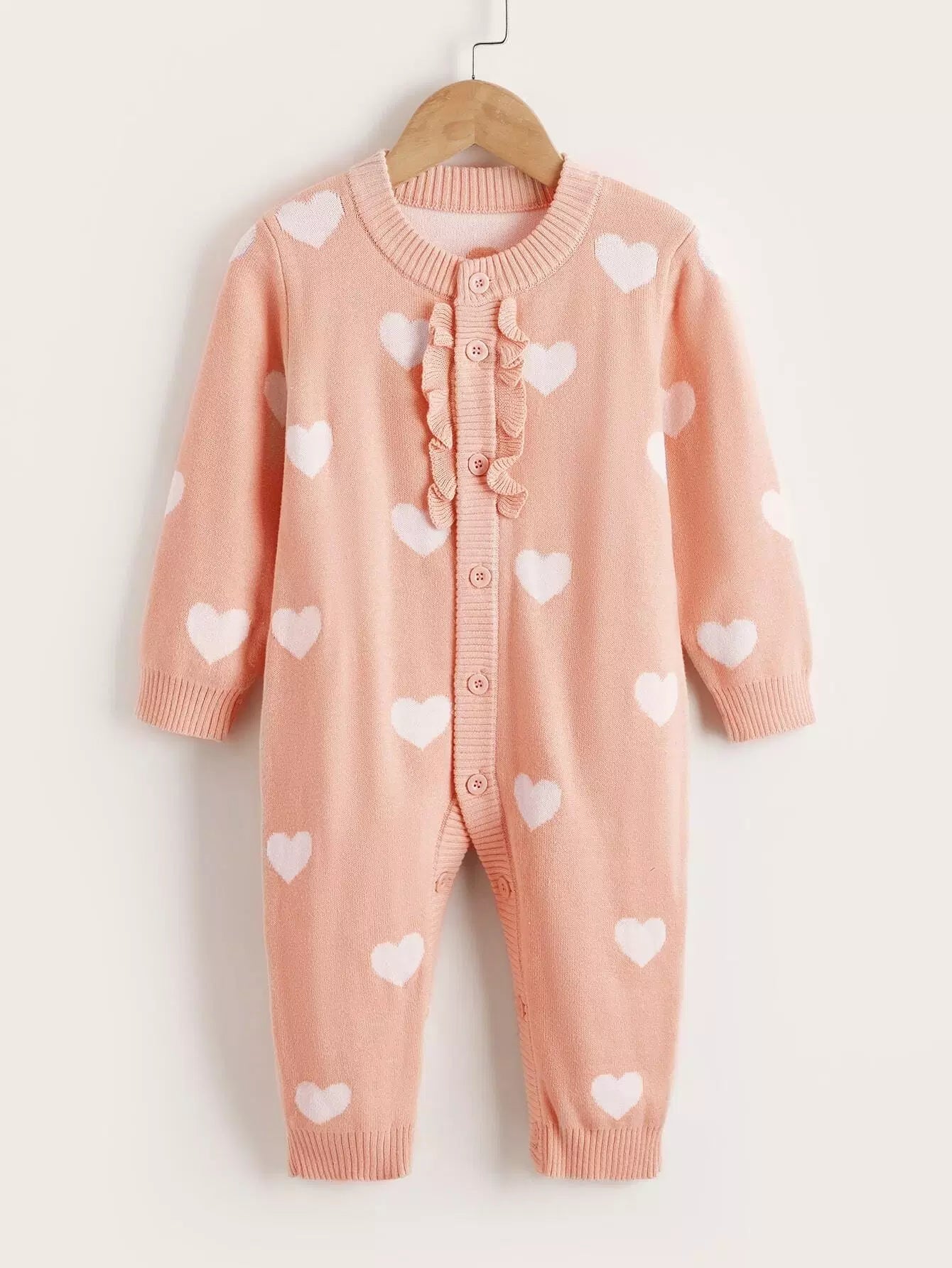 Baby Heart Pattern Button Front Knit Jumpsuit