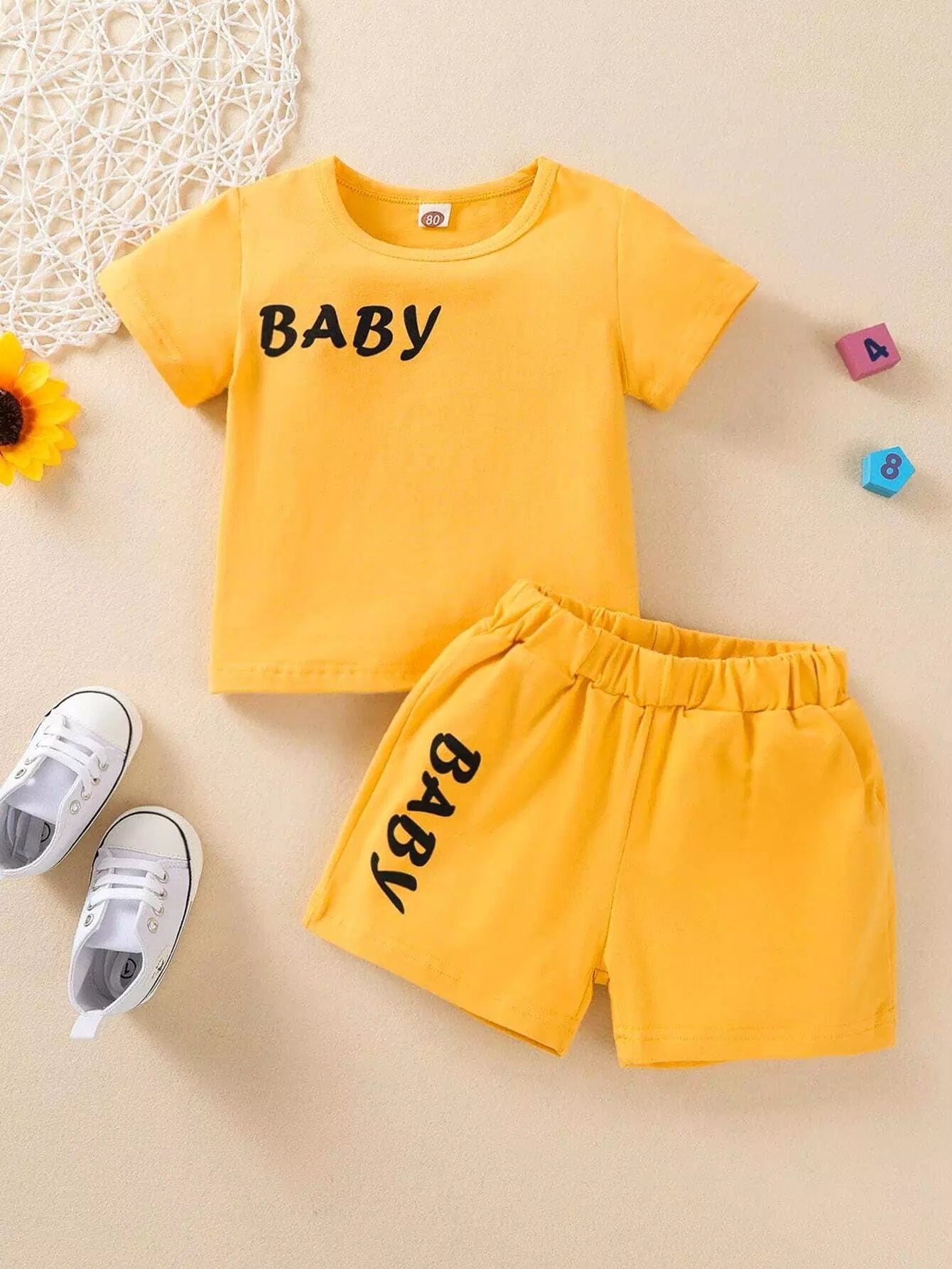 Baby Unisex Letter Graphic Tee & Shorts