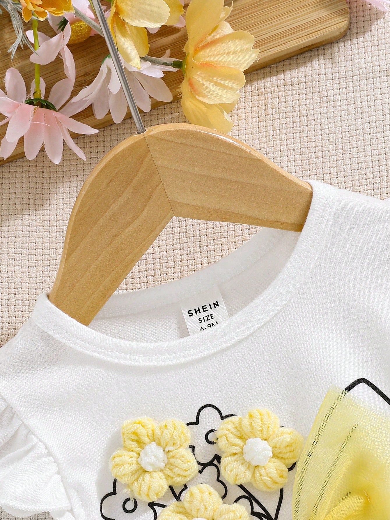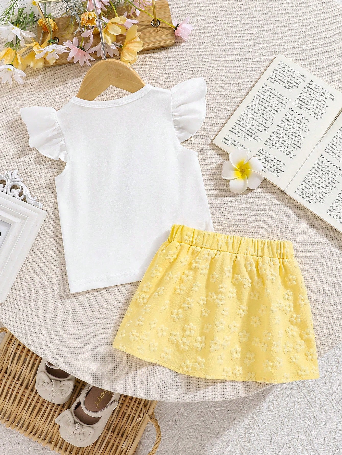 SHEIN Playful Pals Baby Girls' Butterfly Print Top And Skirt Set