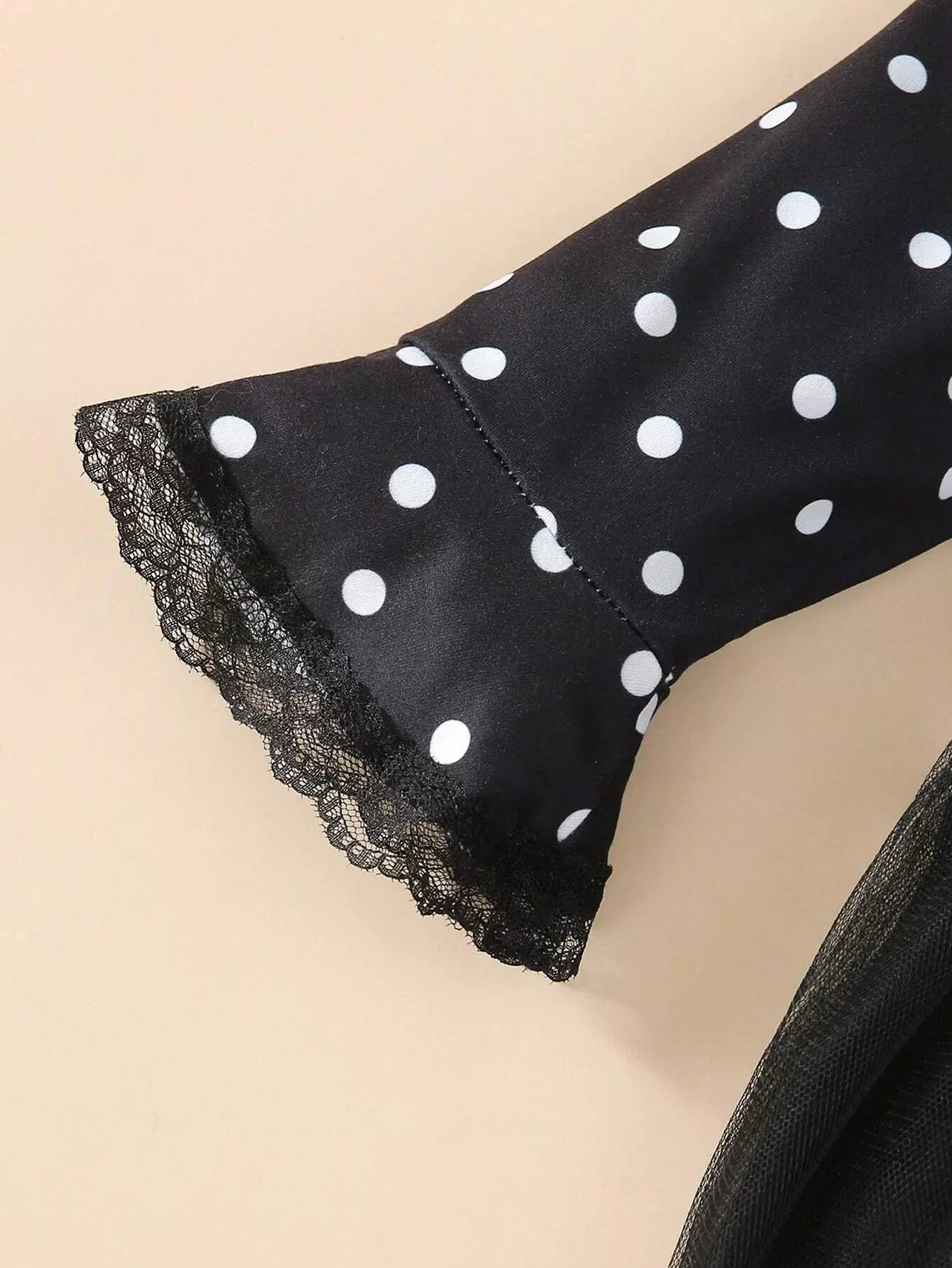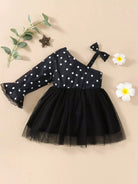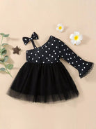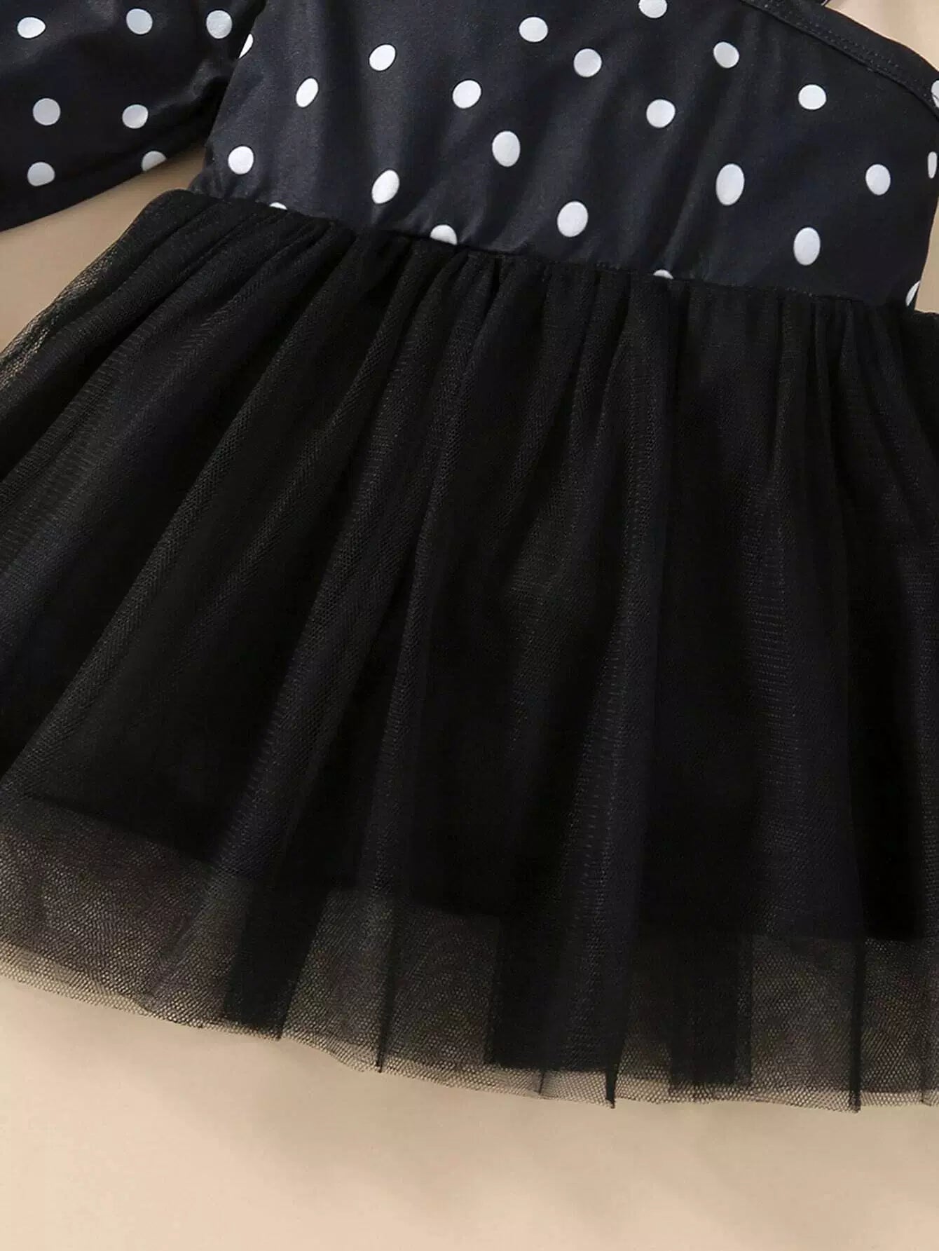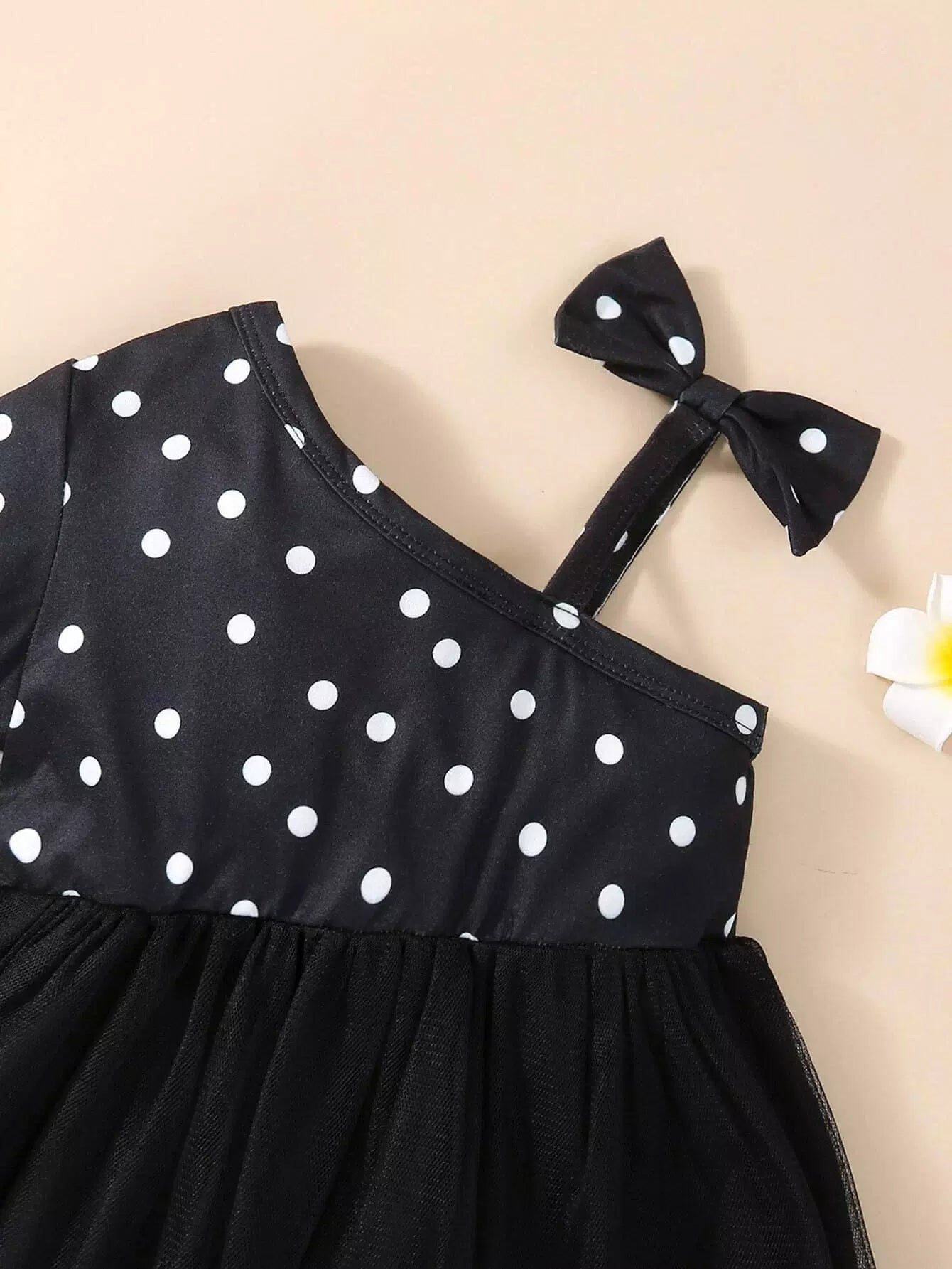 Baby Asymmetrical Neck Bow Detail Polka Dot Print Flounce Sleeve Dress
