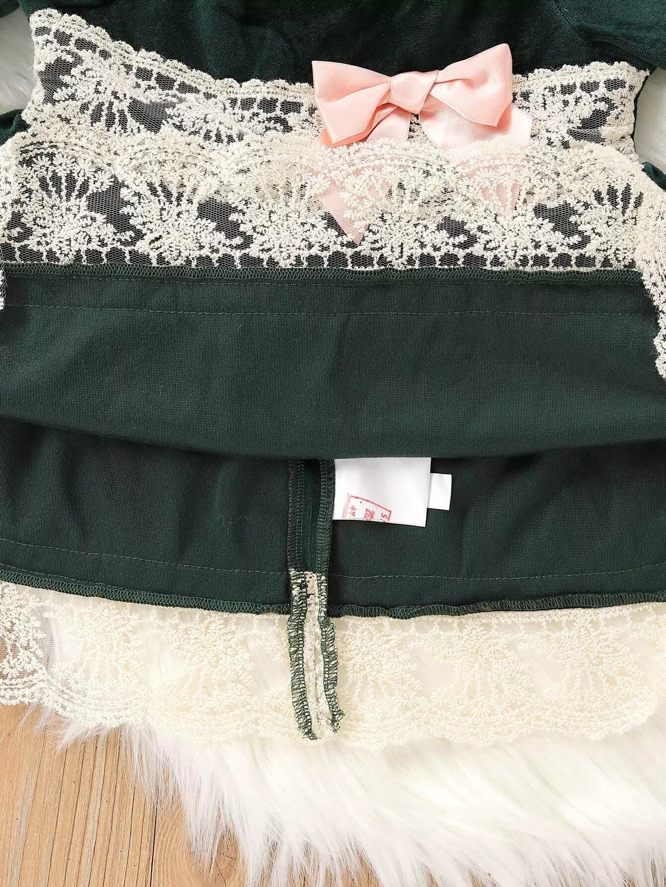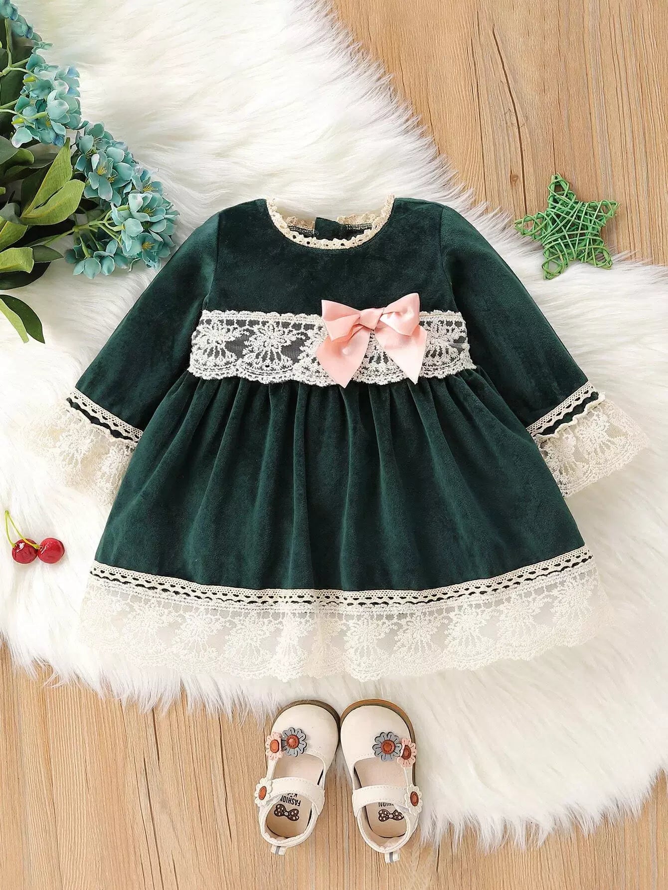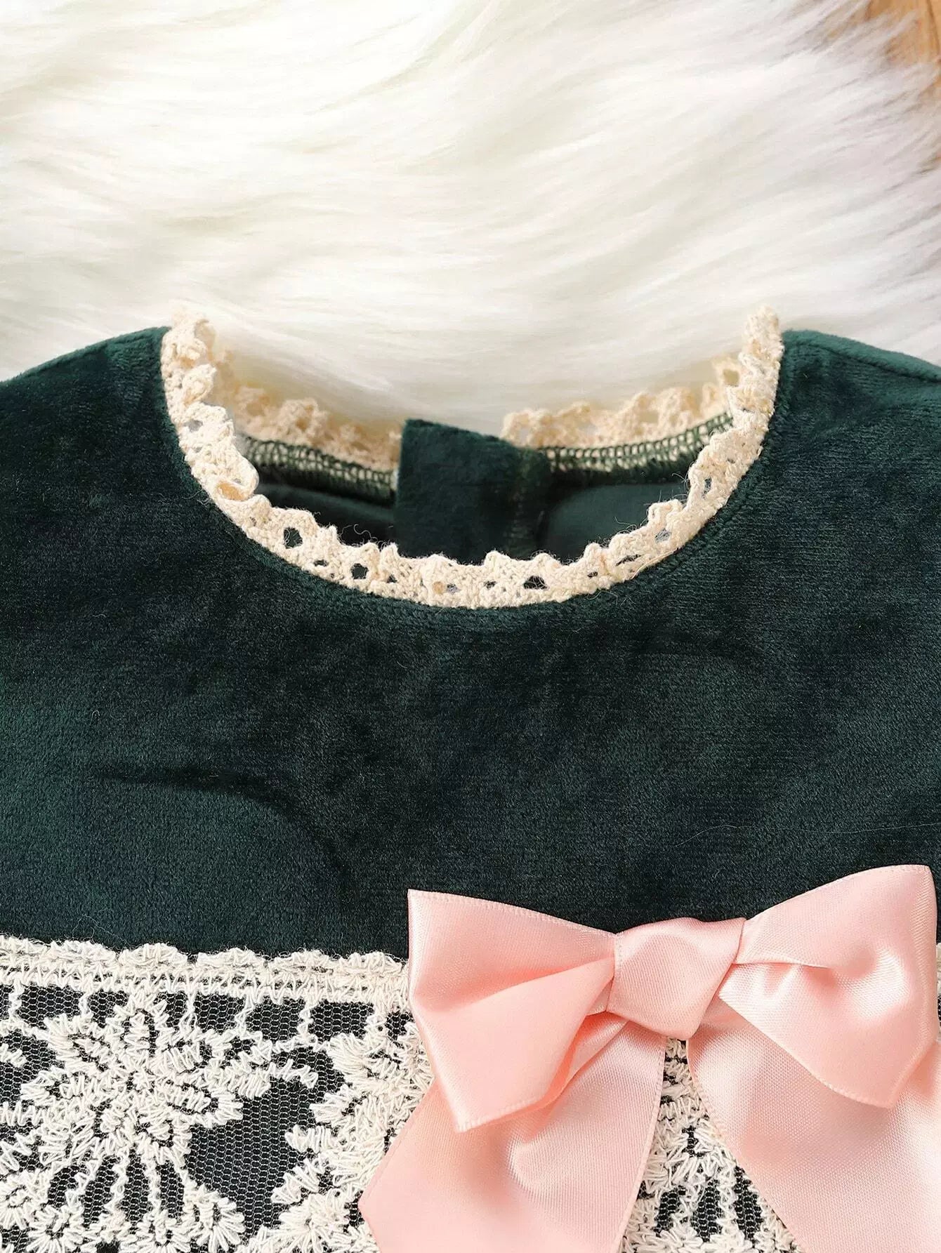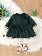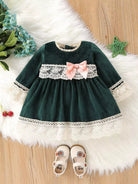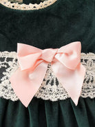 Baby Contrast Embroidery Mesh Bow Front Velvet Dress