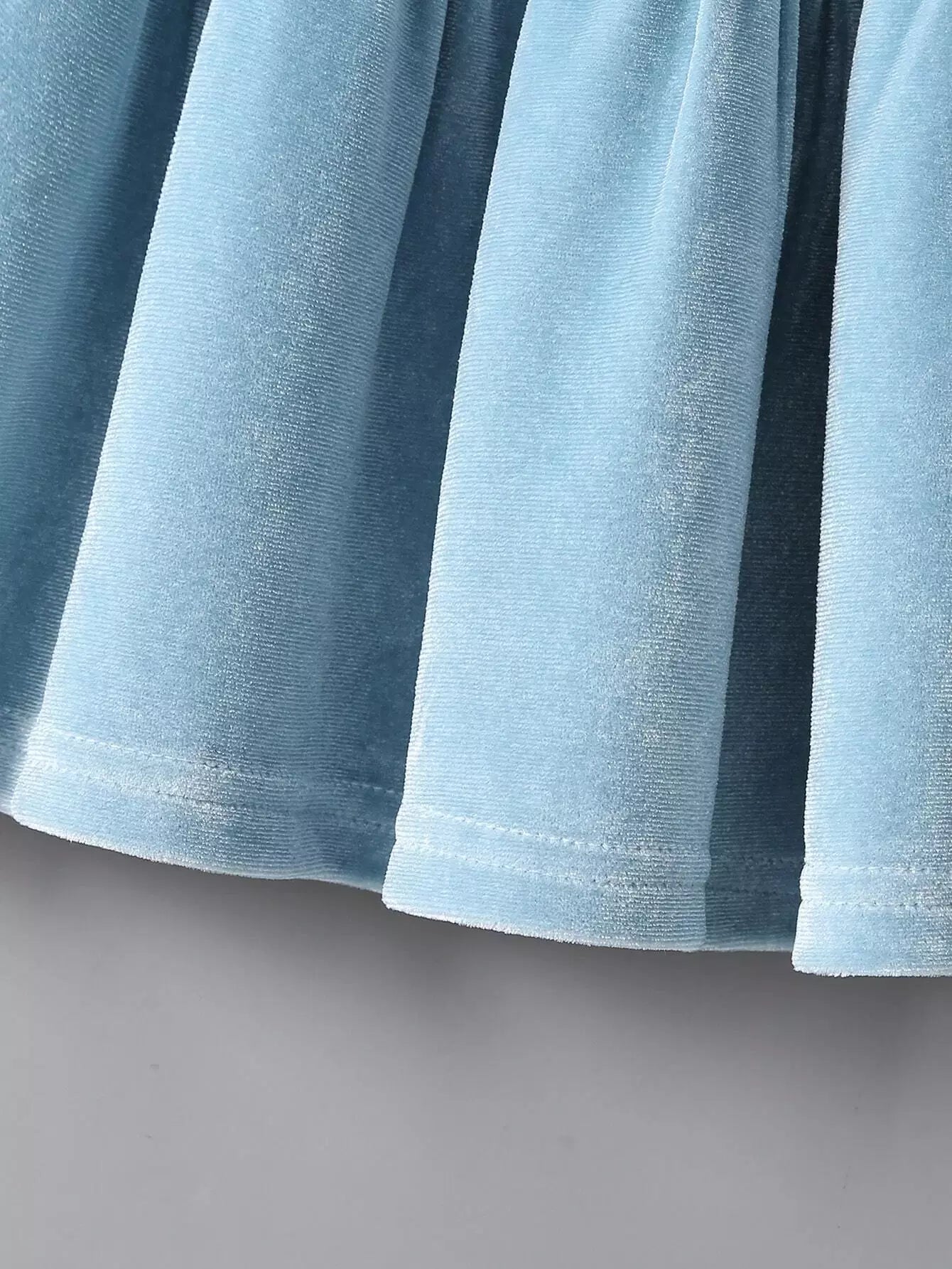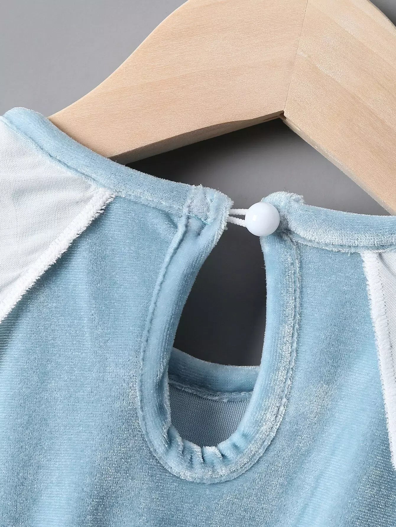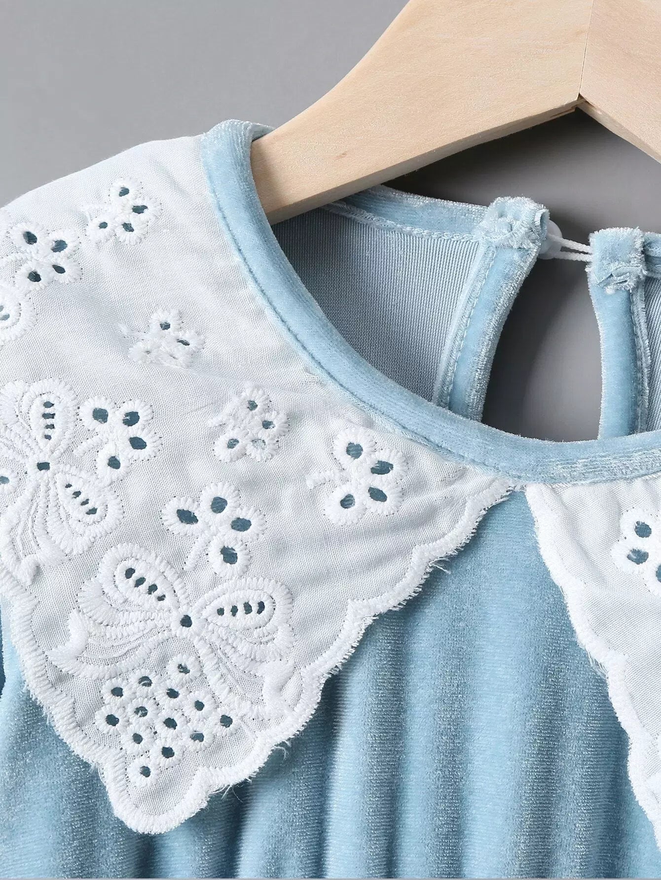 Baby Contrast Eyelet Embroidered Ruffle Hem Keyhole Back Velvet Dress