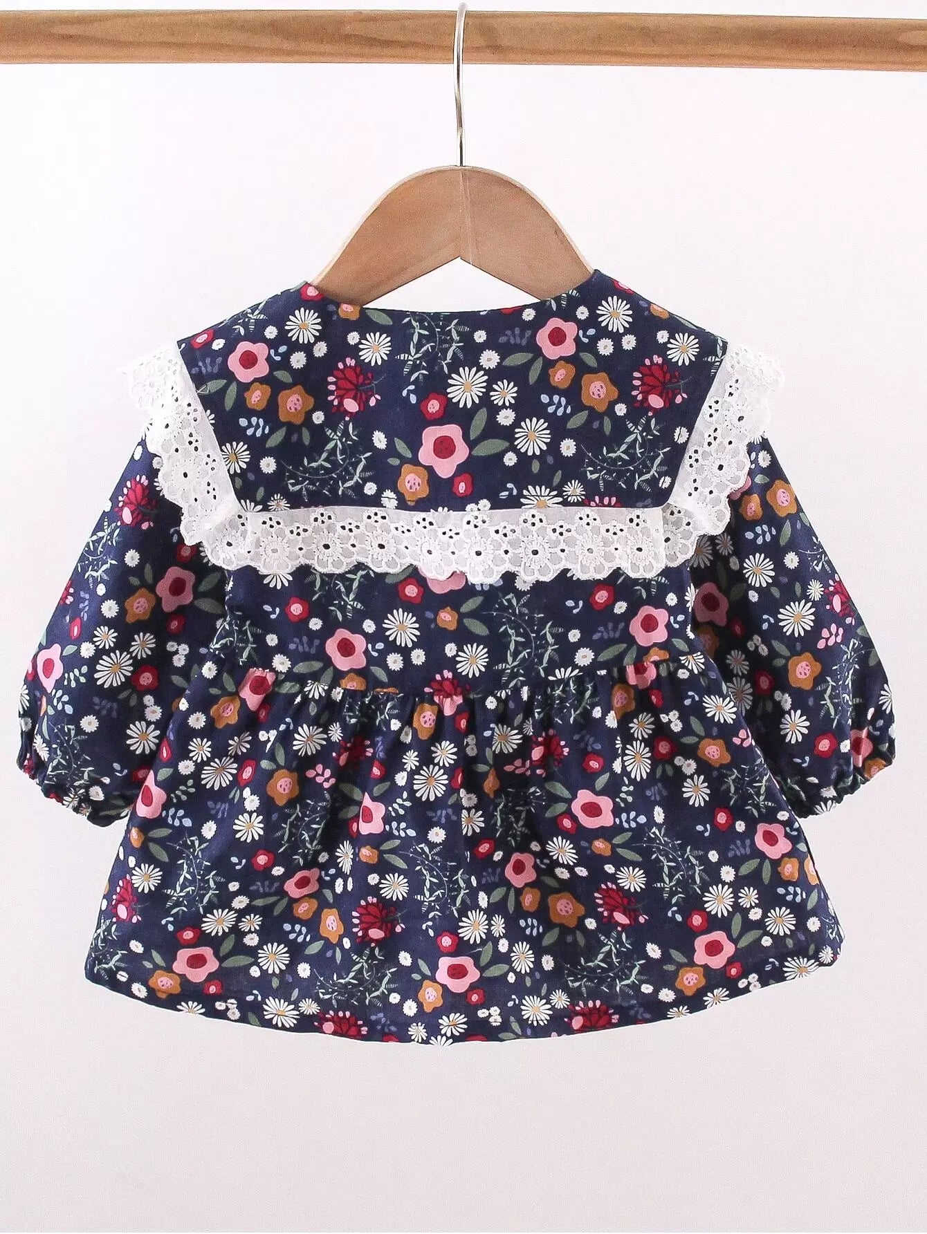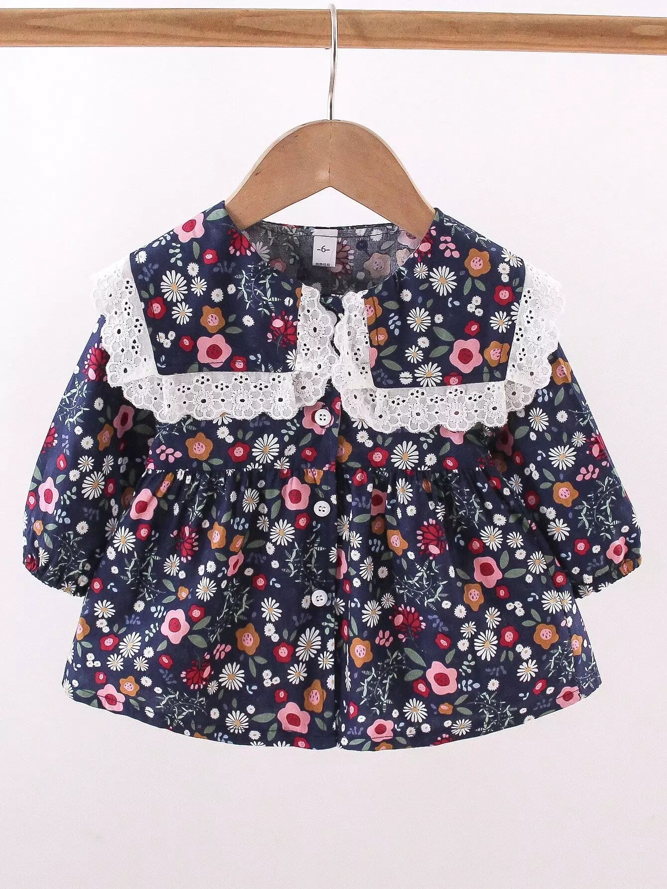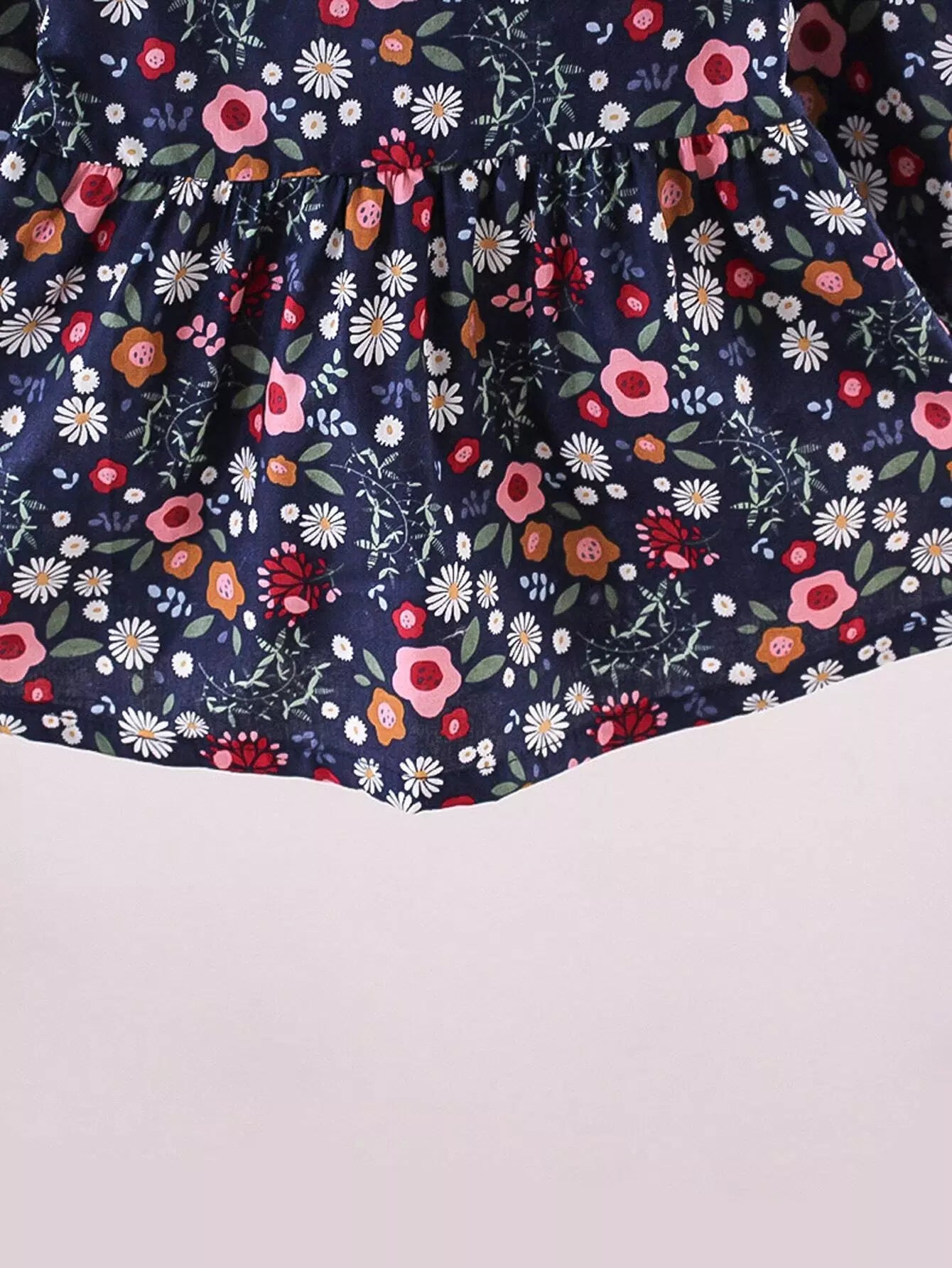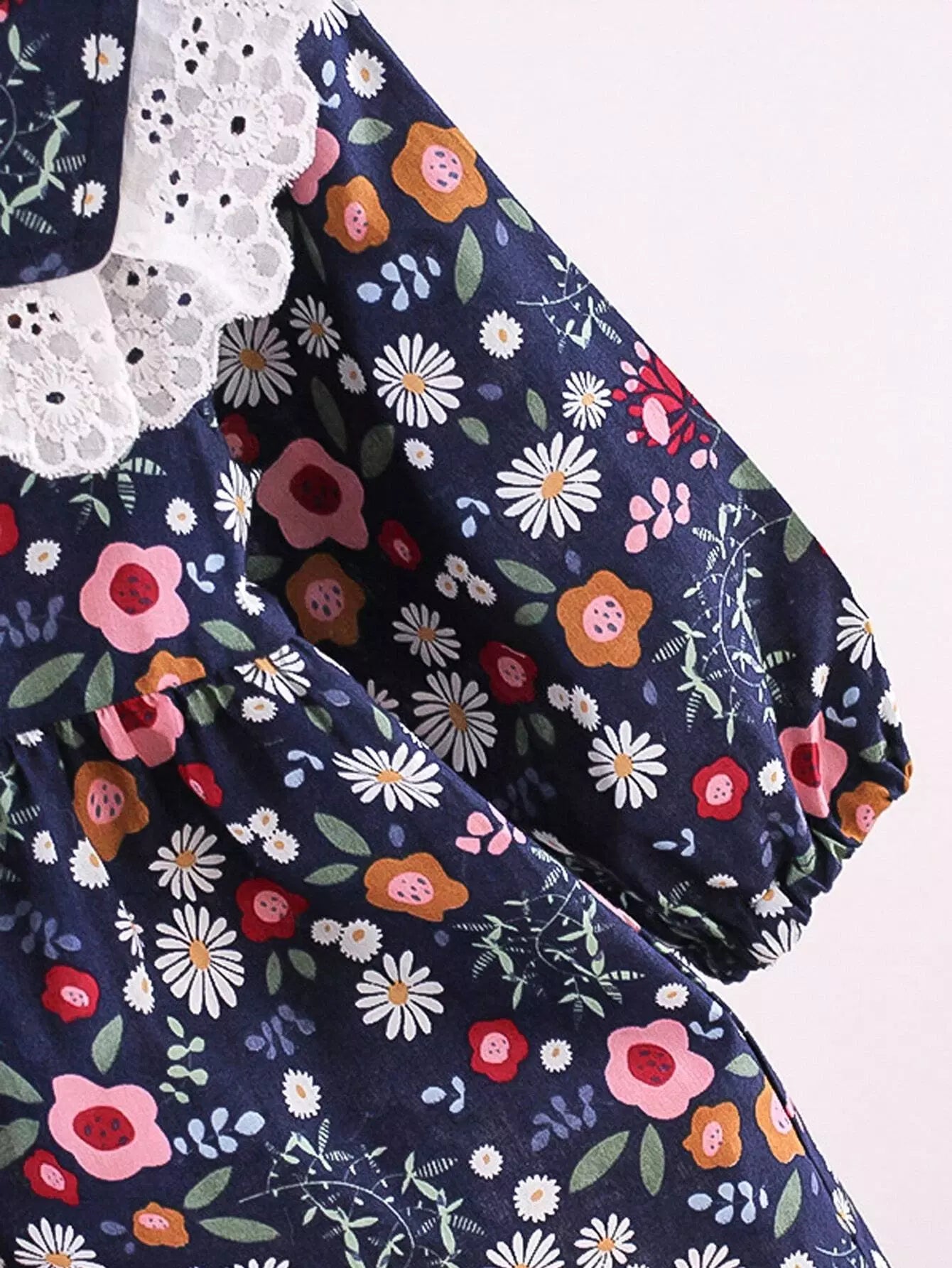 Baby Floral Print Eyelet Embroidery Statement Collar Dress