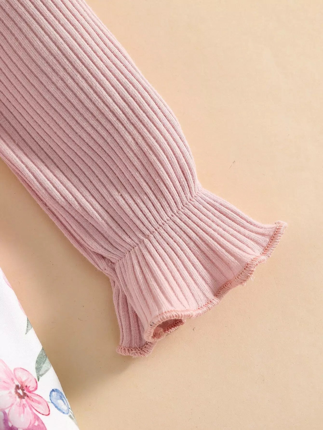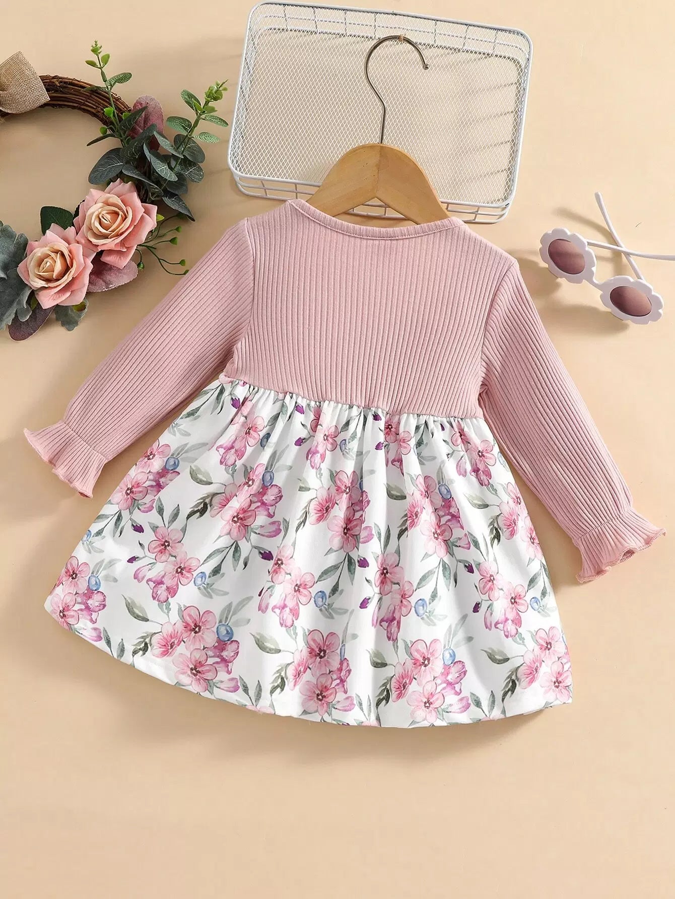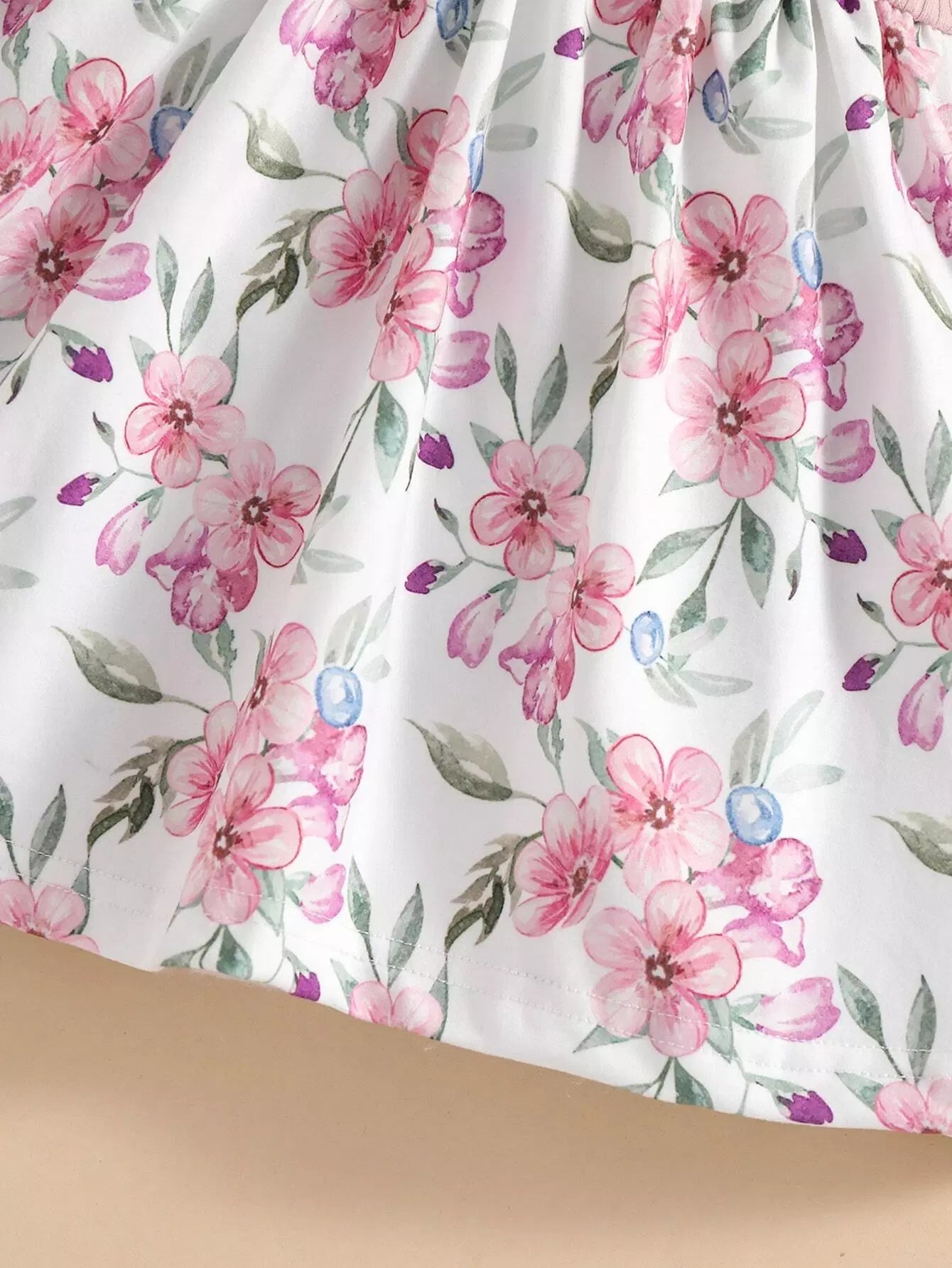 Baby Floral Print Guipure Lace Panel Flounce Sleeve Dress