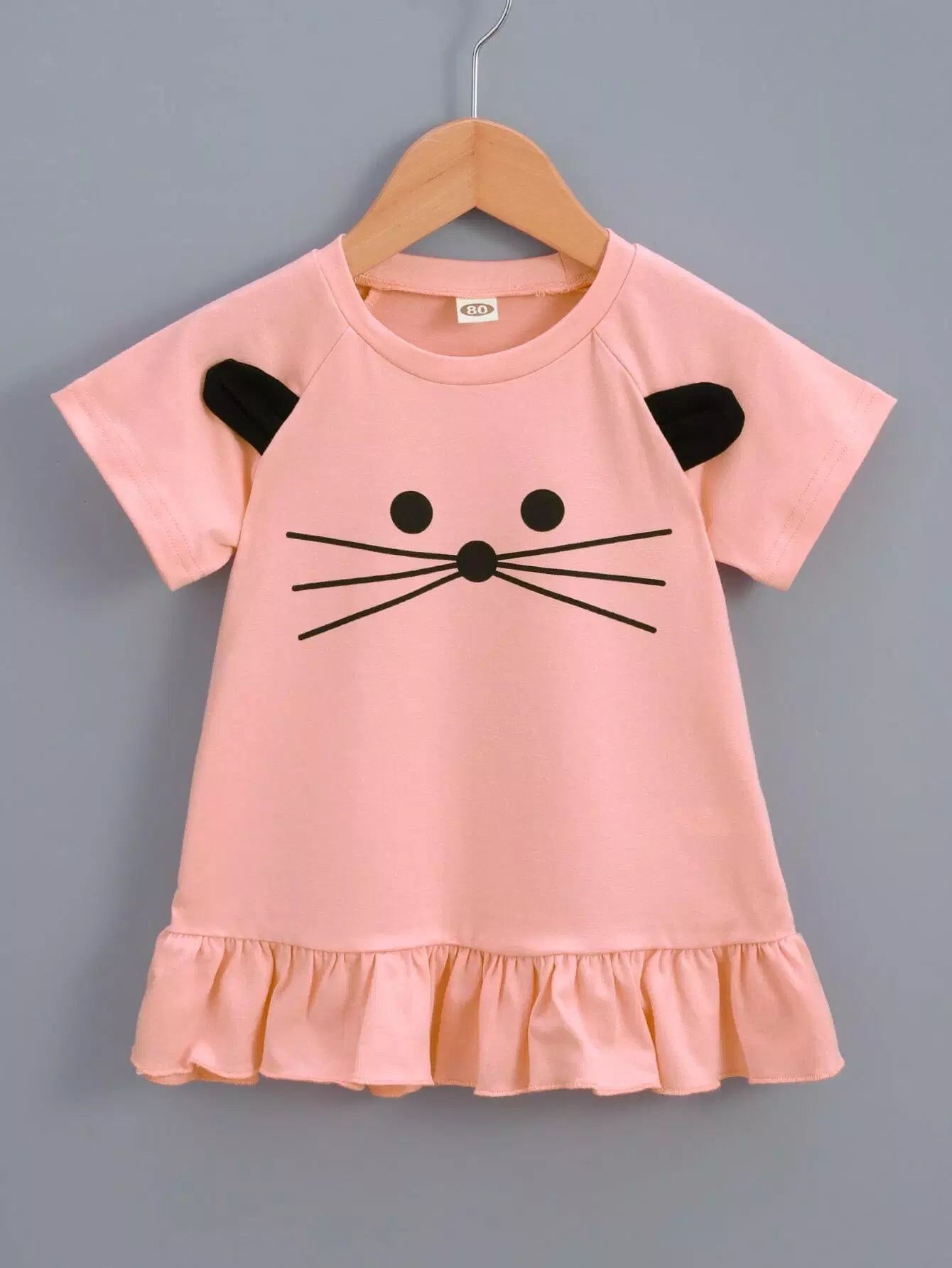 Baby Girl Cartoon Graphic 3D Ear Design Smock Dress