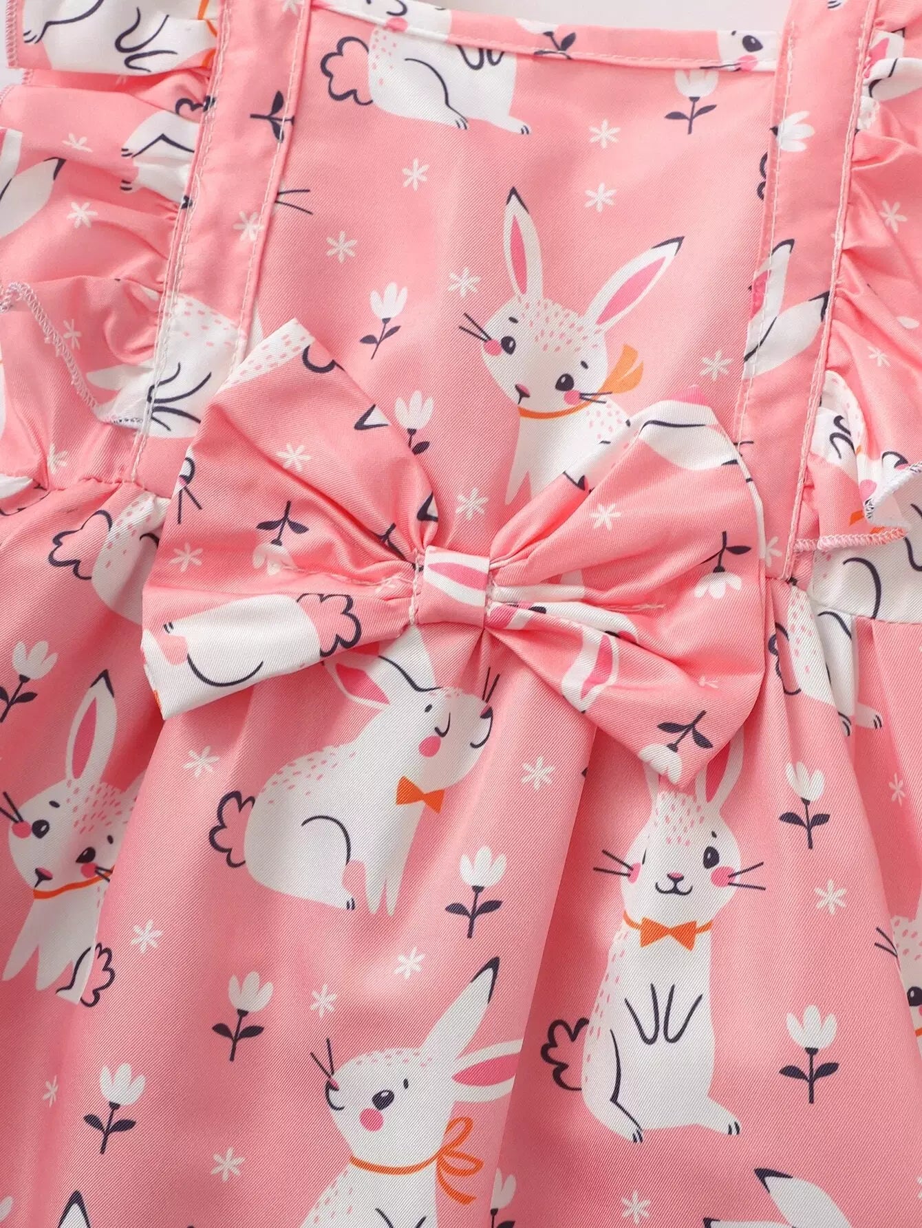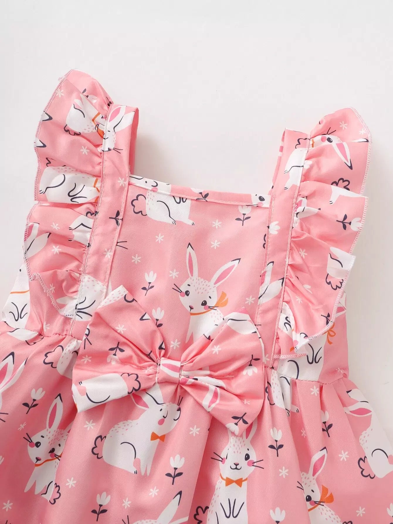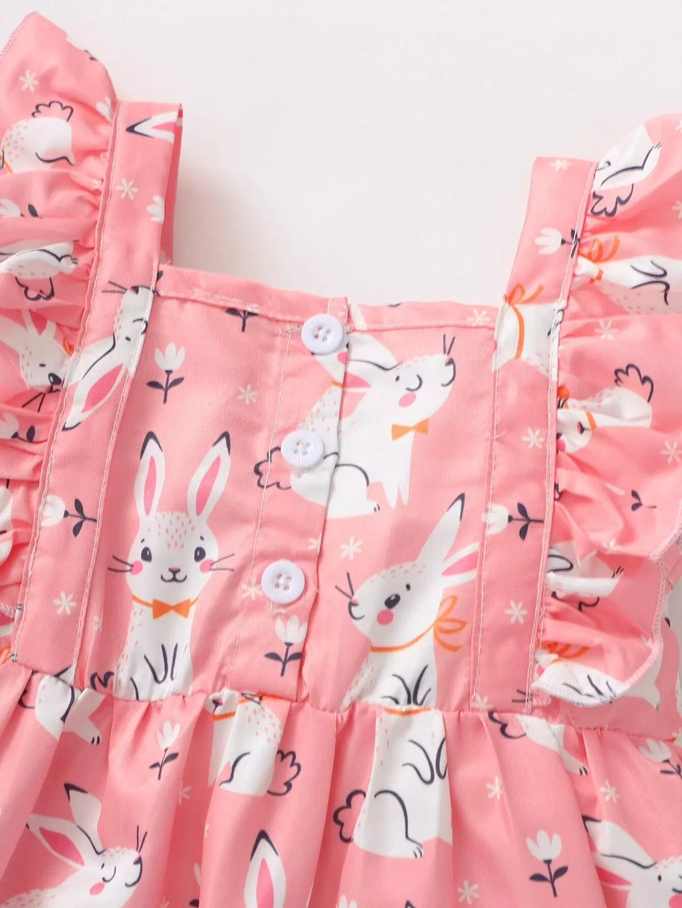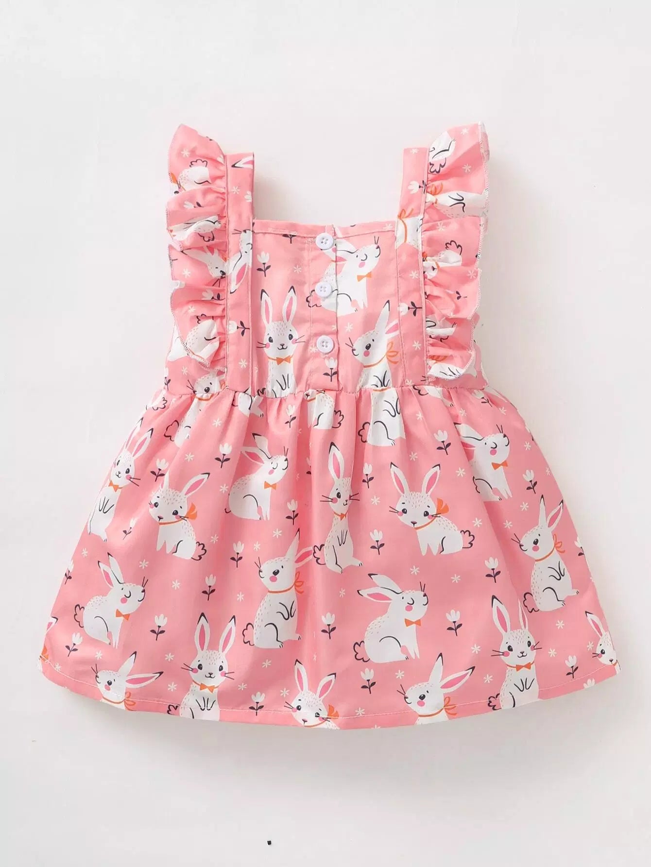 Baby Girl Cartoon Rabbit Ruffle Smock Dress