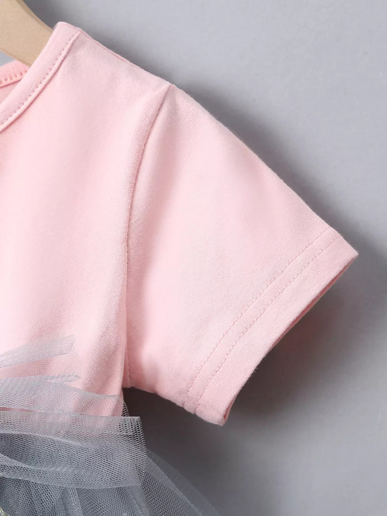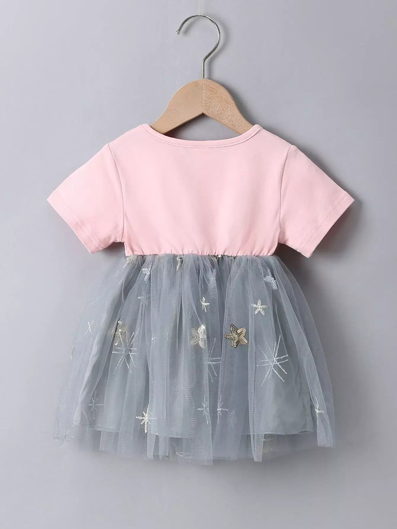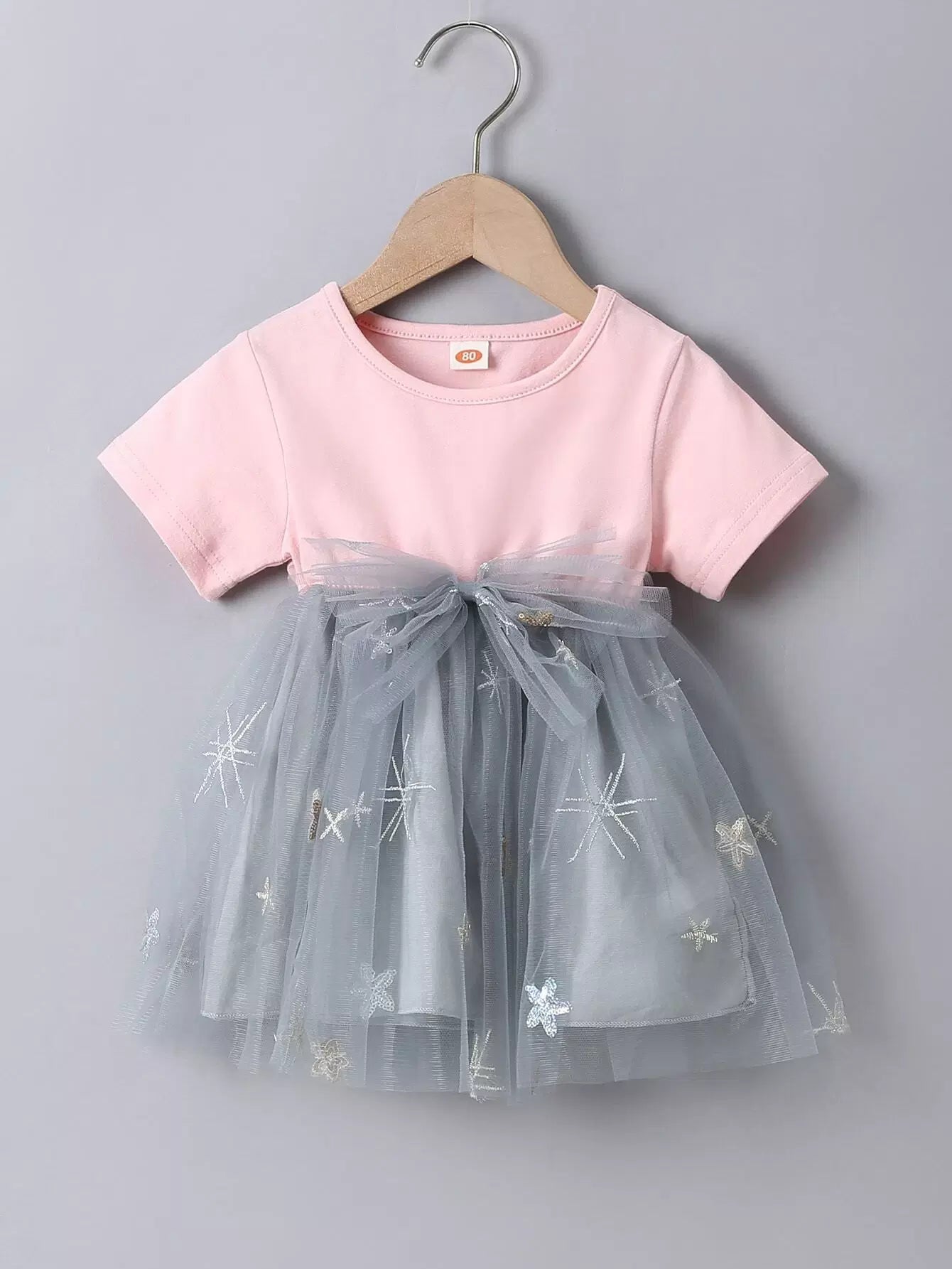 Baby Girl Contrast Sequin Bow Spliced Dress