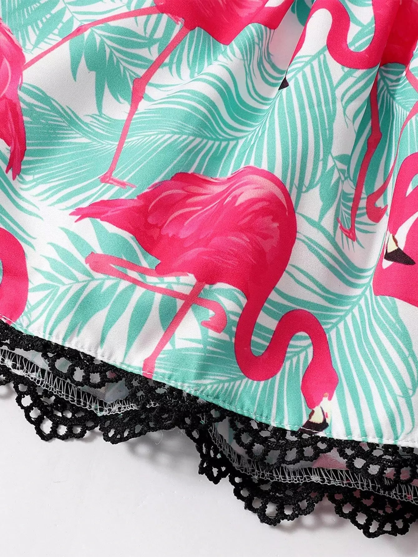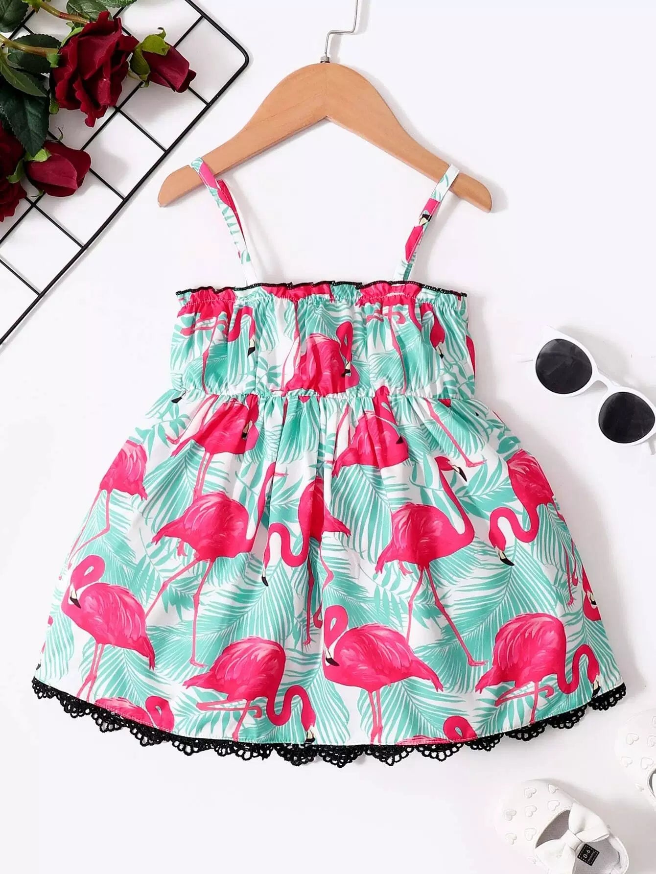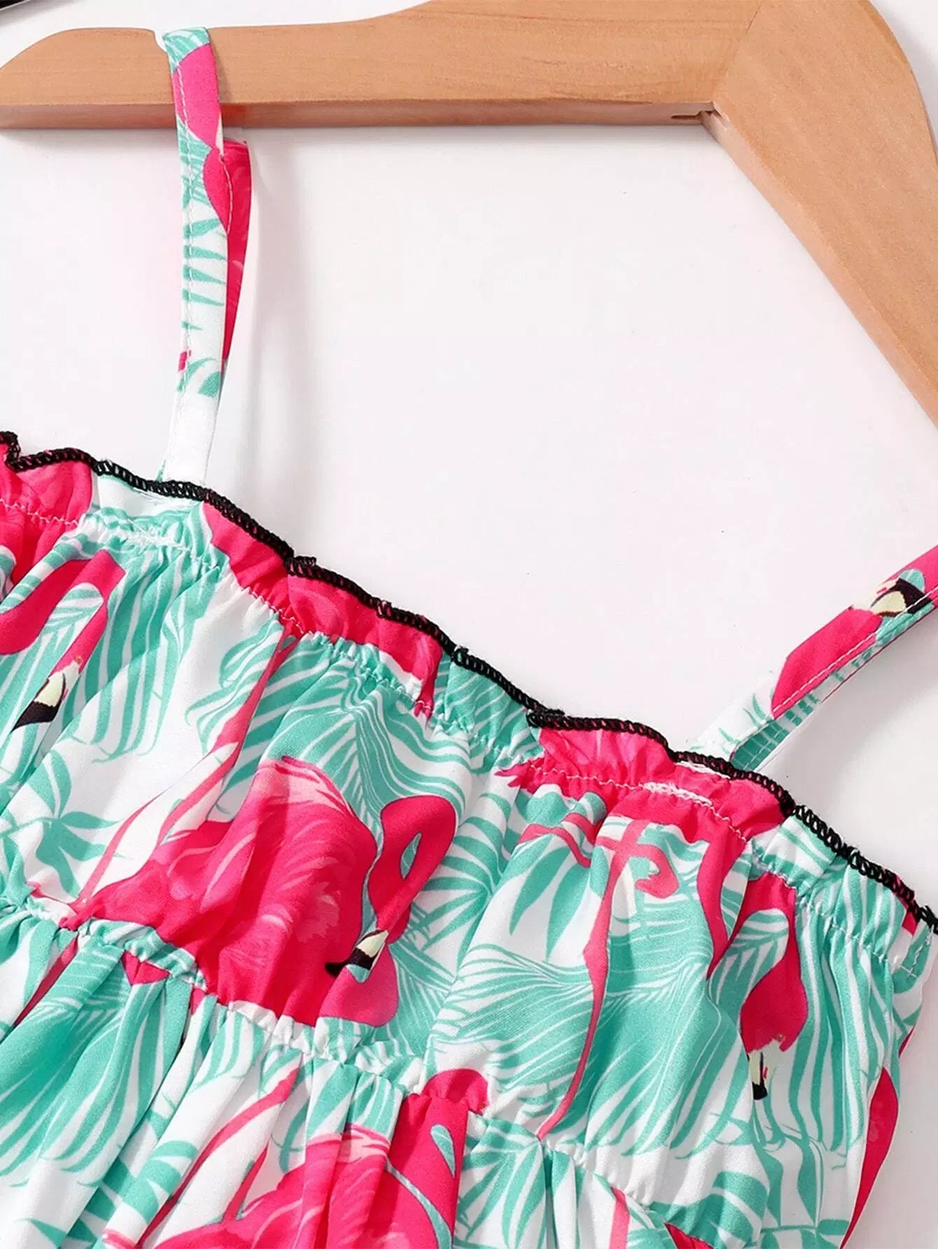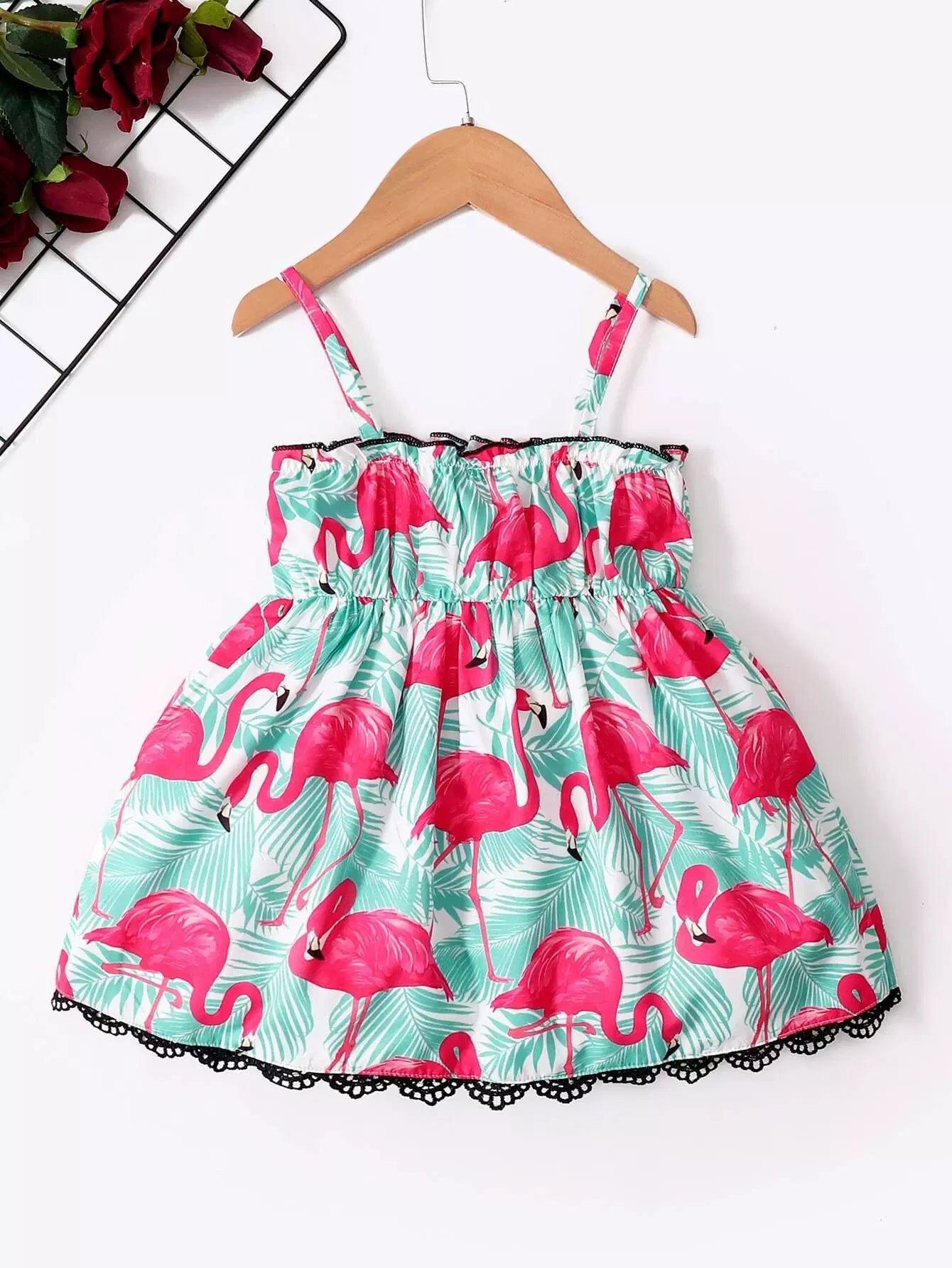 Baby Girl Flamingo And Tropical Print Cami Dress