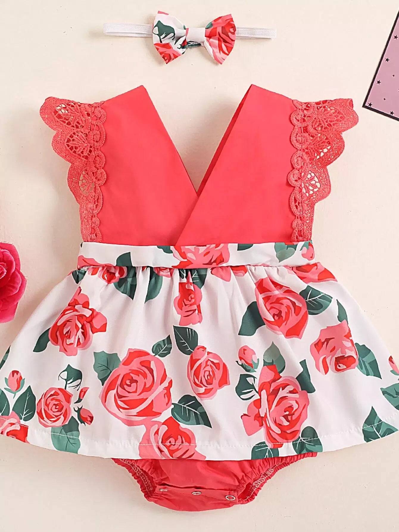 Baby Girl Floral Print Combo Bodysuit Dress & Headband