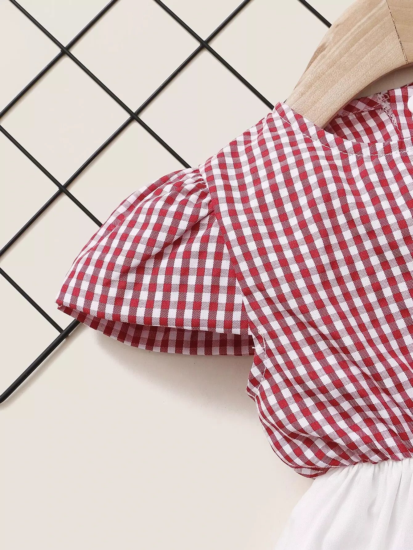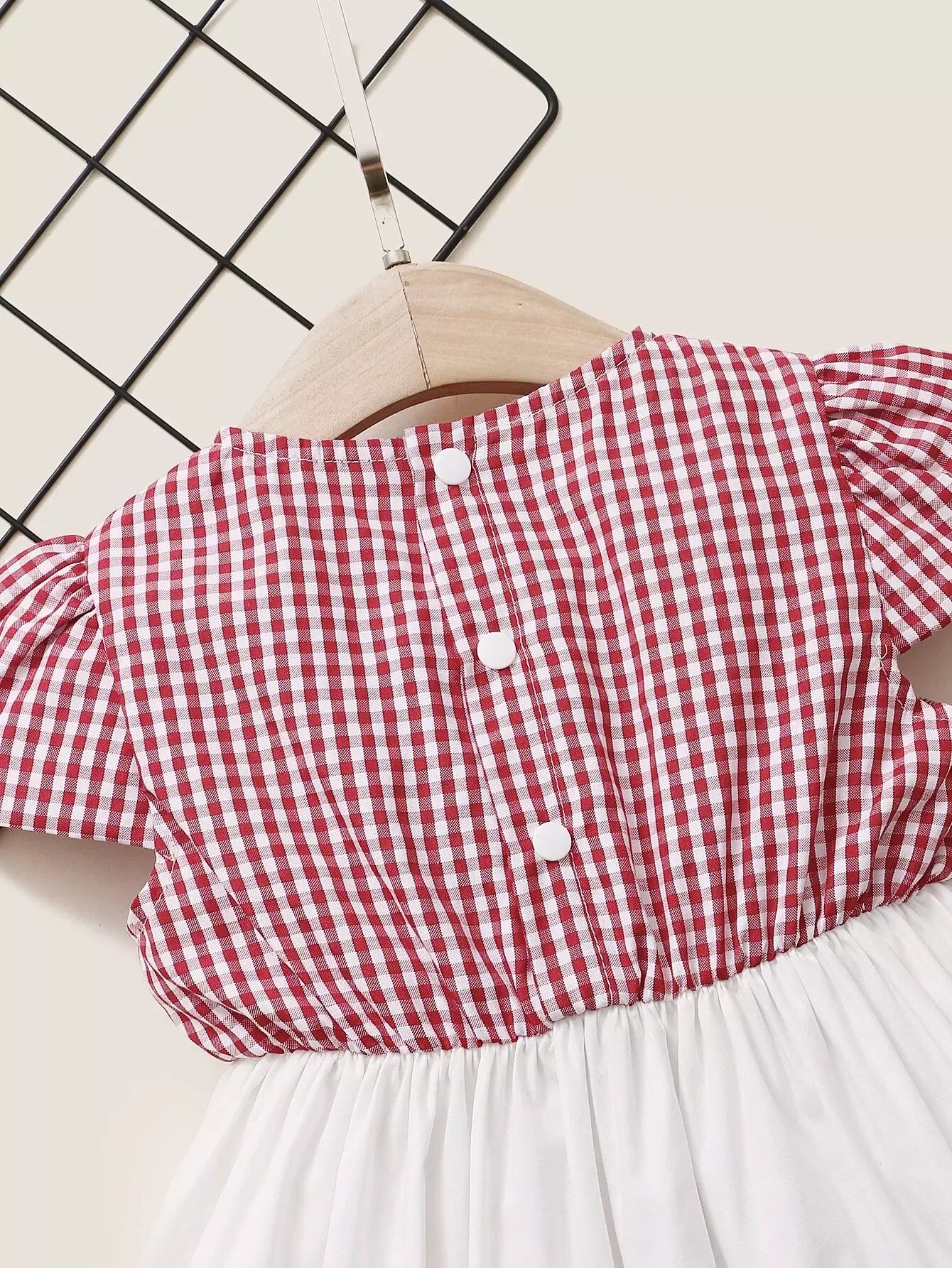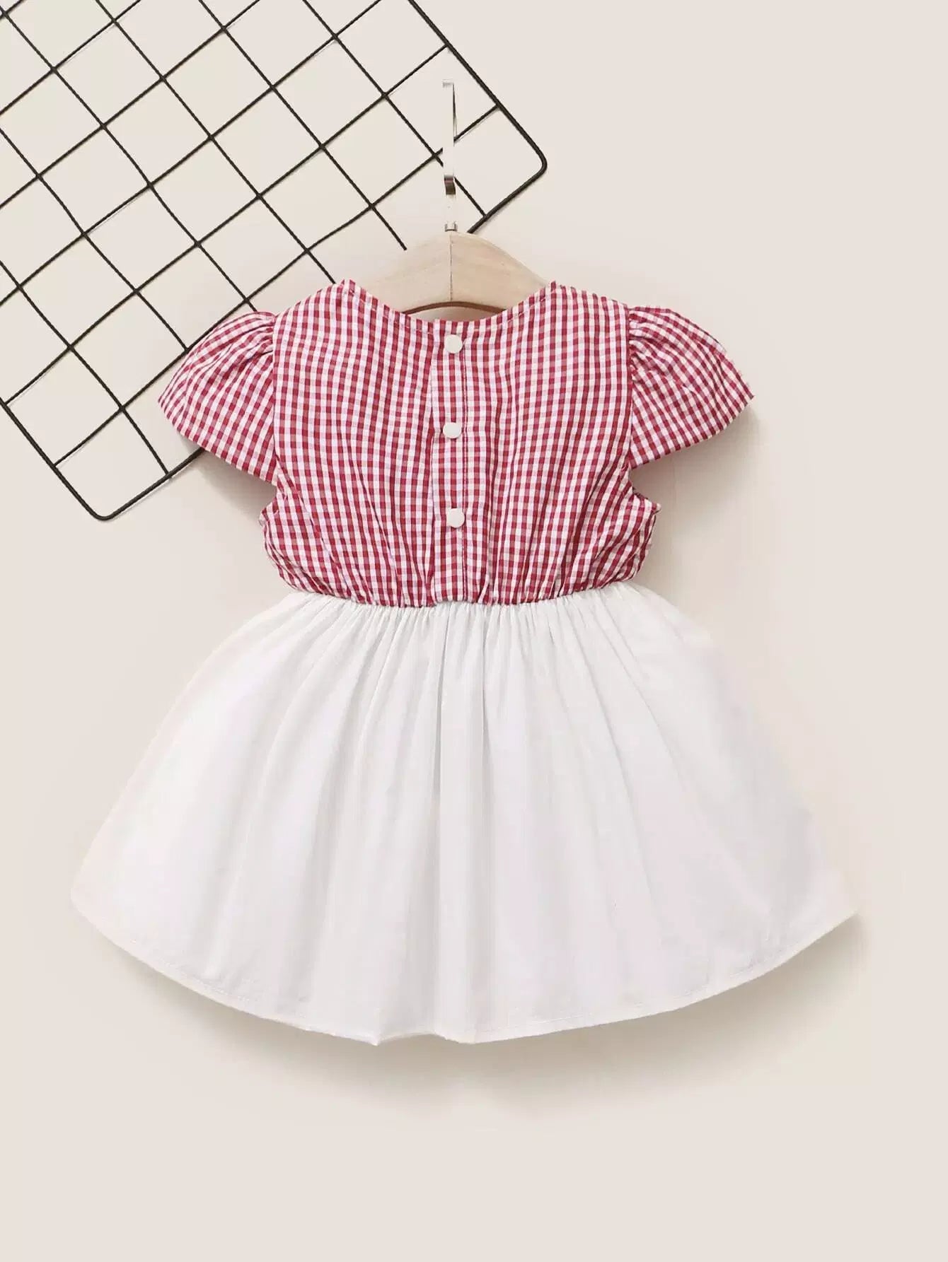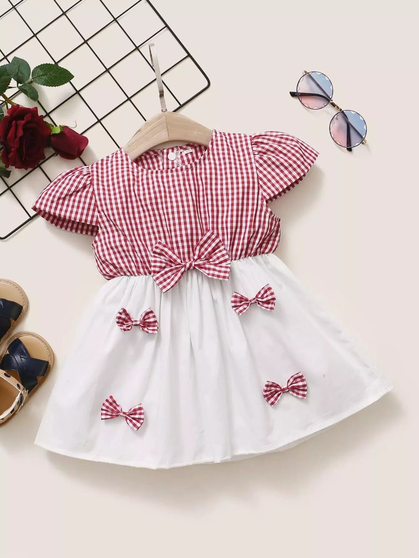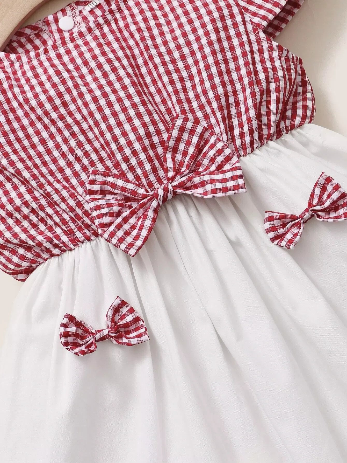 Baby Girl Gingham Print Bow Front Button Back A-line Dress