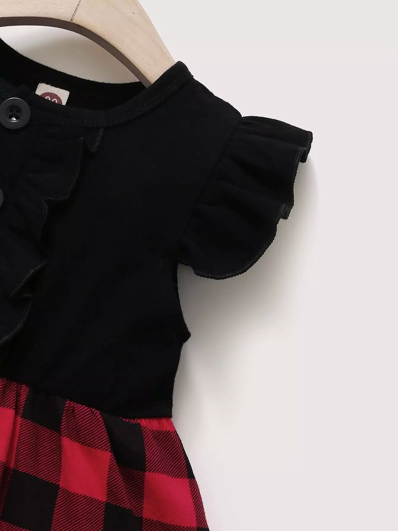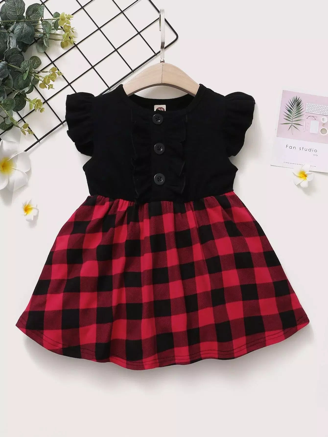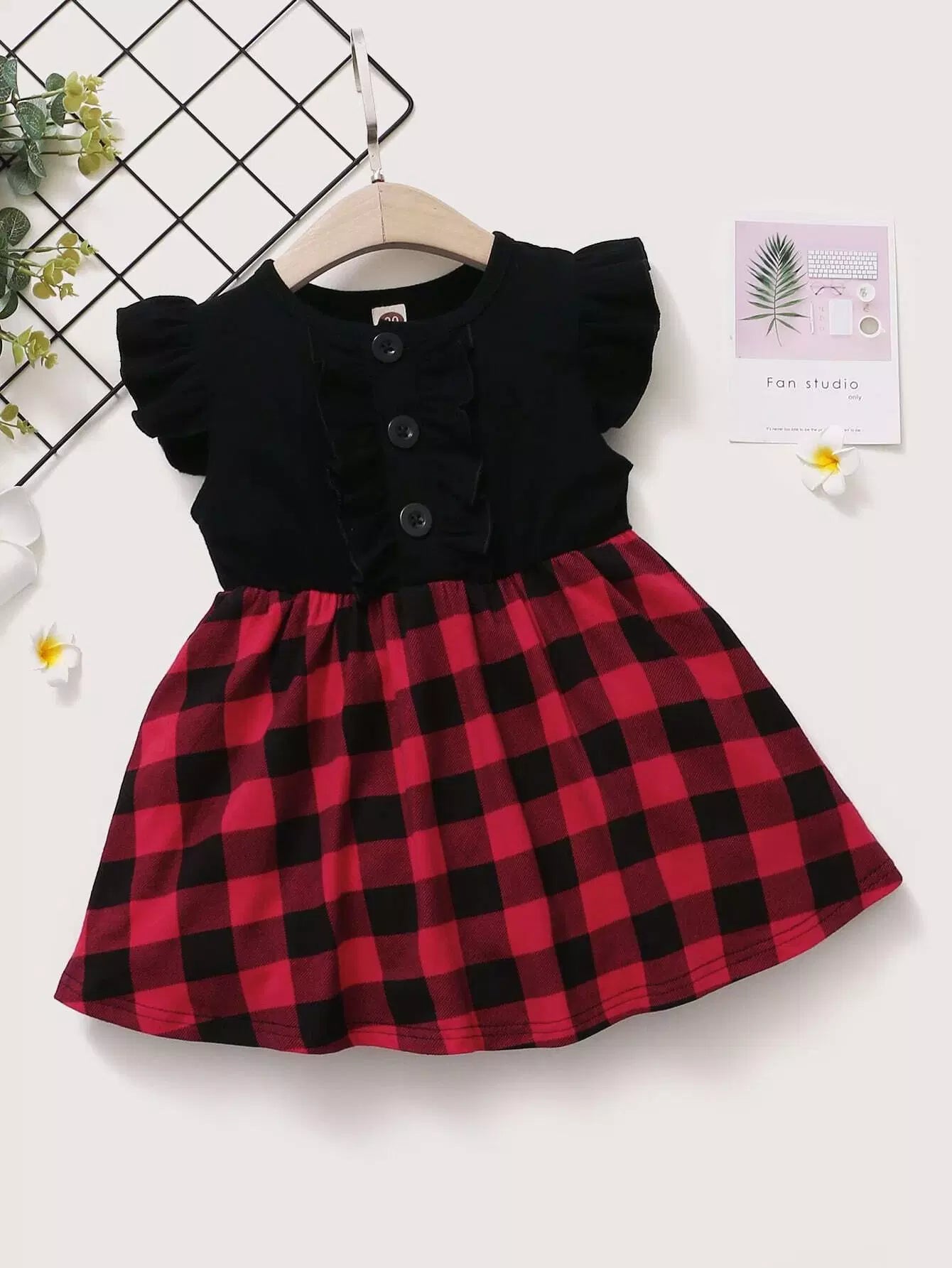 Baby Girl Gingham Ruffle Trimed Smock Dress