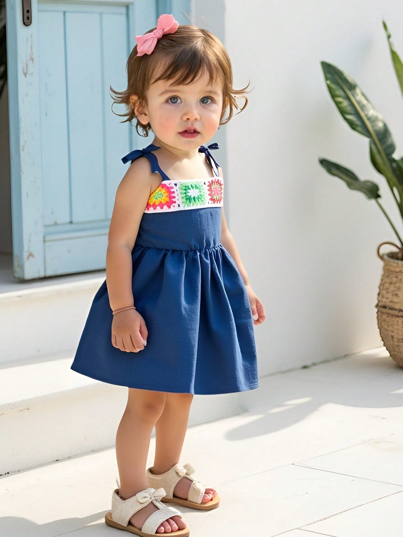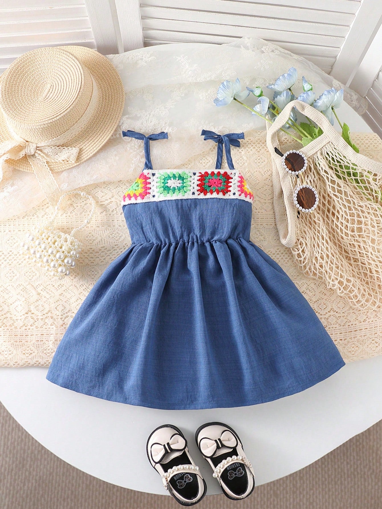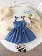 Baby Girl Loose Floral Print Knot Shoulder Strap Summer Dress