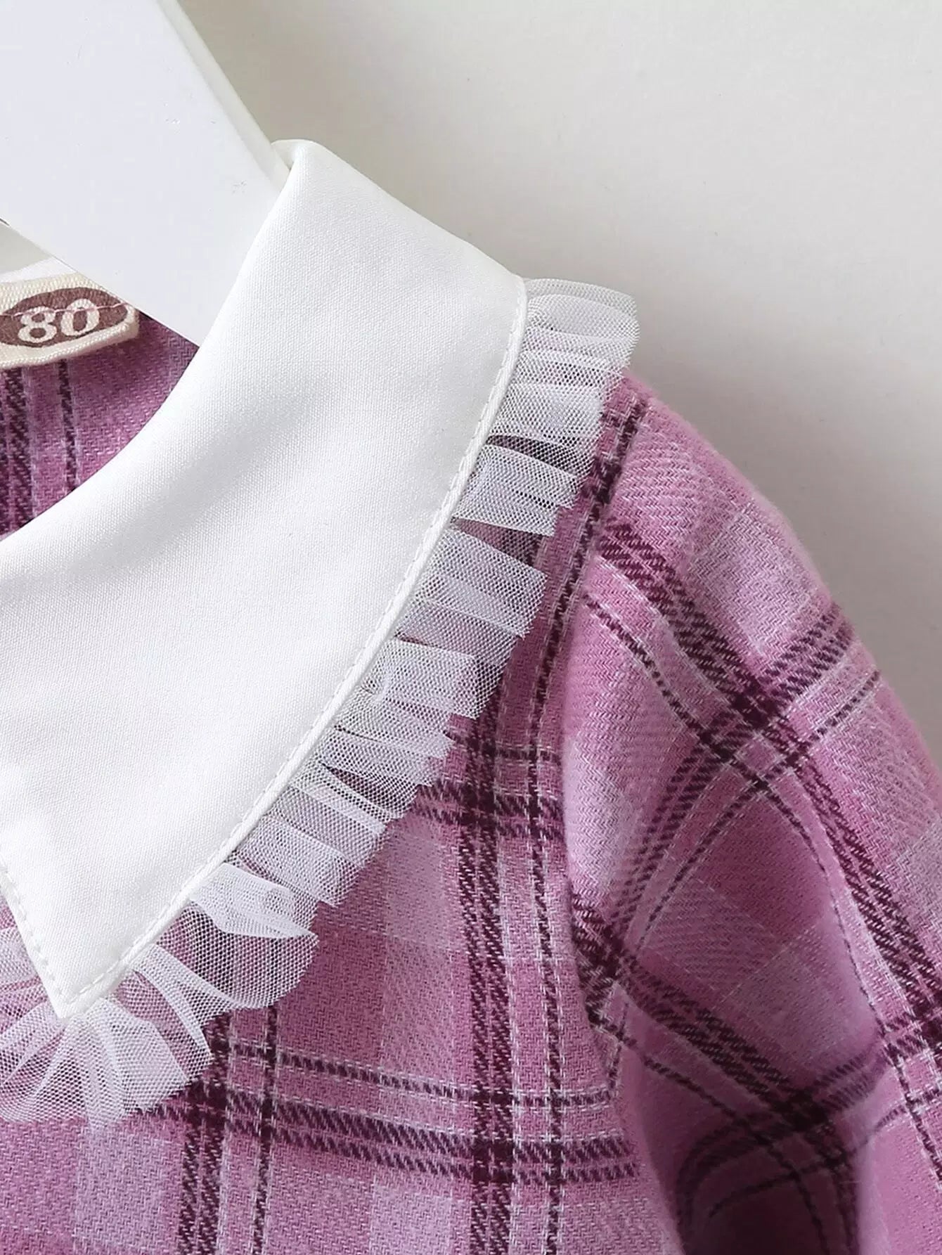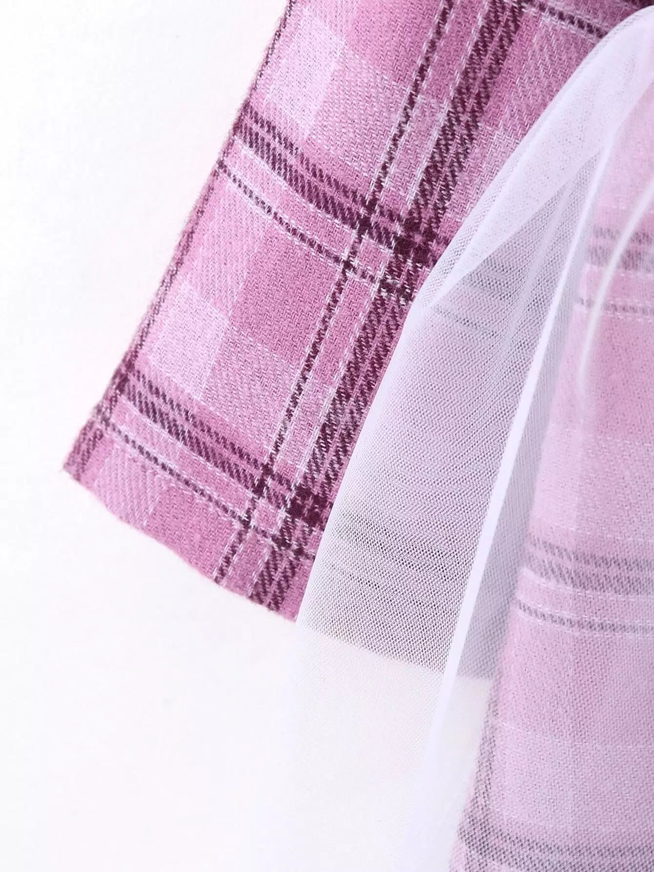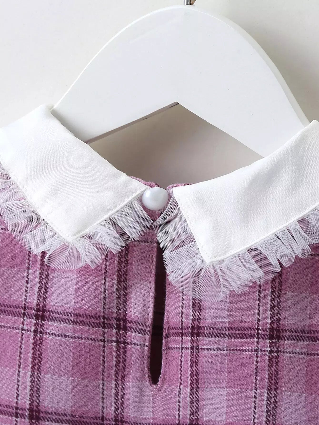 Kids - Baby Girl Peter Pan Collar Plaid Print Mesh Panel Smock Dress