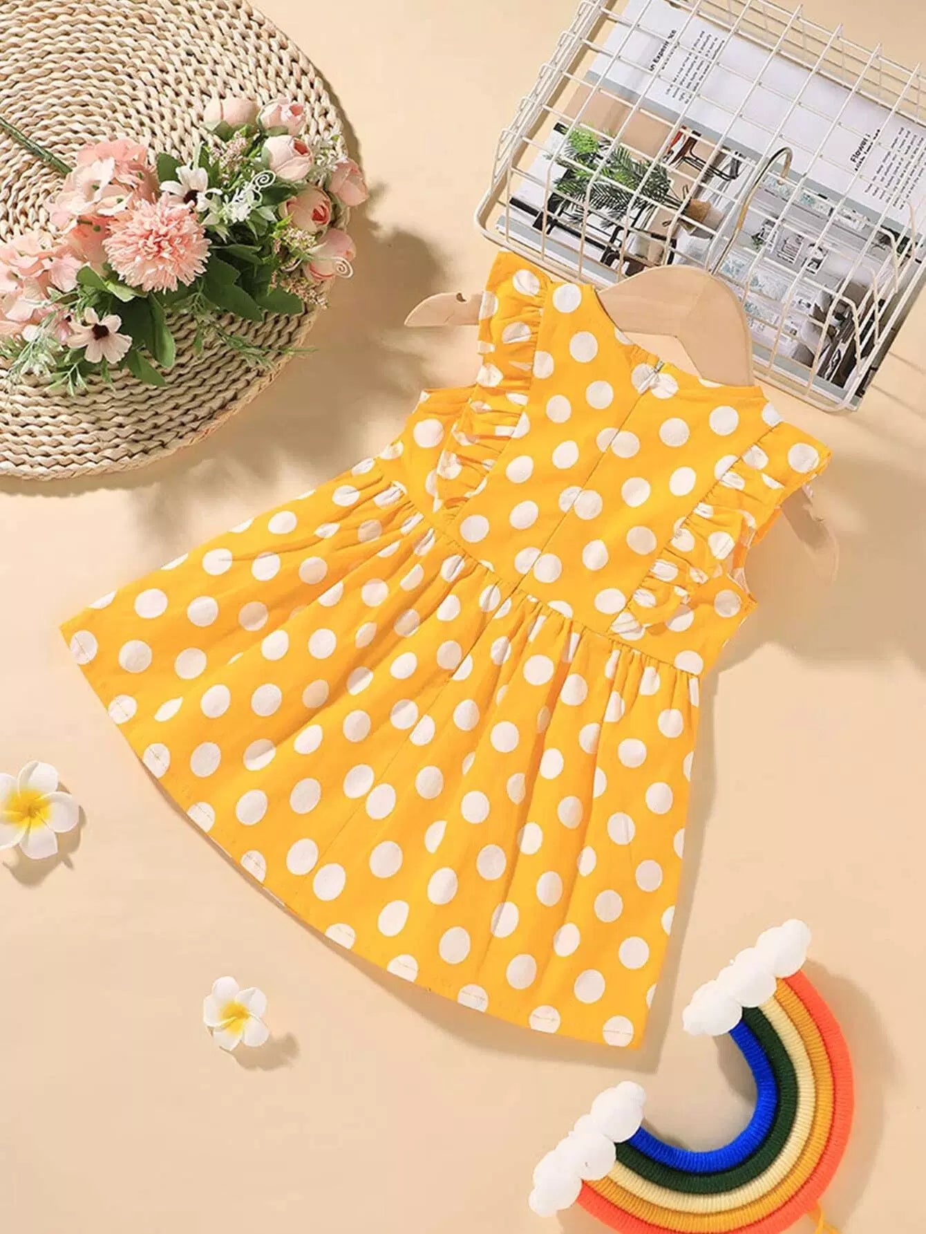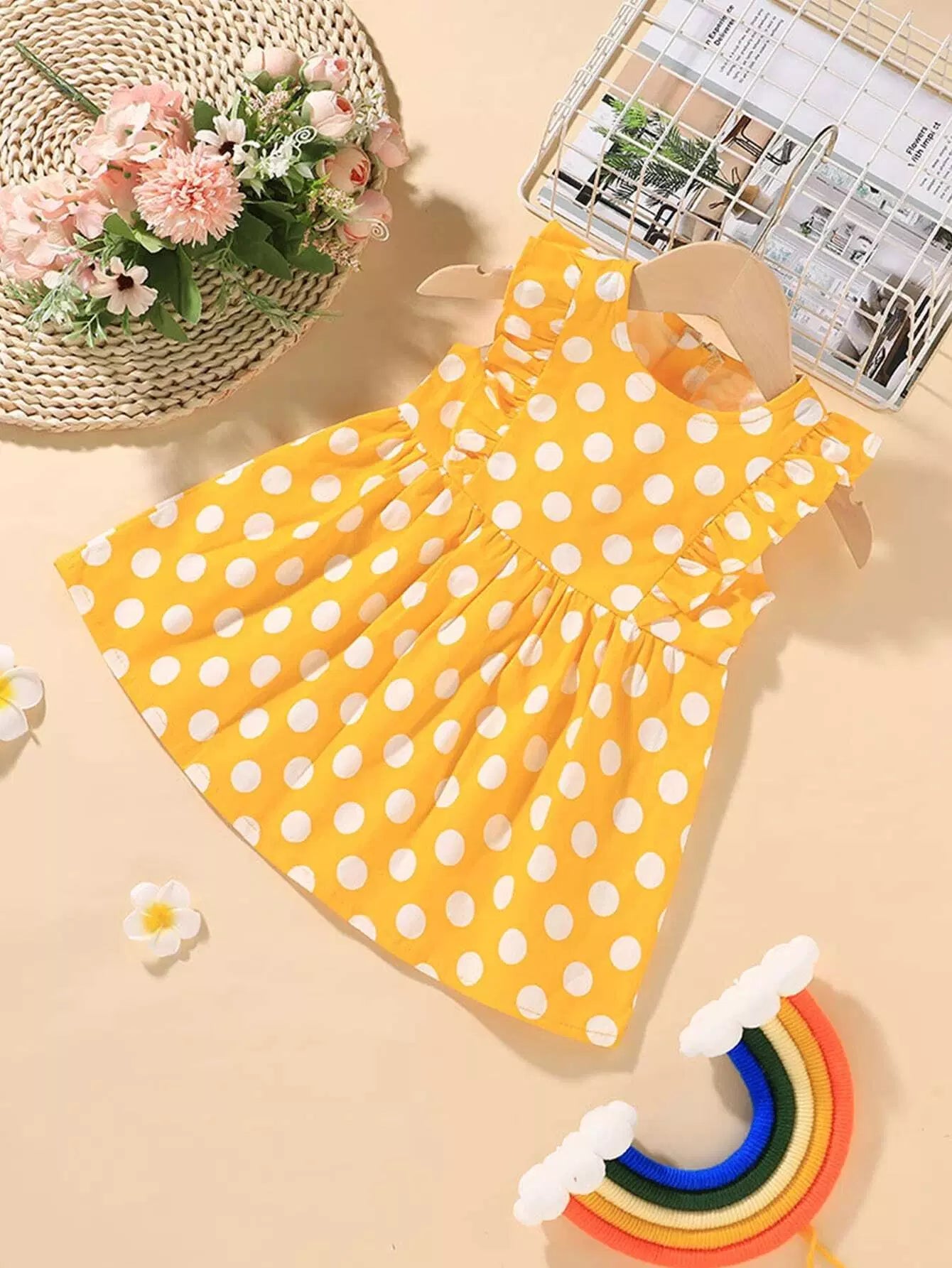 Baby Girl Polka Dot Ruffle Trim Dress