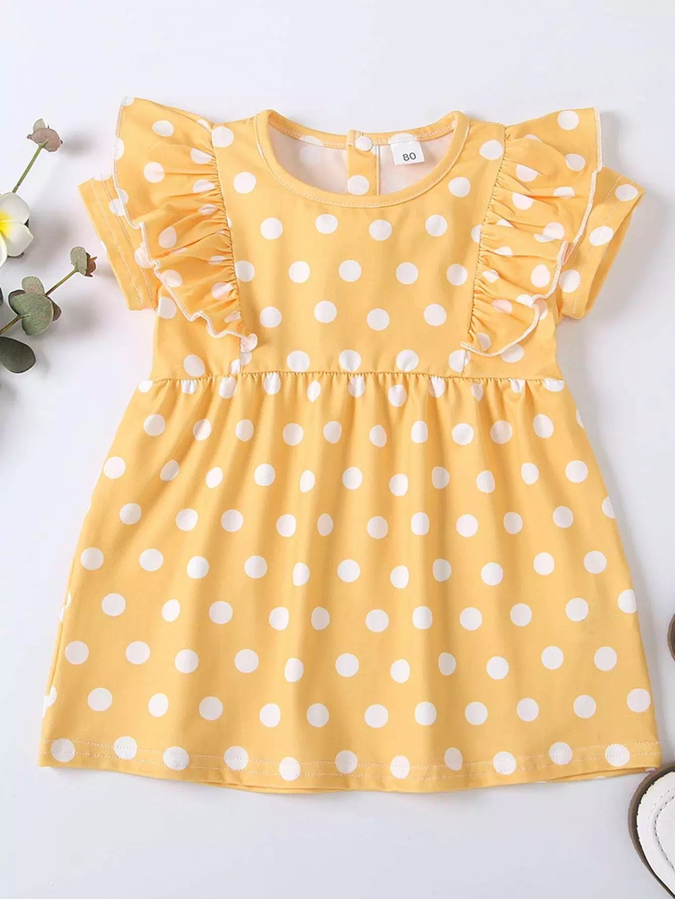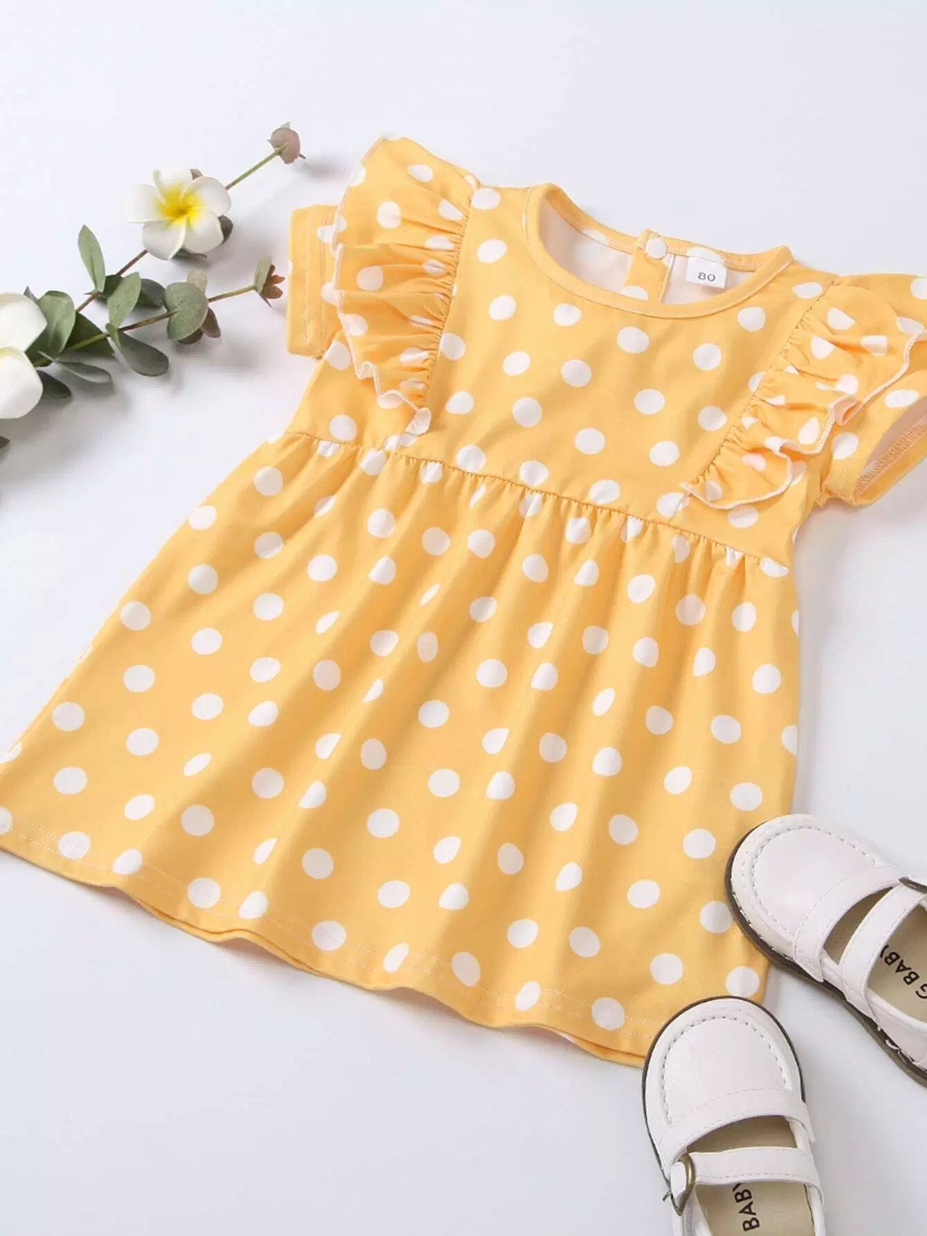 Kids - Baby Girl Ruffle Trim Polka Dot Dress