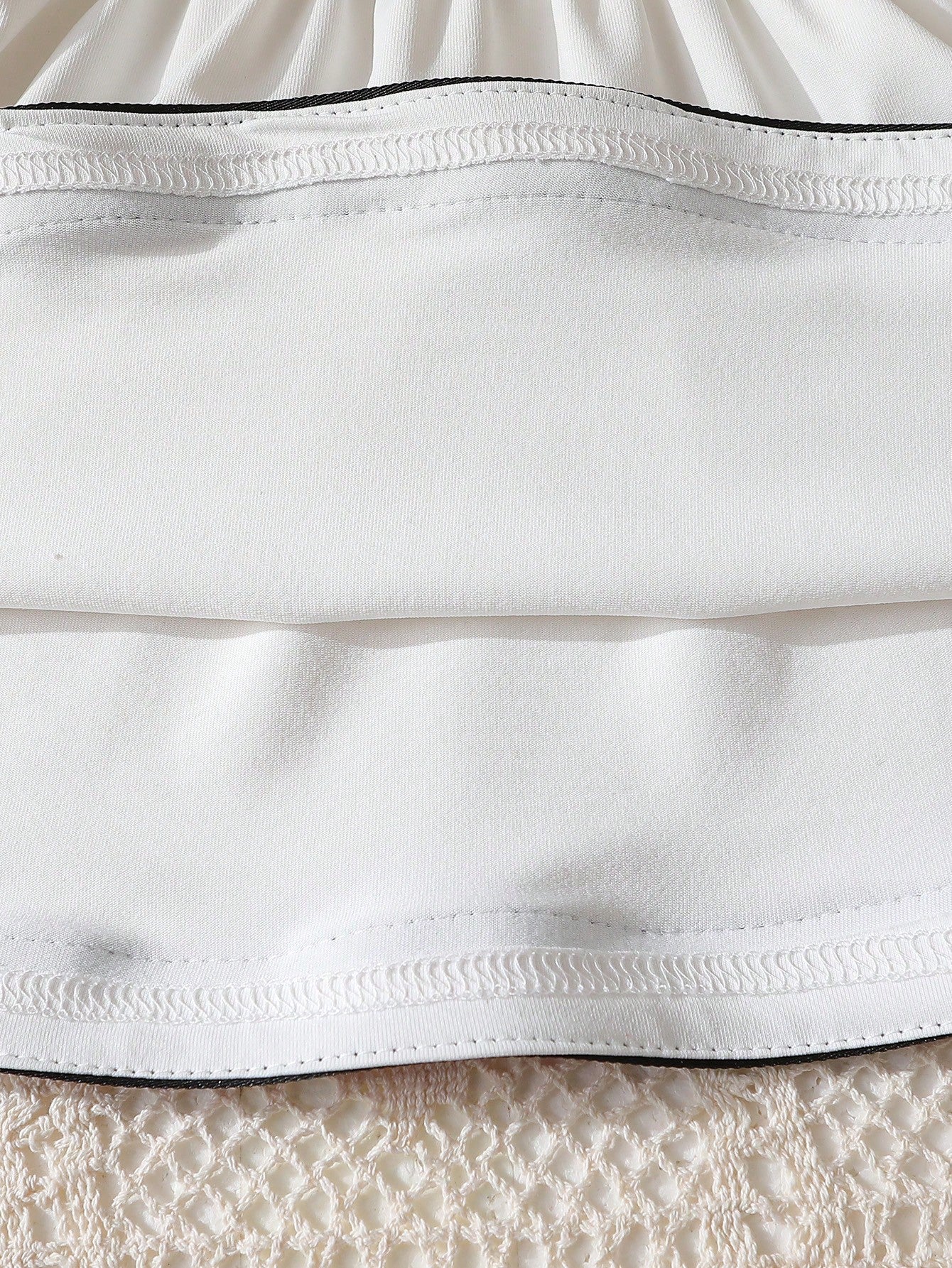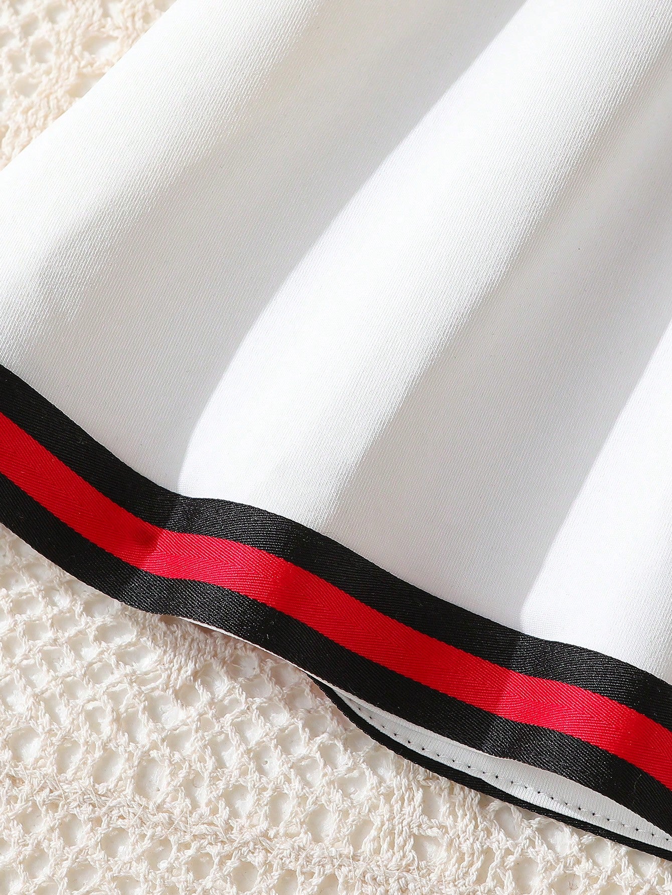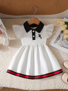 Baby Girl Simple Fashion Collared Cap Sleeve Embroidery Dress