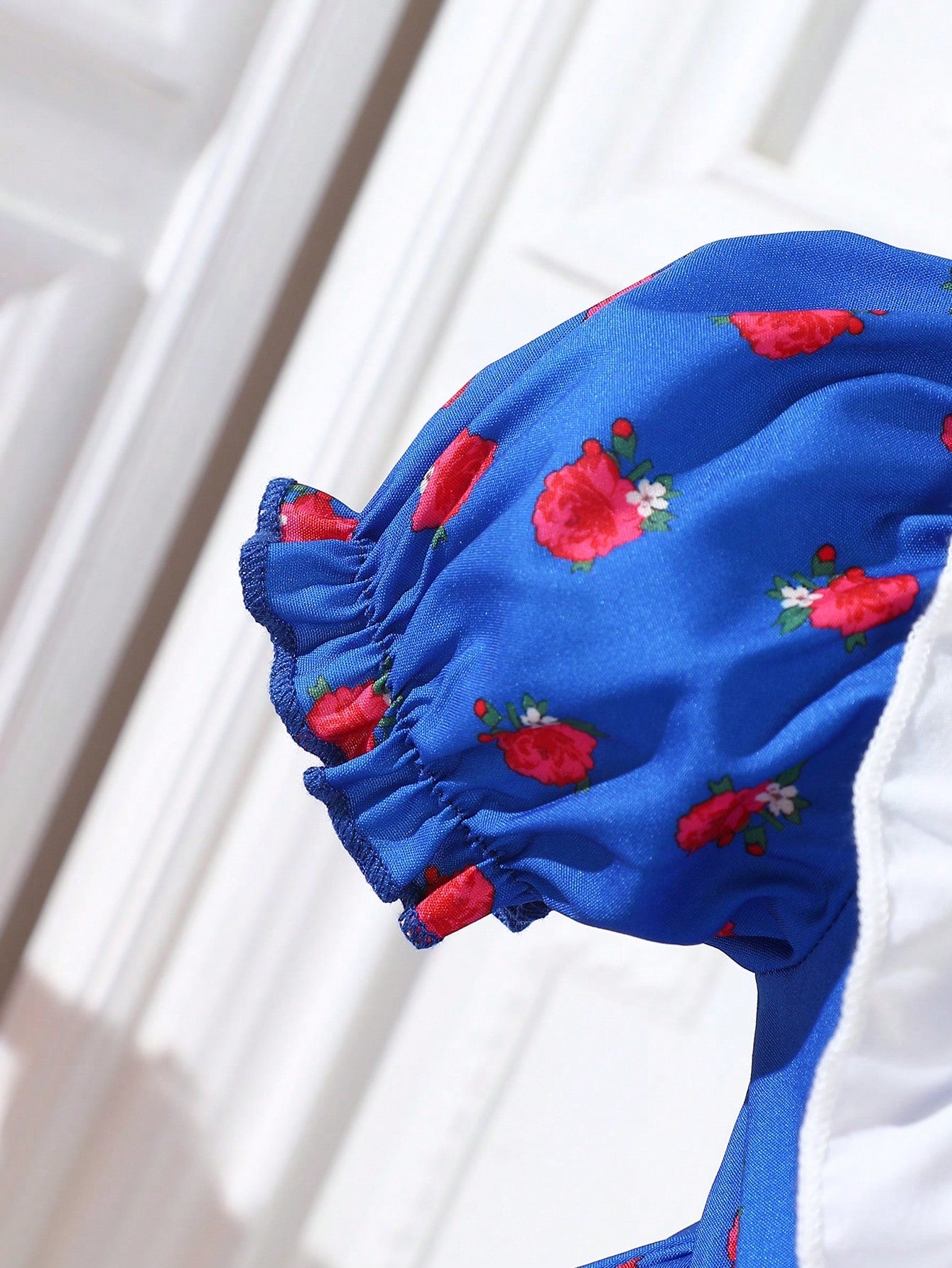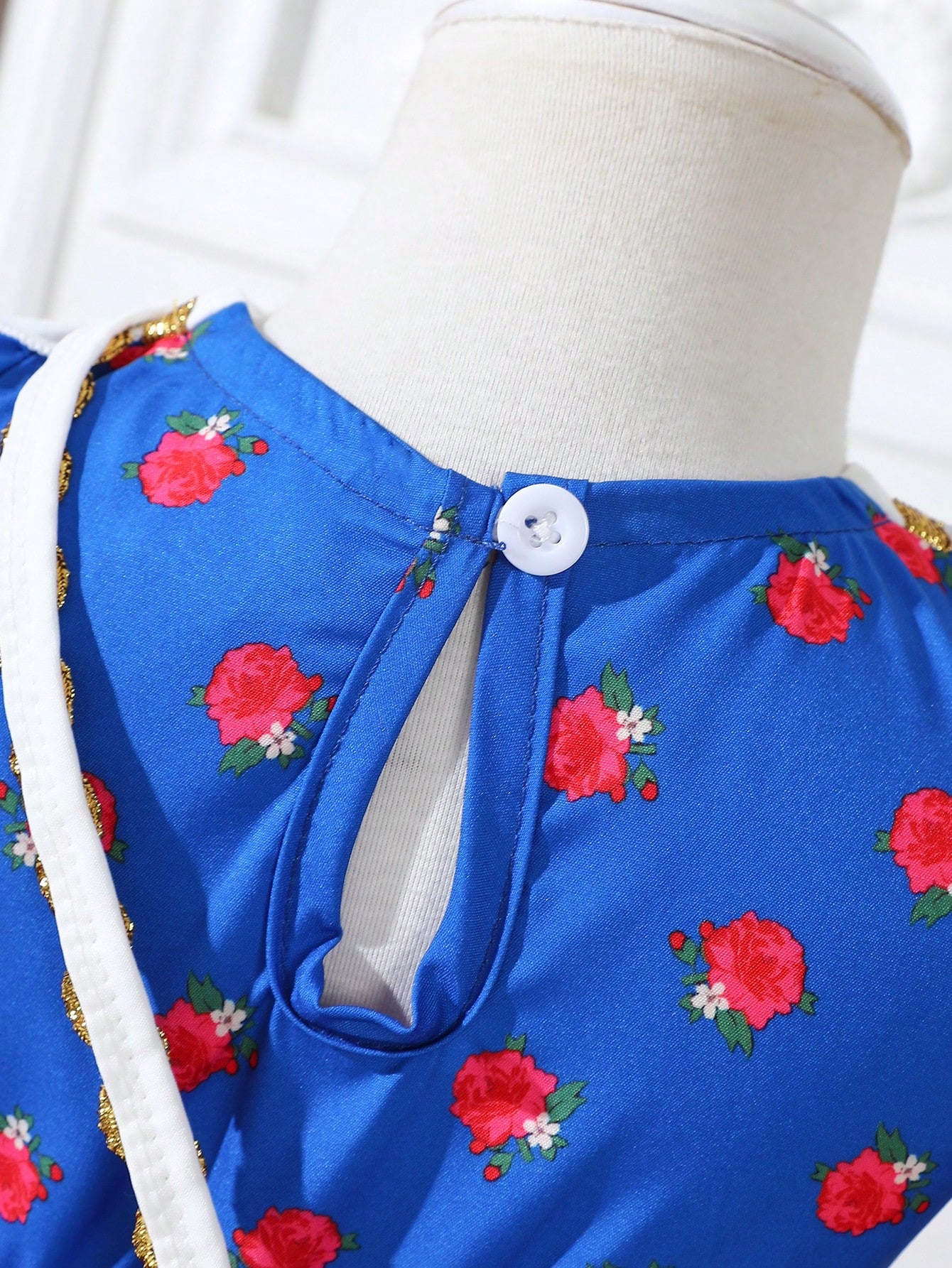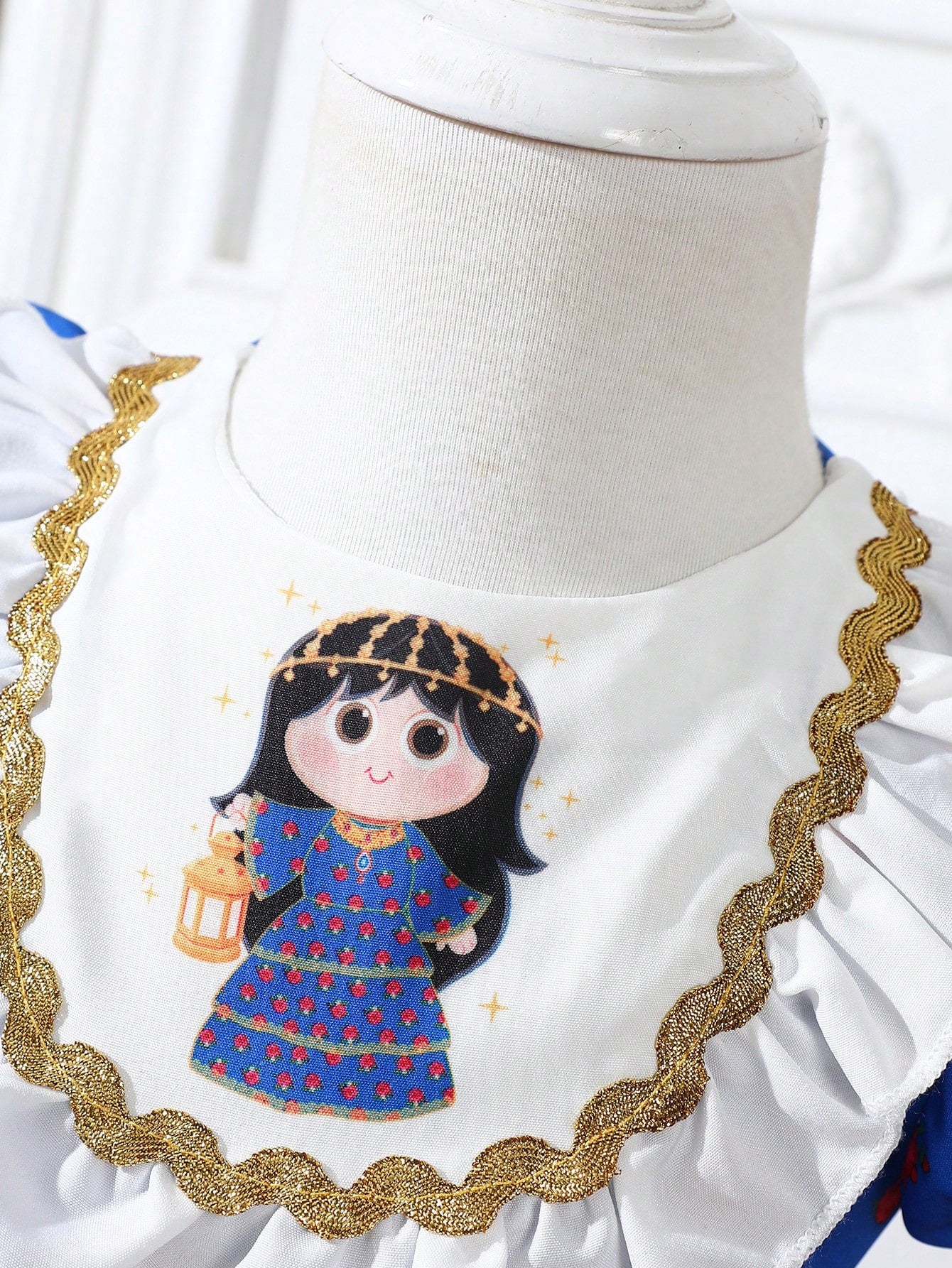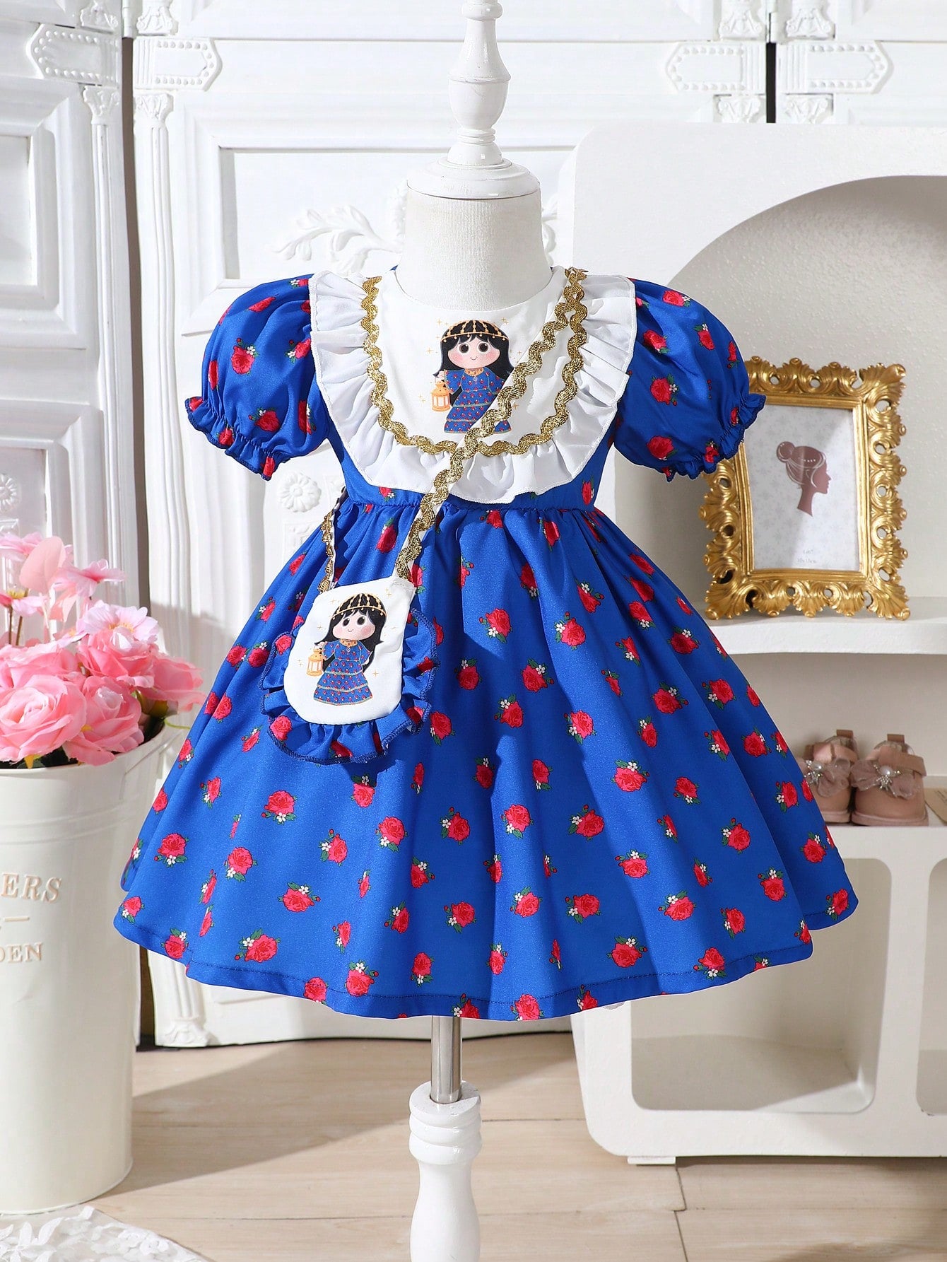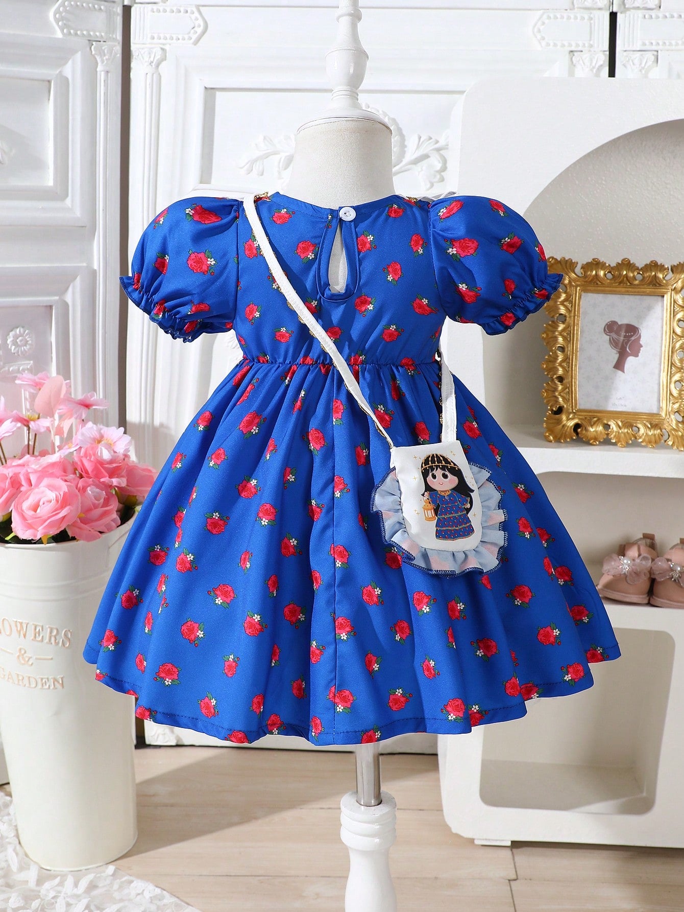 Baby Girl Simple Round Neck Short Sleeve Casual Dress, Suitable For Summer