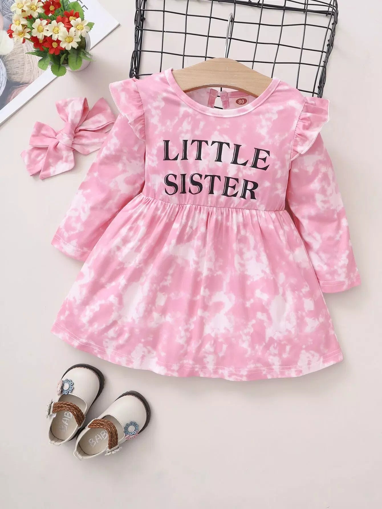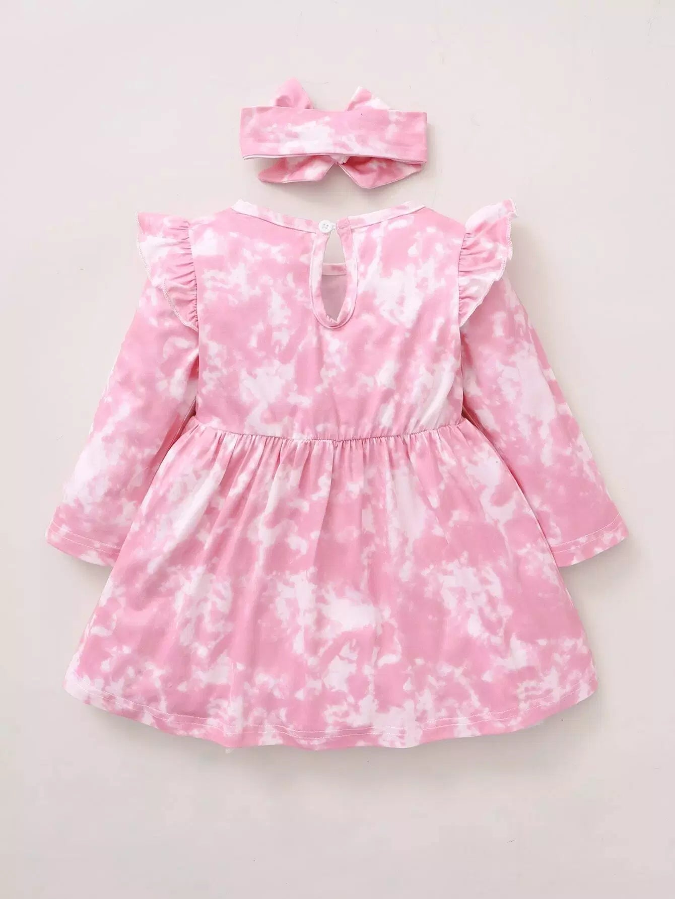 Kids - Baby Girl Tie Dye Letter Graphic Dress & Headband