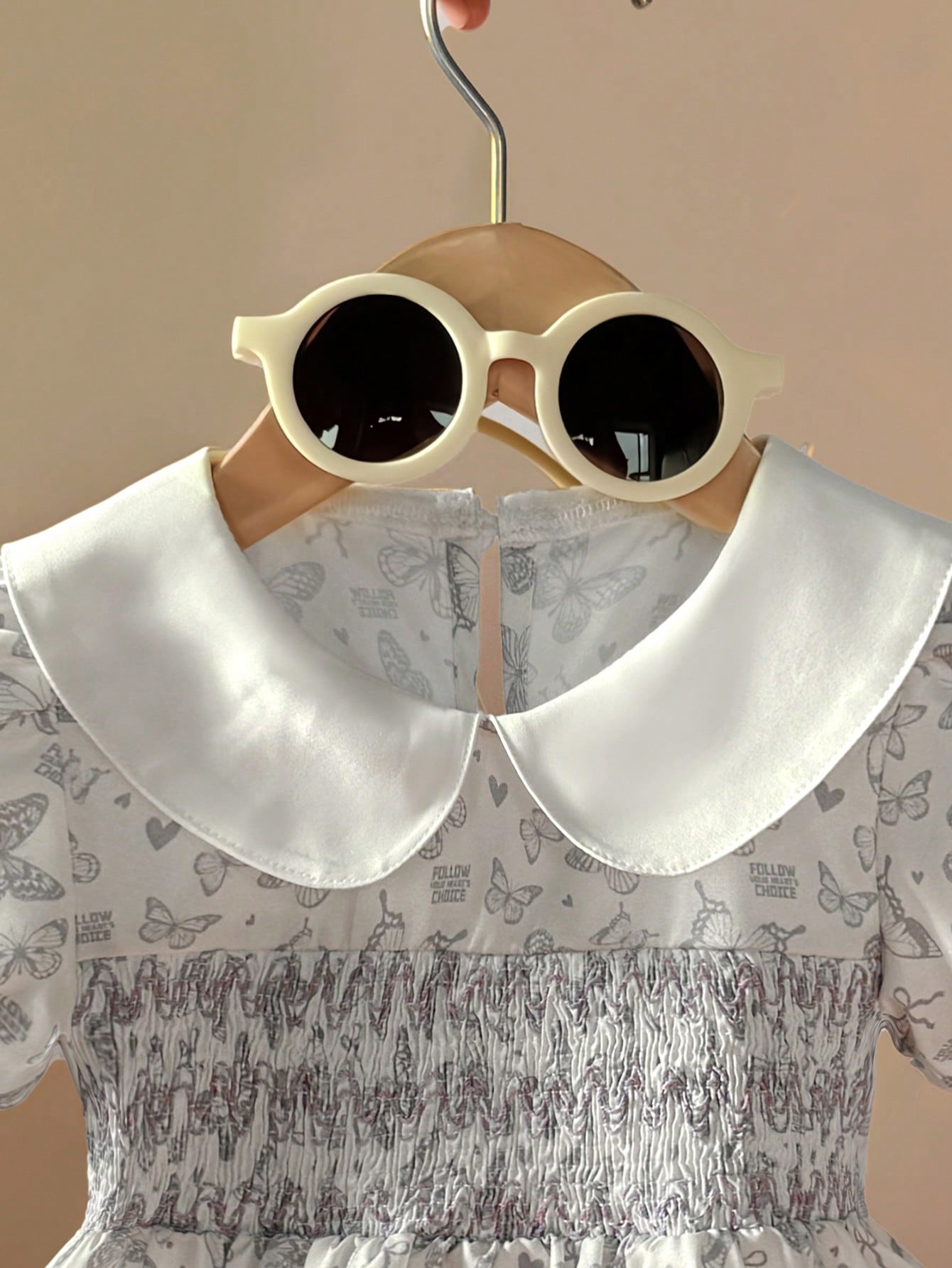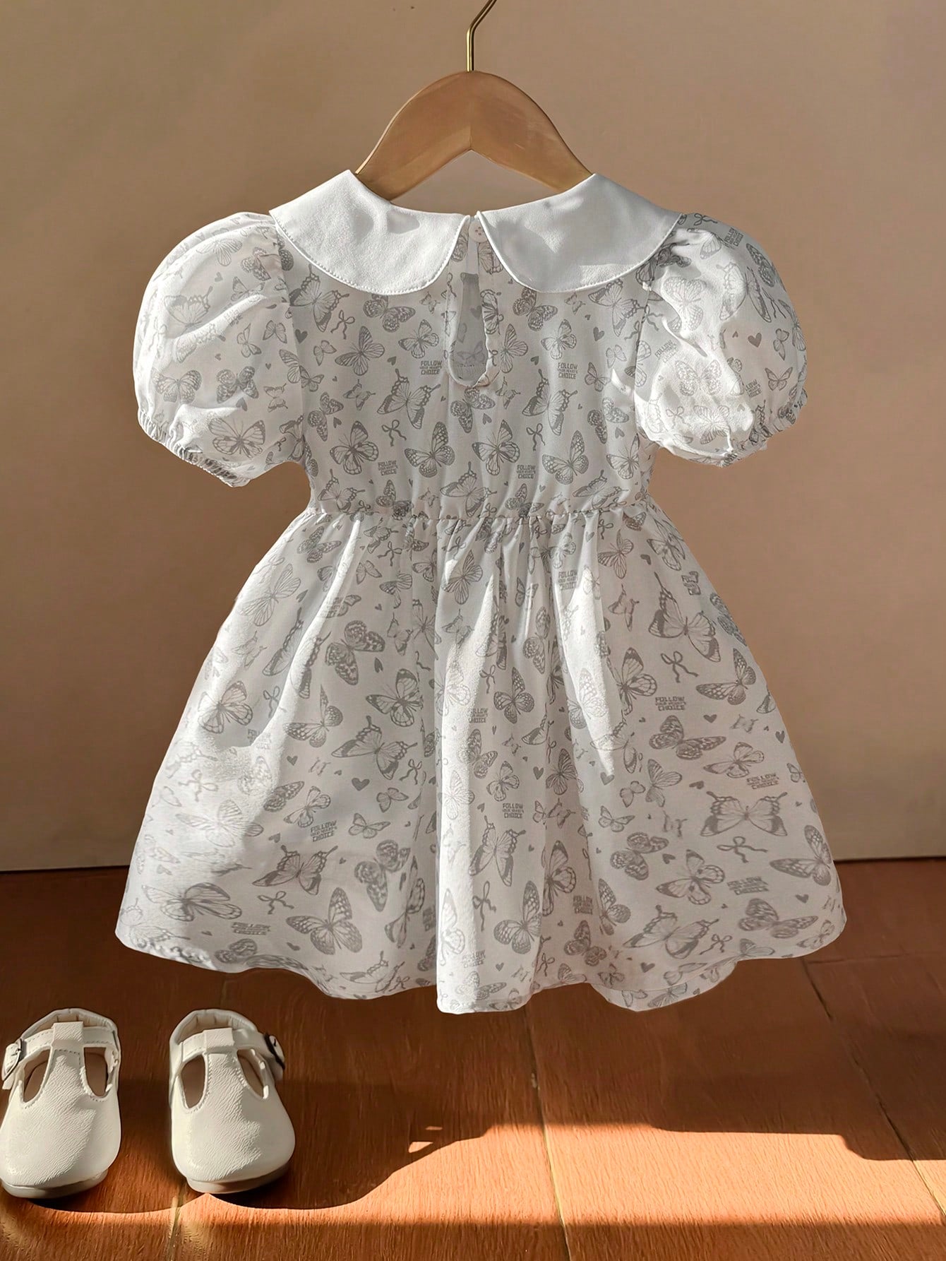 Baby Girls Peter Pan Collar Butterfly Print Pattern Dress, Adorable And Style For Baby Girls, Suitable