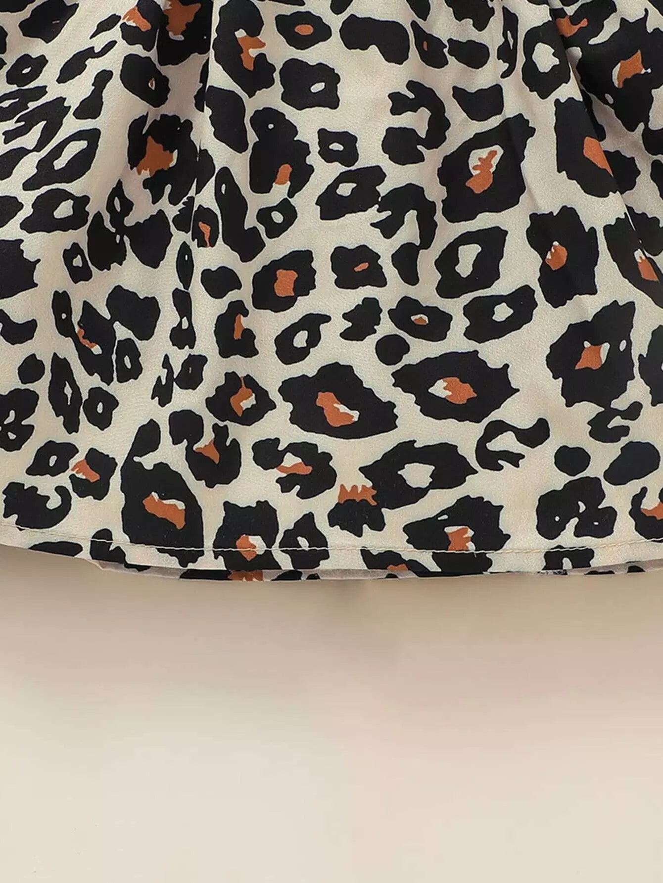 Baby Leopard Print Ruffle Trim Fake Button Dress & Headband