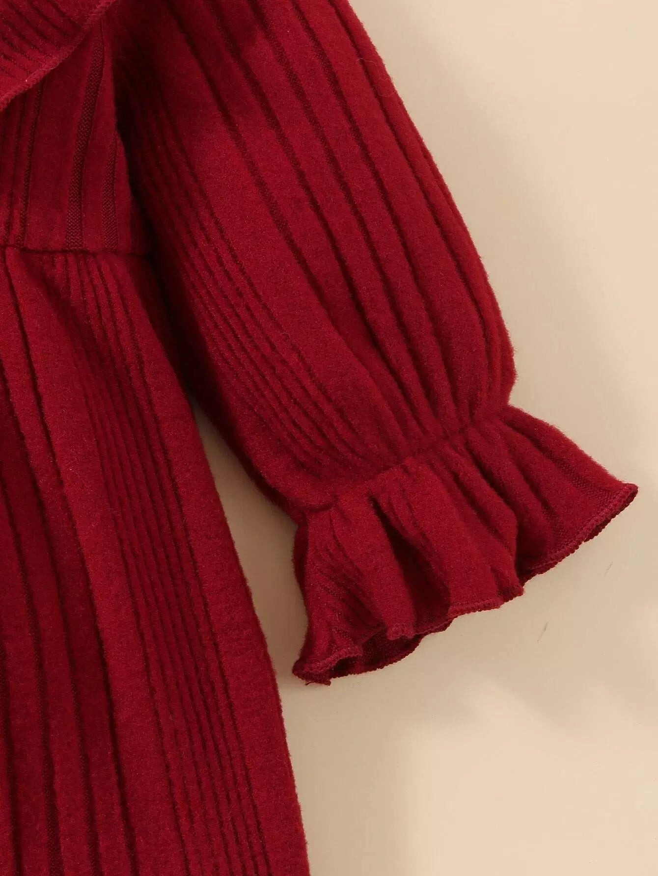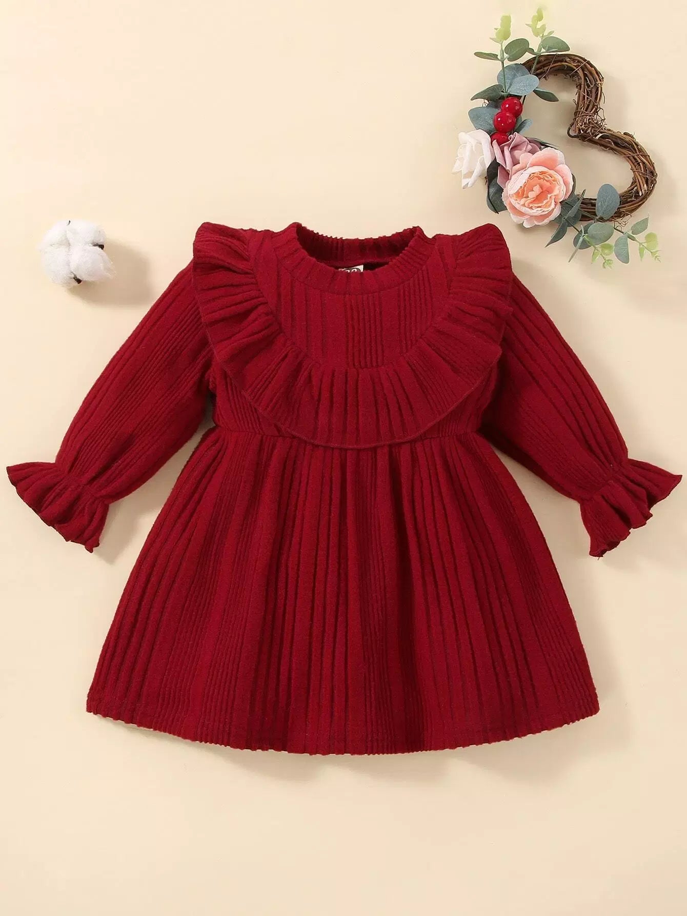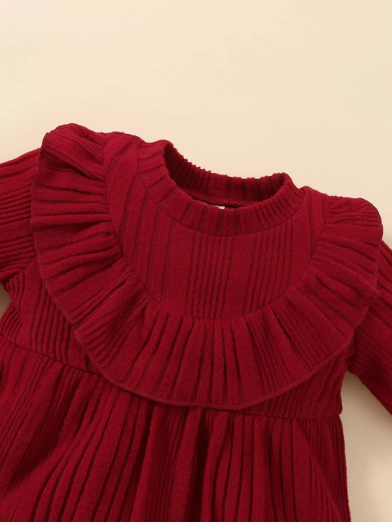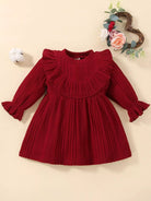 Baby Ribbed Knit Ruffle Trim Flounce Sleeve Dress