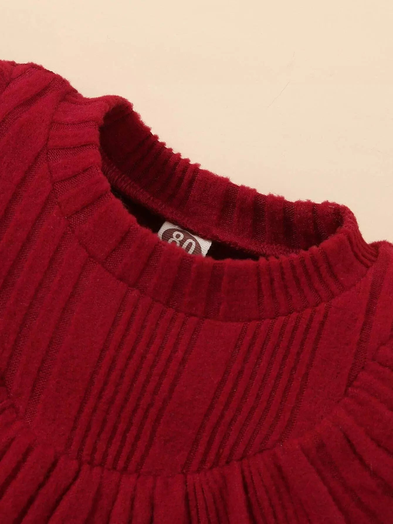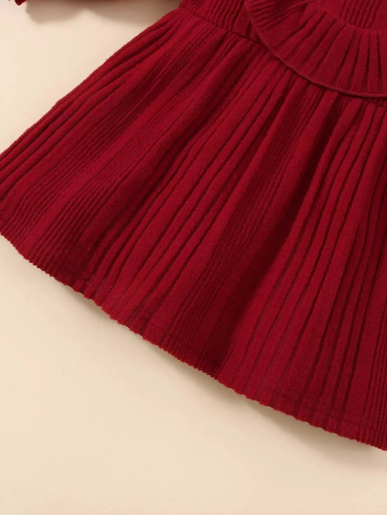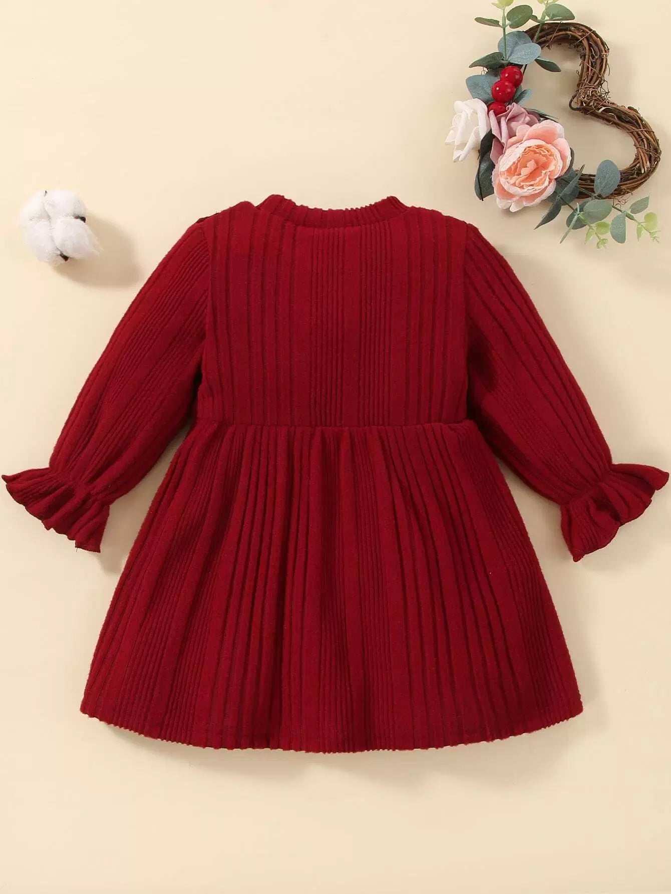 Baby Ribbed Knit Ruffle Trim Flounce Sleeve Dress